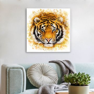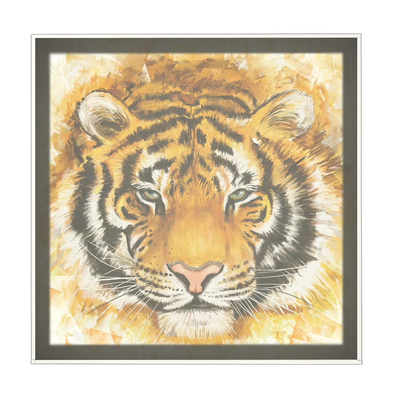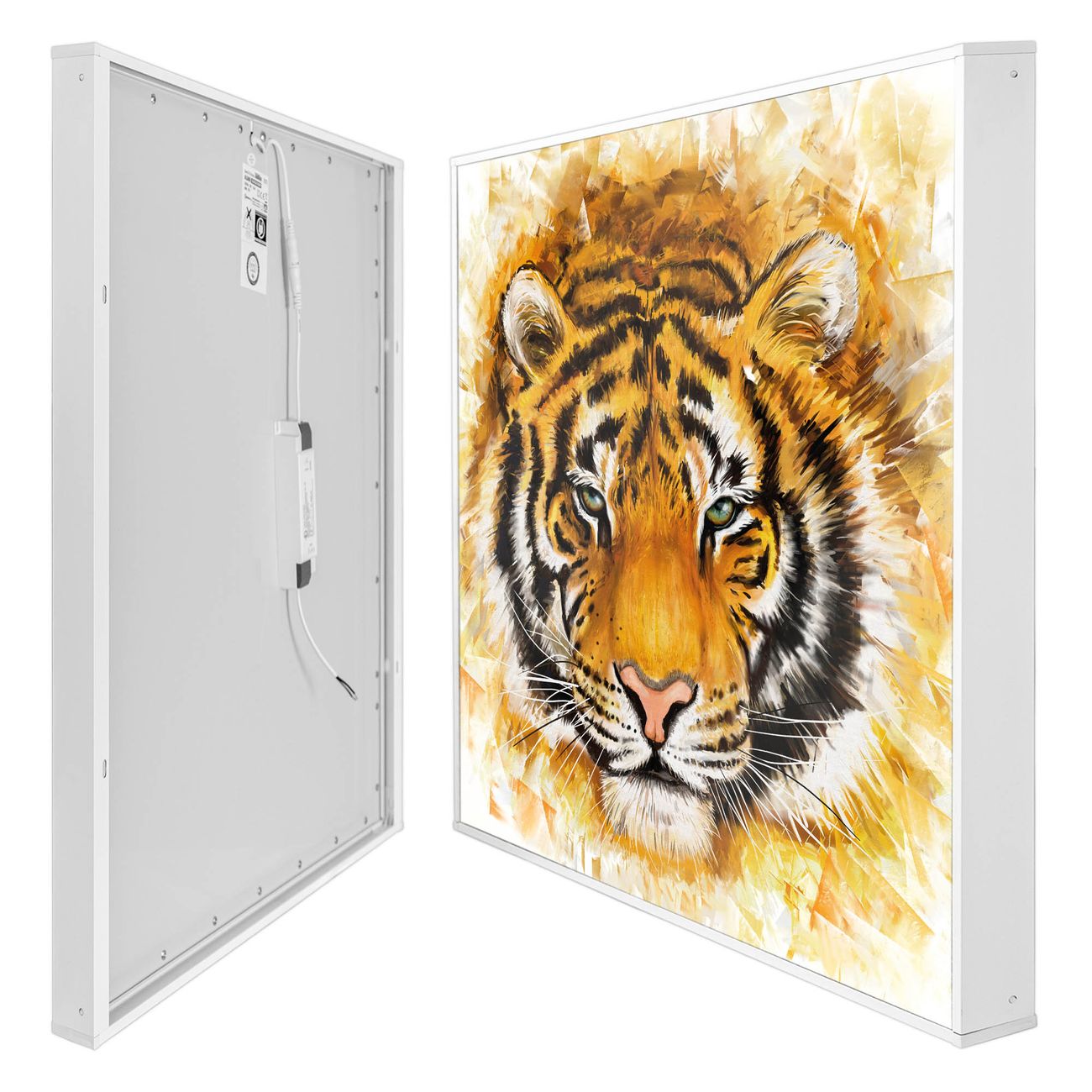 banjado LED Wandleuchte Sie erhalten hier eine stimmungsvolle Lichtquelle bestehend aus dem Set: Smart LED Panel mit Trafo, Motivscheibe (Motiv: Tigerkopf) und Rahmen. Der Aufbau ist denkbar einfach, Sie erhalten eine detaillierte Aufbauanleitung. Die komplette Leuchte kann sowohl an der Wand angeschlossen werden als auch als Deckenleuchte. Die Gesamtgröße der Lampe ist 62,5 x 62,5 x 4,5cm (HxBxT). Das Set besteht aus: LED Panel mit Trafo, Rahmen und Motivbild zum Selbstaufbau.