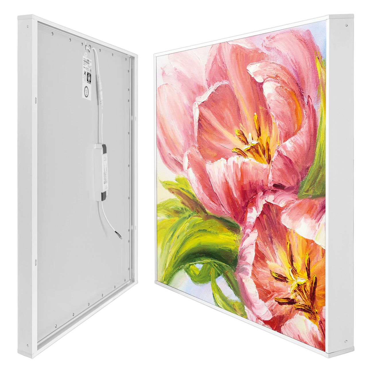 banjado LED Wandleuchte Sie erhalten hier eine stimmungsvolle Lichtquelle bestehend aus dem Set: Smart LED Panel mit Trafo, Motivscheibe (Motiv: Tulpen Detail) und Rahmen. Der Aufbau ist denkbar einfach, Sie erhalten eine detaillierte Aufbauanleitung. Die komplette Leuchte kann sowohl an der Wand angeschlossen werden als auch als Deckenleuchte. Die Gesamtgröße der Lampe ist 62,5 x 62,5 x 4,5cm (HxBxT). Das Set besteht aus: LED Panel mit Trafo, Rahmen und Motivbild zum Selbstaufbau.