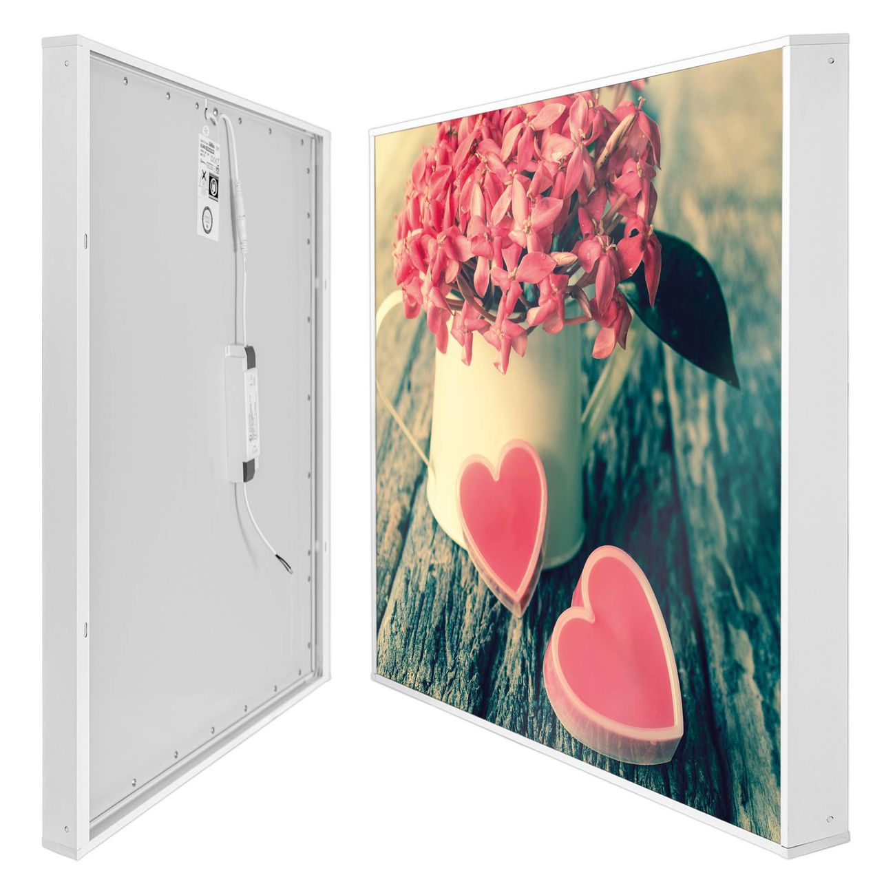 banjado LED Wandleuchte Sie erhalten hier eine stimmungsvolle Lichtquelle bestehend aus dem Set: Smart LED Panel mit Trafo, Motivscheibe (Motiv: Valentin) und Rahmen. Der Aufbau ist denkbar einfach, Sie erhalten eine detaillierte Aufbauanleitung. Die komplette Leuchte kann sowohl an der Wand angeschlossen werden als auch als Deckenleuchte. Die Gesamtgröße der Lampe ist 62,5 x 62,5 x 4,5cm (HxBxT). Das Set besteht aus: LED Panel mit Trafo, Rahmen und Motivbild zum Selbstaufbau.
