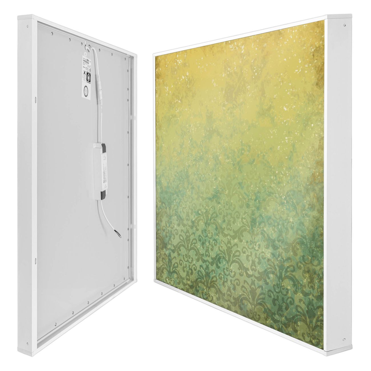 banjado LED Wandleuchte Sie erhalten hier eine stimmungsvolle Lichtquelle bestehend aus dem Set: Smart LED Panel mit Trafo, Motivscheibe (Motiv: Vintage Messing) und Rahmen. Der Aufbau ist denkbar einfach, Sie erhalten eine detaillierte Aufbauanleitung. Die komplette Leuchte kann sowohl an der Wand angeschlossen werden als auch als Deckenleuchte. Die Gesamtgröße der Lampe ist 62,5 x 62,5 x 4,5cm (HxBxT). Das Set besteht aus: LED Panel mit Trafo, Rahmen und Motivbild zum Selbstaufbau.