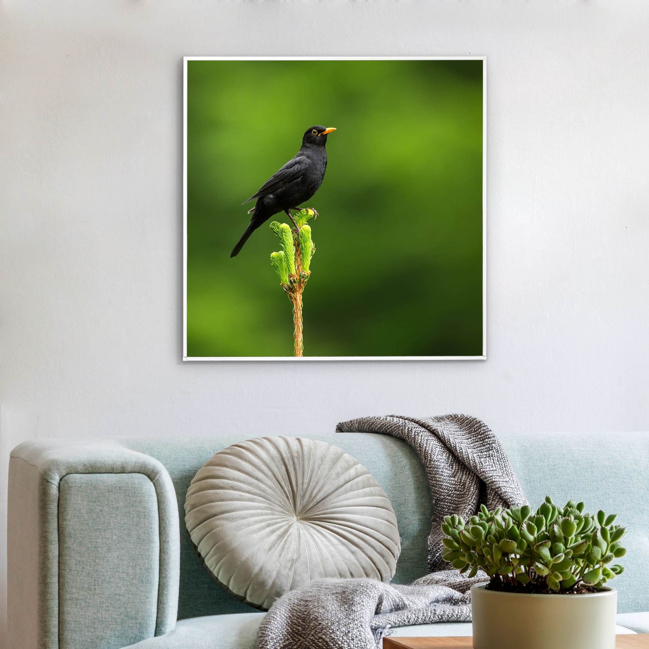 banjado Licht Bild LED Lampe Smart Home Motiv Vogel auf Tannenzweig