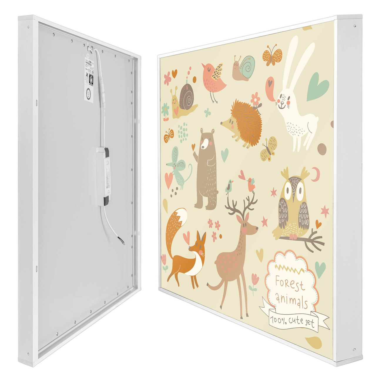 banjado LED Wandleuchte Sie erhalten hier eine stimmungsvolle Lichtquelle bestehend aus dem Set: Smart LED Panel mit Trafo, Motivscheibe (Motiv: Waldtiere) und Rahmen. Der Aufbau ist denkbar einfach, Sie erhalten eine detaillierte Aufbauanleitung. Die komplette Leuchte kann sowohl an der Wand angeschlossen werden als auch als Deckenleuchte. Die Gesamtgröße der Lampe ist 62,5 x 62,5 x 4,5cm (HxBxT). Das Set besteht aus: LED Panel mit Trafo, Rahmen und Motivbild zum Selbstaufbau.
