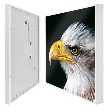 banjado LED Wandleuchte Sie erhalten hier eine stimmungsvolle Lichtquelle bestehend aus dem Set: Smart LED Panel mit Trafo, Motivscheibe (Motiv: Weißkopfseeadler) und Rahmen. Der Aufbau ist denkbar einfach, Sie erhalten eine detaillierte Aufbauanleitung. Die komplette Leuchte kann sowohl an der Wand angeschlossen werden als auch als Deckenleuchte. Die Gesamtgröße der Lampe ist 62,5 x 62,5 x 4,5cm (HxBxT). Das Set besteht aus: LED Panel mit Trafo, Rahmen und Motivbild zum Selbstaufbau.