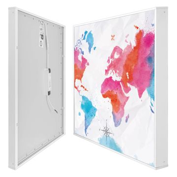 banjado LED Wandleuchte Sie erhalten hier eine stimmungsvolle Lichtquelle bestehend aus dem Set: Smart LED Panel mit Trafo, Motivscheibe (Motiv: Weltkarte pastell) und Rahmen. Der Aufbau ist denkbar einfach, Sie erhalten eine detaillierte Aufbauanleitung. Die komplette Leuchte kann sowohl an der Wand angeschlossen werden als auch als Deckenleuchte. Die Gesamtgröße der Lampe ist 62,5 x 62,5 x 4,5cm (HxBxT). Das Set besteht aus: LED Panel mit Trafo, Rahmen und Motivbild zum Selbstaufbau.