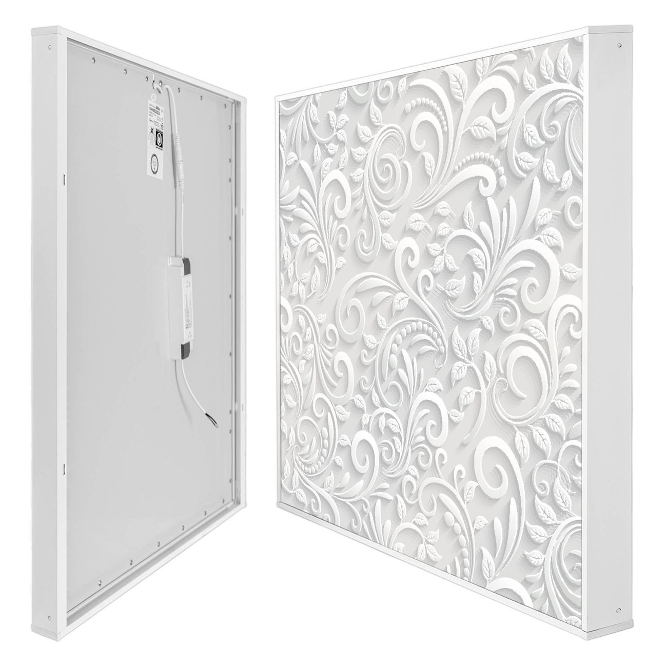 banjado LED Wandleuchte Sie erhalten hier eine stimmungsvolle Lichtquelle bestehend aus dem Set: Smart LED Panel mit Trafo, Motivscheibe (Motiv: White Swirl) und Rahmen. Der Aufbau ist denkbar einfach, Sie erhalten eine detaillierte Aufbauanleitung. Die komplette Leuchte kann sowohl an der Wand angeschlossen werden als auch als Deckenleuchte. Die Gesamtgröße der Lampe ist 62,5 x 62,5 x 4,5cm (HxBxT). Das Set besteht aus: LED Panel mit Trafo, Rahmen und Motivbild zum Selbstaufbau.