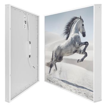 Mit der banjado smarten LED Wandleuchte mit Motiv Wildes Pferd schaffen Sie in Ihren Räumen eine besondere Atmosphäre. Abends spendet die Wandlampe Licht und tagsüber haben Sie ein stimmungsvolles Wandbild. Die Leuchte besteht aus einem zeitlosen weißen Rahmen, in den das smarte WLAN LED Paneel sowie das Bild eingefasst wird. Die Montage ist denkbar einfach, Sie erhalten eine detaillierte Aufbauanleitung sowie Montagematerial. Eine angenehme Lichtquelle erhöht nachweislich das Wohlbefinden. Das Motiv der Leuchte lässt sich leicht wechseln, so können Sie Ihre Wohnräume individuell gestalten. Die Montage ist an der Wand oder an der Decke möglich.