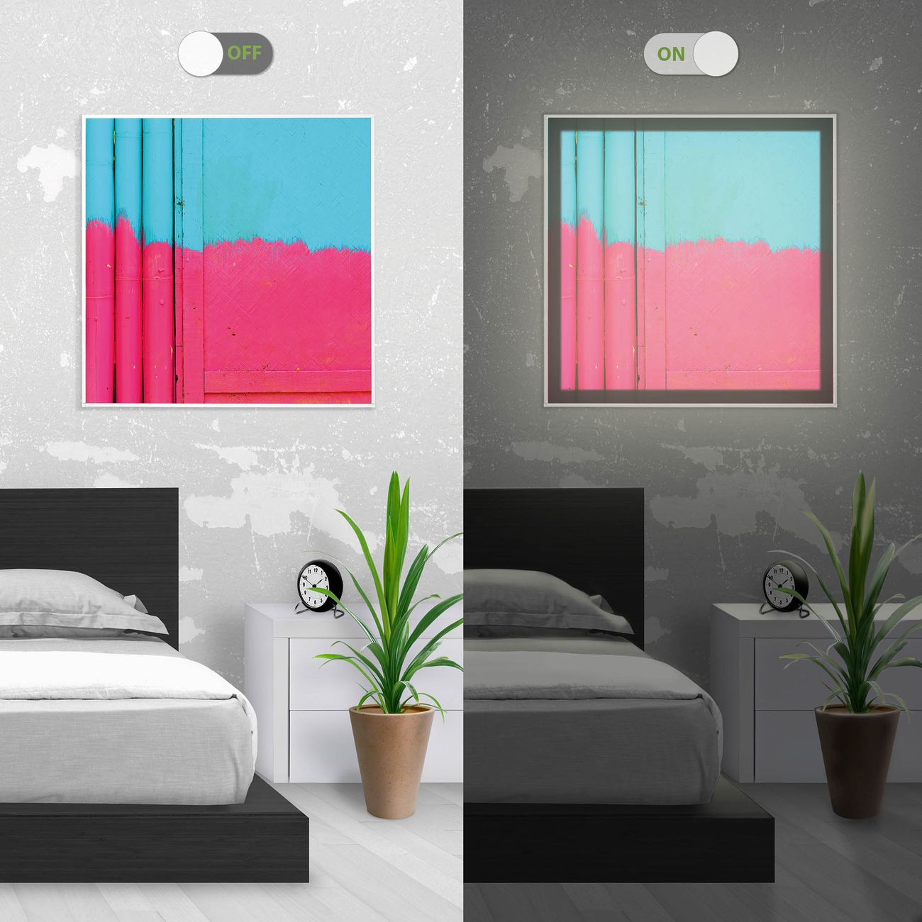 - Aussehen: Tags ein Wandbild, Nachts eine Lampe