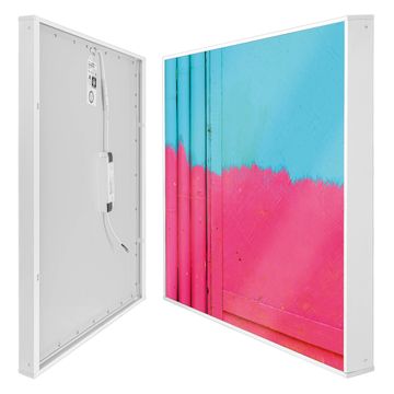Mit der banjado smarten LED Wandleuchte mit Motiv Zwei Farben schaffen Sie in Ihren Räumen eine besondere Atmosphäre. Abends spendet die Wandlampe Licht und tagsüber haben Sie ein stimmungsvolles Wandbild. Die Leuchte besteht aus einem zeitlosen weißen Rahmen, in den das smarte WLAN LED Paneel sowie das Bild eingefasst wird. Die Montage ist denkbar einfach, Sie erhalten eine detaillierte Aufbauanleitung sowie Montagematerial. Eine angenehme Lichtquelle erhöht nachweislich das Wohlbefinden. Das Motiv der Leuchte lässt sich leicht wechseln, so können Sie Ihre Wohnräume individuell gestalten. Die Montage ist an der Wand oder an der Decke möglich.