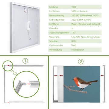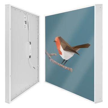 Entdecken Sie unsere vielseitigen Lichtdecken, hier in der Größe 186 x 124cm mit dem Motiv Motiv abstrakter Vogel - Ihre Beleuchtungslösung für jede Umgebung Beleuchten Sie Ihren Raum nicht nur, sondern schaffen Sie Atmosphäre! Die banjado Lichtdecke verwandelt jeden Ort, ob zu Hause, in Praxen, Büros oder Studios in eine Wohlfühloase. Unsere einzelnen Elemente haben eine genormte Einheitsgröße von 62 x 62cm und können somit in jede gängige Rasterdecken verbaut werden. So finden Sie Ihre passende Ausführung: Gern helfen wir Ihnen, die passende Ausführung zu wählen. Hierfür muss die aktuelle Gegebenheit Ihrer Decke oder Wand beachtet werden. Haben Sie bereits eine Rasterdecke (auch Odenwalddecke genannt)? Hier bestellen Sie lediglich das Motiv + Beleuchtungspanel, denn beides wird in die bereits vorhandene Decke eingelegt. Haben Sie eine glatte Decke mit Lichtauslass oder möchten die Lichtdecke an der Wand befestigen? Hier bestellen Sie bitte Motiv + Beleuchtungspanel + Deckenbefestigung, eine Aufbauanleitung liegt immer bei. Die Lichtdecke kann sowohl an der Decke als auch an der Wand montiert werden, perfekt für kreative Lichtakzente oder alternative Beleuchtungslösungen. Haben Sie bereits eine Lichtdecke und möchten nur das Motiv wechseln? Hier bestellen Sie bitte nur Motiv, der Wechsel ist denkbar einfach. Der Aufbau Ihrer banjado Lichtdecke gestaltet sich unkompliziert, dank einer verständlichen Anleitung, die Ihnen Schritt für Schritt durch den Montageprozess hilft. Für die endgültige Installation und den sicheren Anschluss empfehlen wir die Hinzuziehung eines Fachmanns, um die optimale Funktion und Sicherheit Ihrer Beleuchtung zu gewährleisten. Falls Sie einen Fachmann für die Installation benötigen, geben Sie uns gern Bescheid, wir vermitteln Ihnen gern einen geeigneten Ansprechpartner aus Ihrer Nähe. Steuerung: Steigern Sie Ihr Beleuchtungserlebnis mit der nahtlosen Integration in Ihr Smart Home. Durch die Kompatibilität mit der SmartLife App, Alexa und Google Assistant wird Ihr Smartphone zur zentralen Steuerungseinheit. Ihr Handy fungiert hierbei sozusagen als Fernbedienung. Legen Sie individuelle Lichtszenen in der App fest, die bei Aktivierung über den Wand-Ein-/Ausschalter immer wieder abgerufen werden können ohne Handy. Mit der Szenenfunktion in der Smart App können Sie die Beleuchtung personalisieren und steuern, sodass sie auf Ihre individuellen Bedürfnisse, Tagesrhythmus und Stimmung zugeschnitten ist. Beispielsweise können Sie sich in der Morgendämmerung durch ein sanftes Licht wecken lassen oder das Licht der Praxis werktags um 7 Uhr automatisch einschalten lassen. Dieses kann dann natürlich auch zu einer bestimmten Zeit automatisch ausgeschaltet werden. Motivwahl: Diese einzigartige Lichtdecke zeichnet sich durch ihre Fähigkeit aus, die Lichtfarbe je nach gewähltem Motiv anzupassen - ein Baum wirft ein sanftes grünes Licht, während eine Wolkendecke Ihren Raum in ein beruhigendes blaues Leuchten hüllt. Berücksichtigen Sie dies bitte bei Ihrer Motivauswahl. Sie können das Motiv jederzeit ohne großen Aufwand austauschen, ob nach Jahreszeit oder anderem Anlass, unsere Auswahl lässt kaum Wünsche offen. Wir fertigen Ihnen gern eine personalisierte Lichtdecke mit einem eigenen Motiv oder Logo oder Foto, schreiben Sie uns jederzeit an. Technische Daten: Das Motiv ist auf einer 4mm starken Acrylglas Scheibe aufgebracht, das Gesamtgewicht Ihrer Ausführung beträgt 13,6kg. Die Farbtemperatur lässt sich frei einstellen von 3000 bis 6000 Kelvin, damit können Sie stufenlos zwischen warmweiß, neutralweiß und kaltweiß wählen. Die Gesamtleistung bei Ihrer gewählten Ausführung beträgt 240W. Der Lichtstrom beträgt 3600 Lumen, die Nennspannung 230 V. Die Lichtdecke ist mit Schutzart IP20 für den Innenbereich konzipiert und sollte nicht im Nassbereich verwendet werden.