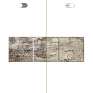 Entdecken Sie unsere vielseitigen Lichtdecken, hier in der Größe 186 x 62cm mit dem Motiv Motiv Alte Planken - Ihre Beleuchtungslösung für jede Umgebung Beleuchten Sie Ihren Raum nicht nur, sondern schaffen Sie Atmosphäre! Die banjado Lichtdecke verwandelt jeden Ort, ob zu Hause, in Praxen, Büros oder Studios in eine Wohlfühloase. Unsere einzelnen Elemente haben eine genormte Einheitsgröße von 62 x 62cm und können somit in jede gängige Rasterdecken verbaut werden. So finden Sie Ihre passende Ausführung: Gern helfen wir Ihnen, die passende Ausführung zu wählen. Hierfür muss die aktuelle Gegebenheit Ihrer Decke oder Wand beachtet werden. Haben Sie bereits eine Rasterdecke (auch Odenwalddecke genannt)? Hier bestellen Sie lediglich das Motiv + Beleuchtungspanel, denn beides wird in die bereits vorhandene Decke eingelegt. Haben Sie eine glatte Decke mit Lichtauslass oder möchten die Lichtdecke an der Wand befestigen? Hier bestellen Sie bitte Motiv + Beleuchtungspanel + Deckenbefestigung, eine Aufbauanleitung liegt immer bei. Die Lichtdecke kann sowohl an der Decke als auch an der Wand montiert werden, perfekt für kreative Lichtakzente oder alternative Beleuchtungslösungen. Haben Sie bereits eine Lichtdecke und möchten nur das Motiv wechseln? Hier bestellen Sie bitte nur Motiv, der Wechsel ist denkbar einfach. Der Aufbau Ihrer banjado Lichtdecke gestaltet sich unkompliziert, dank einer verständlichen Anleitung, die Ihnen Schritt für Schritt durch den Montageprozess hilft. Für die endgültige Installation und den sicheren Anschluss empfehlen wir die Hinzuziehung eines Fachmanns, um die optimale Funktion und Sicherheit Ihrer Beleuchtung zu gewährleisten. Falls Sie einen Fachmann für die Installation benötigen, geben Sie uns gern Bescheid, wir vermitteln Ihnen gern einen geeigneten Ansprechpartner aus Ihrer Nähe. Steuerung: Steigern Sie Ihr Beleuchtungserlebnis mit der nahtlosen Integration in Ihr Smart Home. Durch die Kompatibilität mit der SmartLife App, Alexa und Google Assistant wird Ihr Smartphone zur zentralen Steuerungseinheit. Ihr Handy fungiert hierbei sozusagen als Fernbedienung. Legen Sie individuelle Lichtszenen in der App fest, die bei Aktivierung über den Wand-Ein-/Ausschalter immer wieder abgerufen werden können ohne Handy. Mit der Szenenfunktion in der Smart App können Sie die Beleuchtung personalisieren und steuern, sodass sie auf Ihre individuellen Bedürfnisse, Tagesrhythmus und Stimmung zugeschnitten ist. Beispielsweise können Sie sich in der Morgendämmerung durch ein sanftes Licht wecken lassen oder das Licht der Praxis werktags um 7 Uhr automatisch einschalten lassen. Dieses kann dann natürlich auch zu einer bestimmten Zeit automatisch ausgeschaltet werden. Motivwahl: Diese einzigartige Lichtdecke zeichnet sich durch ihre Fähigkeit aus, die Lichtfarbe je nach gewähltem Motiv anzupassen - ein Baum wirft ein sanftes grünes Licht, während eine Wolkendecke Ihren Raum in ein beruhigendes blaues Leuchten hüllt. Berücksichtigen Sie dies bitte bei Ihrer Motivauswahl. Sie können das Motiv jederzeit ohne großen Aufwand austauschen, ob nach Jahreszeit oder anderem Anlass, unsere Auswahl lässt kaum Wünsche offen. Wir fertigen Ihnen gern eine personalisierte Lichtdecke mit einem eigenen Motiv oder Logo oder Foto, schreiben Sie uns jederzeit an. Technische Daten: Das Motiv ist auf einer 4mm starken Acrylglas Scheibe aufgebracht, das Gesamtgewicht Ihrer Ausführung beträgt 6,8kg. Die Farbtemperatur lässt sich frei einstellen von 3000 bis 6000 Kelvin, damit können Sie stufenlos zwischen warmweiß, neutralweiß und kaltweiß wählen. Die Gesamtleistung bei Ihrer gewählten Ausführung beträgt 120W. Der Lichtstrom beträgt 3600 Lumen, die Nennspannung 230 V. Die Lichtdecke ist mit Schutzart IP20 für den Innenbereich konzipiert und sollte nicht im Nassbereich verwendet werden.