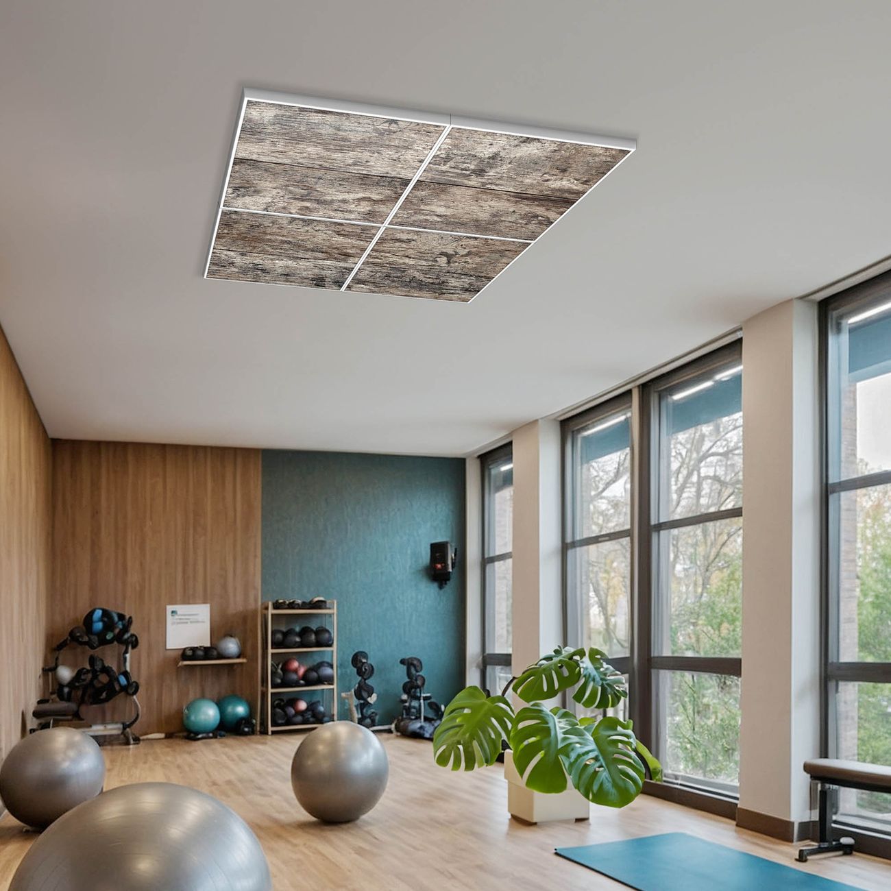 Entdecken Sie unsere vielseitigen Lichtdecken, hier in der Größe 124 x 124cm mit dem Motiv Motiv Alte Planken - Ihre Beleuchtungslösung für jede Umgebung Beleuchten Sie Ihren Raum nicht nur, sondern schaffen Sie Atmosphäre! Die banjado Lichtdecke verwandelt jeden Ort, ob zu Hause, in Praxen, Büros oder Studios in eine Wohlfühloase. Unsere einzelnen Elemente haben eine genormte Einheitsgröße von 62 x 62cm und können somit in jede gängige Rasterdecken verbaut werden. So finden Sie Ihre passende Ausführung: Gern helfen wir Ihnen, die passende Ausführung zu wählen. Hierfür muss die aktuelle Gegebenheit Ihrer Decke oder Wand beachtet werden. Haben Sie bereits eine Rasterdecke (auch Odenwalddecke genannt)? Hier bestellen Sie lediglich das Motiv + Beleuchtungspanel, denn beides wird in die bereits vorhandene Decke eingelegt. Haben Sie eine glatte Decke mit Lichtauslass oder möchten die Lichtdecke an der Wand befestigen? Hier bestellen Sie bitte Motiv + Beleuchtungspanel + Deckenbefestigung, eine Aufbauanleitung liegt immer bei. Die Lichtdecke kann sowohl an der Decke als auch an der Wand montiert werden, perfekt für kreative Lichtakzente oder alternative Beleuchtungslösungen. Haben Sie bereits eine Lichtdecke und möchten nur das Motiv wechseln? Hier bestellen Sie bitte nur Motiv, der Wechsel ist denkbar einfach. Der Aufbau Ihrer banjado Lichtdecke gestaltet sich unkompliziert, dank einer verständlichen Anleitung, die Ihnen Schritt für Schritt durch den Montageprozess hilft. Für die endgültige Installation und den sicheren Anschluss empfehlen wir die Hinzuziehung eines Fachmanns, um die optimale Funktion und Sicherheit Ihrer Beleuchtung zu gewährleisten. Falls Sie einen Fachmann für die Installation benötigen, geben Sie uns gern Bescheid, wir vermitteln Ihnen gern einen geeigneten Ansprechpartner aus Ihrer Nähe. Steuerung: Steigern Sie Ihr Beleuchtungserlebnis mit der nahtlosen Integration in Ihr Smart Home. Durch die Kompatibilität mit der SmartLife App, Alexa und Google Assistant wird Ihr Smartphone zur zentralen Steuerungseinheit. Ihr Handy fungiert hierbei sozusagen als Fernbedienung. Legen Sie individuelle Lichtszenen in der App fest, die bei Aktivierung über den Wand-Ein-/Ausschalter immer wieder abgerufen werden können ohne Handy. Mit der Szenenfunktion in der Smart App können Sie die Beleuchtung personalisieren und steuern, sodass sie auf Ihre individuellen Bedürfnisse, Tagesrhythmus und Stimmung zugeschnitten ist. Beispielsweise können Sie sich in der Morgendämmerung durch ein sanftes Licht wecken lassen oder das Licht der Praxis werktags um 7 Uhr automatisch einschalten lassen. Dieses kann dann natürlich auch zu einer bestimmten Zeit automatisch ausgeschaltet werden. Motivwahl: Diese einzigartige Lichtdecke zeichnet sich durch ihre Fähigkeit aus, die Lichtfarbe je nach gewähltem Motiv anzupassen - ein Baum wirft ein sanftes grünes Licht, während eine Wolkendecke Ihren Raum in ein beruhigendes blaues Leuchten hüllt. Berücksichtigen Sie dies bitte bei Ihrer Motivauswahl. Sie können das Motiv jederzeit ohne großen Aufwand austauschen, ob nach Jahreszeit oder anderem Anlass, unsere Auswahl lässt kaum Wünsche offen. Wir fertigen Ihnen gern eine personalisierte Lichtdecke mit einem eigenen Motiv oder Logo oder Foto, schreiben Sie uns jederzeit an. Technische Daten: Das Motiv ist auf einer 4mm starken Acrylglas Scheibe aufgebracht, das Gesamtgewicht Ihrer Ausführung beträgt 19,7kg. Die Farbtemperatur lässt sich frei einstellen von 3000 bis 6000 Kelvin, damit können Sie stufenlos zwischen warmweiß, neutralweiß und kaltweiß wählen. Die Gesamtleistung bei Ihrer gewählten Ausführung beträgt 160W. Der Lichtstrom beträgt 3600 Lumen, die Nennspannung 230 V. Die Lichtdecke ist mit Schutzart IP20 für den Innenbereich konzipiert und sollte nicht im Nassbereich verwendet werden.