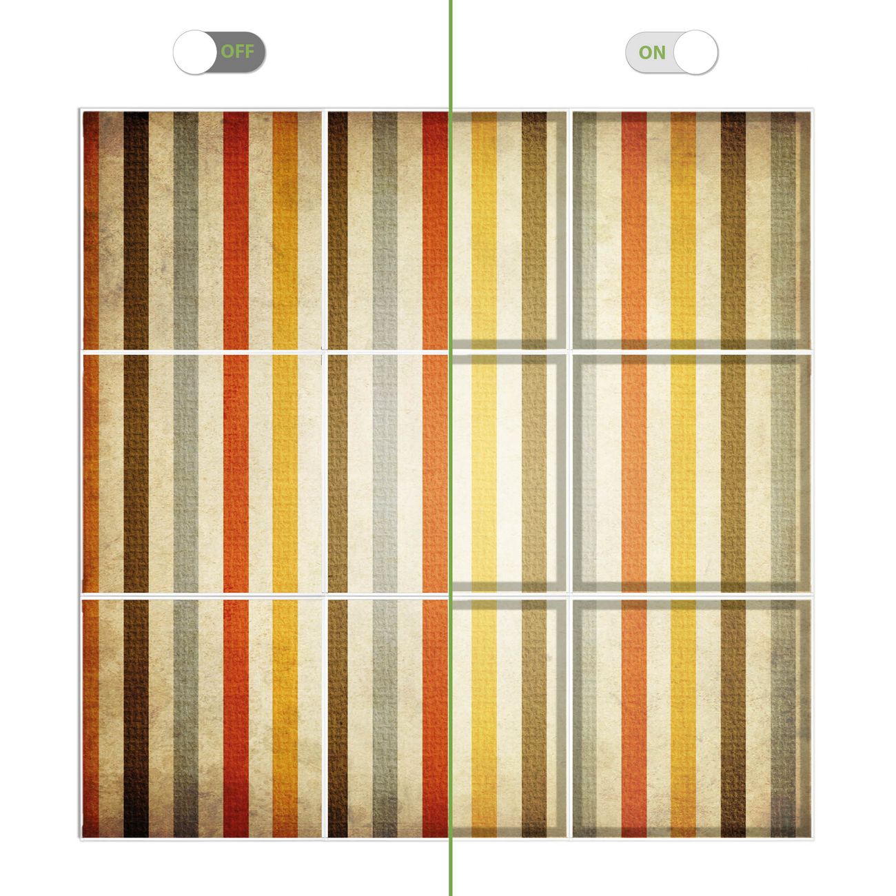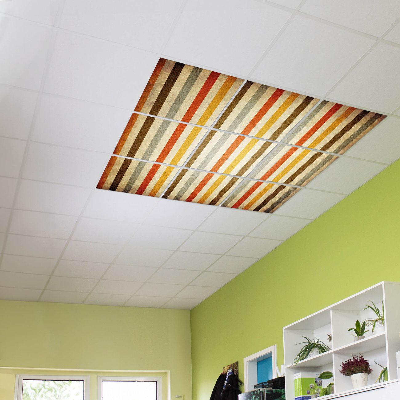 Entdecken Sie unsere vielseitigen Lichtdecken, hier in der Größe 186 x 186cm mit dem Motiv Motiv Alte Streifen - Ihre Beleuchtungslösung für jede Umgebung Beleuchten Sie Ihren Raum nicht nur, sondern schaffen Sie Atmosphäre! Die banjado Lichtdecke verwandelt jeden Ort, ob zu Hause, in Praxen, Büros oder Studios in eine Wohlfühloase. Unsere einzelnen Elemente haben eine genormte Einheitsgröße von 62 x 62cm und können somit in jede gängige Rasterdecken verbaut werden. So finden Sie Ihre passende Ausführung: Gern helfen wir Ihnen, die passende Ausführung zu wählen. Hierfür muss die aktuelle Gegebenheit Ihrer Decke oder Wand beachtet werden. Haben Sie bereits eine Rasterdecke (auch Odenwalddecke genannt)? Hier bestellen Sie lediglich das Motiv + Beleuchtungspanel, denn beides wird in die bereits vorhandene Decke eingelegt. Haben Sie eine glatte Decke mit Lichtauslass oder möchten die Lichtdecke an der Wand befestigen? Hier bestellen Sie bitte Motiv + Beleuchtungspanel + Deckenbefestigung, eine Aufbauanleitung liegt immer bei. Die Lichtdecke kann sowohl an der Decke als auch an der Wand montiert werden, perfekt für kreative Lichtakzente oder alternative Beleuchtungslösungen. Haben Sie bereits eine Lichtdecke und möchten nur das Motiv wechseln? Hier bestellen Sie bitte nur Motiv, der Wechsel ist denkbar einfach. Der Aufbau Ihrer banjado Lichtdecke gestaltet sich unkompliziert, dank einer verständlichen Anleitung, die Ihnen Schritt für Schritt durch den Montageprozess hilft. Für die endgültige Installation und den sicheren Anschluss empfehlen wir die Hinzuziehung eines Fachmanns, um die optimale Funktion und Sicherheit Ihrer Beleuchtung zu gewährleisten. Falls Sie einen Fachmann für die Installation benötigen, geben Sie uns gern Bescheid, wir vermitteln Ihnen gern einen geeigneten Ansprechpartner aus Ihrer Nähe. Steuerung: Steigern Sie Ihr Beleuchtungserlebnis mit der nahtlosen Integration in Ihr Smart Home. Durch die Kompatibilität mit der SmartLife App, Alexa und Google Assistant wird Ihr Smartphone zur zentralen Steuerungseinheit. Ihr Handy fungiert hierbei sozusagen als Fernbedienung. Legen Sie individuelle Lichtszenen in der App fest, die bei Aktivierung über den Wand-Ein-/Ausschalter immer wieder abgerufen werden können ohne Handy. Mit der Szenenfunktion in der Smart App können Sie die Beleuchtung personalisieren und steuern, sodass sie auf Ihre individuellen Bedürfnisse, Tagesrhythmus und Stimmung zugeschnitten ist. Beispielsweise können Sie sich in der Morgendämmerung durch ein sanftes Licht wecken lassen oder das Licht der Praxis werktags um 7 Uhr automatisch einschalten lassen. Dieses kann dann natürlich auch zu einer bestimmten Zeit automatisch ausgeschaltet werden. Motivwahl: Diese einzigartige Lichtdecke zeichnet sich durch ihre Fähigkeit aus, die Lichtfarbe je nach gewähltem Motiv anzupassen - ein Baum wirft ein sanftes grünes Licht, während eine Wolkendecke Ihren Raum in ein beruhigendes blaues Leuchten hüllt. Berücksichtigen Sie dies bitte bei Ihrer Motivauswahl. Sie können das Motiv jederzeit ohne großen Aufwand austauschen, ob nach Jahreszeit oder anderem Anlass, unsere Auswahl lässt kaum Wünsche offen. Wir fertigen Ihnen gern eine personalisierte Lichtdecke mit einem eigenen Motiv oder Logo oder Foto, schreiben Sie uns jederzeit an. Technische Daten: Das Motiv ist auf einer 4mm starken Acrylglas Scheibe aufgebracht, das Gesamtgewicht Ihrer Ausführung beträgt 39,9kg. Die Farbtemperatur lässt sich frei einstellen von 3000 bis 6000 Kelvin, damit können Sie stufenlos zwischen warmweiß, neutralweiß und kaltweiß wählen. Die Gesamtleistung bei Ihrer gewählten Ausführung beträgt 360W. Der Lichtstrom beträgt 3600 Lumen, die Nennspannung 230 V. Die Lichtdecke ist mit Schutzart IP20 für den Innenbereich konzipiert und sollte nicht im Nassbereich verwendet werden.