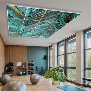 Entdecken Sie unsere vielseitigen Lichtdecken, hier in der Größe 248 x 248cm mit dem Motiv Motiv Altes Holz Blau - Ihre Beleuchtungslösung für jede Umgebung Beleuchten Sie Ihren Raum nicht nur, sondern schaffen Sie Atmosphäre! Die banjado Lichtdecke verwandelt jeden Ort, ob zu Hause, in Praxen, Büros oder Studios in eine Wohlfühloase. Unsere einzelnen Elemente haben eine genormte Einheitsgröße von 62 x 62cm und können somit in jede gängige Rasterdecken verbaut werden. So finden Sie Ihre passende Ausführung: Gern helfen wir Ihnen, die passende Ausführung zu wählen. Hierfür muss die aktuelle Gegebenheit Ihrer Decke oder Wand beachtet werden. Haben Sie bereits eine Rasterdecke (auch Odenwalddecke genannt)? Hier bestellen Sie lediglich das Motiv + Beleuchtungspanel, denn beides wird in die bereits vorhandene Decke eingelegt. Haben Sie eine glatte Decke mit Lichtauslass oder möchten die Lichtdecke an der Wand befestigen? Hier bestellen Sie bitte Motiv + Beleuchtungspanel + Deckenbefestigung, eine Aufbauanleitung liegt immer bei. Die Lichtdecke kann sowohl an der Decke als auch an der Wand montiert werden, perfekt für kreative Lichtakzente oder alternative Beleuchtungslösungen. Haben Sie bereits eine Lichtdecke und möchten nur das Motiv wechseln? Hier bestellen Sie bitte nur Motiv, der Wechsel ist denkbar einfach. Der Aufbau Ihrer banjado Lichtdecke gestaltet sich unkompliziert, dank einer verständlichen Anleitung, die Ihnen Schritt für Schritt durch den Montageprozess hilft. Für die endgültige Installation und den sicheren Anschluss empfehlen wir die Hinzuziehung eines Fachmanns, um die optimale Funktion und Sicherheit Ihrer Beleuchtung zu gewährleisten. Falls Sie einen Fachmann für die Installation benötigen, geben Sie uns gern Bescheid, wir vermitteln Ihnen gern einen geeigneten Ansprechpartner aus Ihrer Nähe. Steuerung: Steigern Sie Ihr Beleuchtungserlebnis mit der nahtlosen Integration in Ihr Smart Home. Durch die Kompatibilität mit der SmartLife App, Alexa und Google Assistant wird Ihr Smartphone zur zentralen Steuerungseinheit. Ihr Handy fungiert hierbei sozusagen als Fernbedienung. Legen Sie individuelle Lichtszenen in der App fest, die bei Aktivierung über den Wand-Ein-/Ausschalter immer wieder abgerufen werden können ohne Handy. Mit der Szenenfunktion in der Smart App können Sie die Beleuchtung personalisieren und steuern, sodass sie auf Ihre individuellen Bedürfnisse, Tagesrhythmus und Stimmung zugeschnitten ist. Beispielsweise können Sie sich in der Morgendämmerung durch ein sanftes Licht wecken lassen oder das Licht der Praxis werktags um 7 Uhr automatisch einschalten lassen. Dieses kann dann natürlich auch zu einer bestimmten Zeit automatisch ausgeschaltet werden. Motivwahl: Diese einzigartige Lichtdecke zeichnet sich durch ihre Fähigkeit aus, die Lichtfarbe je nach gewähltem Motiv anzupassen - ein Baum wirft ein sanftes grünes Licht, während eine Wolkendecke Ihren Raum in ein beruhigendes blaues Leuchten hüllt. Berücksichtigen Sie dies bitte bei Ihrer Motivauswahl. Sie können das Motiv jederzeit ohne großen Aufwand austauschen, ob nach Jahreszeit oder anderem Anlass, unsere Auswahl lässt kaum Wünsche offen. Wir fertigen Ihnen gern eine personalisierte Lichtdecke mit einem eigenen Motiv oder Logo oder Foto, schreiben Sie uns jederzeit an. Technische Daten: Das Motiv ist auf einer 4mm starken Acrylglas Scheibe aufgebracht, das Gesamtgewicht Ihrer Ausführung beträgt 78,9kg. Die Farbtemperatur lässt sich frei einstellen von 3000 bis 6000 Kelvin, damit können Sie stufenlos zwischen warmweiß, neutralweiß und kaltweiß wählen. Die Gesamtleistung bei Ihrer gewählten Ausführung beträgt 640W. Der Lichtstrom beträgt 3600 Lumen, die Nennspannung 230 V. Die Lichtdecke ist mit Schutzart IP20 für den Innenbereich konzipiert und sollte nicht im Nassbereich verwendet werden.