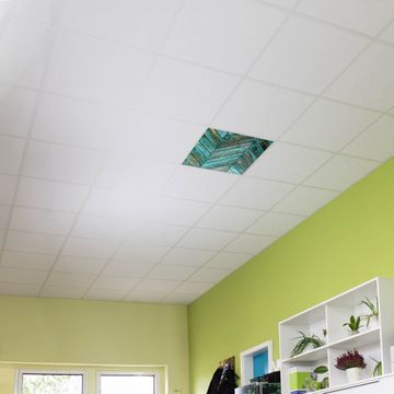 Entdecken Sie unsere vielseitigen Lichtdecken, hier in der Größe 62 x 62cm mit dem Motiv Motiv Altes Holz Blau - Ihre Beleuchtungslösung für jede Umgebung Beleuchten Sie Ihren Raum nicht nur, sondern schaffen Sie Atmosphäre! Die banjado Lichtdecke verwandelt jeden Ort, ob zu Hause, in Praxen, Büros oder Studios in eine Wohlfühloase. Unsere einzelnen Elemente haben eine genormte Einheitsgröße von 62 x 62cm und können somit in jede gängige Rasterdecken verbaut werden. So finden Sie Ihre passende Ausführung: Gern helfen wir Ihnen, die passende Ausführung zu wählen. Hierfür muss die aktuelle Gegebenheit Ihrer Decke oder Wand beachtet werden. Haben Sie bereits eine Rasterdecke (auch Odenwalddecke genannt)? Hier bestellen Sie lediglich das Motiv + Beleuchtungspanel, denn beides wird in die bereits vorhandene Decke eingelegt. Haben Sie eine glatte Decke mit Lichtauslass oder möchten die Lichtdecke an der Wand befestigen? Hier bestellen Sie bitte Motiv + Beleuchtungspanel + Deckenbefestigung, eine Aufbauanleitung liegt immer bei. Die Lichtdecke kann sowohl an der Decke als auch an der Wand montiert werden, perfekt für kreative Lichtakzente oder alternative Beleuchtungslösungen. Haben Sie bereits eine Lichtdecke und möchten nur das Motiv wechseln? Hier bestellen Sie bitte nur Motiv, der Wechsel ist denkbar einfach. Der Aufbau Ihrer banjado Lichtdecke gestaltet sich unkompliziert, dank einer verständlichen Anleitung, die Ihnen Schritt für Schritt durch den Montageprozess hilft. Für die endgültige Installation und den sicheren Anschluss empfehlen wir die Hinzuziehung eines Fachmanns, um die optimale Funktion und Sicherheit Ihrer Beleuchtung zu gewährleisten. Falls Sie einen Fachmann für die Installation benötigen, geben Sie uns gern Bescheid, wir vermitteln Ihnen gern einen geeigneten Ansprechpartner aus Ihrer Nähe. Steuerung: Steigern Sie Ihr Beleuchtungserlebnis mit der nahtlosen Integration in Ihr Smart Home. Durch die Kompatibilität mit der SmartLife App, Alexa und Google Assistant wird Ihr Smartphone zur zentralen Steuerungseinheit. Ihr Handy fungiert hierbei sozusagen als Fernbedienung. Legen Sie individuelle Lichtszenen in der App fest, die bei Aktivierung über den Wand-Ein-/Ausschalter immer wieder abgerufen werden können ohne Handy. Mit der Szenenfunktion in der Smart App können Sie die Beleuchtung personalisieren und steuern, sodass sie auf Ihre individuellen Bedürfnisse, Tagesrhythmus und Stimmung zugeschnitten ist. Beispielsweise können Sie sich in der Morgendämmerung durch ein sanftes Licht wecken lassen oder das Licht der Praxis werktags um 7 Uhr automatisch einschalten lassen. Dieses kann dann natürlich auch zu einer bestimmten Zeit automatisch ausgeschaltet werden. Motivwahl: Diese einzigartige Lichtdecke zeichnet sich durch ihre Fähigkeit aus, die Lichtfarbe je nach gewähltem Motiv anzupassen - ein Baum wirft ein sanftes grünes Licht, während eine Wolkendecke Ihren Raum in ein beruhigendes blaues Leuchten hüllt. Berücksichtigen Sie dies bitte bei Ihrer Motivauswahl. Sie können das Motiv jederzeit ohne großen Aufwand austauschen, ob nach Jahreszeit oder anderem Anlass, unsere Auswahl lässt kaum Wünsche offen. Wir fertigen Ihnen gern eine personalisierte Lichtdecke mit einem eigenen Motiv oder Logo oder Foto, schreiben Sie uns jederzeit an. Technische Daten: Das Motiv ist auf einer 4mm starken Acrylglas Scheibe aufgebracht, das Gesamtgewicht Ihrer Ausführung beträgt 4,4kg. Die Farbtemperatur lässt sich frei einstellen von 3000 bis 6000 Kelvin, damit können Sie stufenlos zwischen warmweiß, neutralweiß und kaltweiß wählen. Die Gesamtleistung bei Ihrer gewählten Ausführung beträgt 40W. Der Lichtstrom beträgt 3600 Lumen, die Nennspannung 230 V. Die Lichtdecke ist mit Schutzart IP20 für den Innenbereich konzipiert und sollte nicht im Nassbereich verwendet werden.