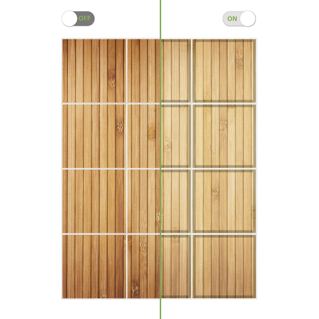 Entdecken Sie unsere vielseitigen Lichtdecken, hier in der Größe 186 x 248cm mit dem Motiv Motiv Bambusholz - Ihre Beleuchtungslösung für jede Umgebung Beleuchten Sie Ihren Raum nicht nur, sondern schaffen Sie Atmosphäre! Die banjado Lichtdecke verwandelt jeden Ort, ob zu Hause, in Praxen, Büros oder Studios in eine Wohlfühloase. Unsere einzelnen Elemente haben eine genormte Einheitsgröße von 62 x 62cm und können somit in jede gängige Rasterdecken verbaut werden. So finden Sie Ihre passende Ausführung: Gern helfen wir Ihnen, die passende Ausführung zu wählen. Hierfür muss die aktuelle Gegebenheit Ihrer Decke oder Wand beachtet werden. Haben Sie bereits eine Rasterdecke (auch Odenwalddecke genannt)? Hier bestellen Sie lediglich das Motiv + Beleuchtungspanel, denn beides wird in die bereits vorhandene Decke eingelegt. Haben Sie eine glatte Decke mit Lichtauslass oder möchten die Lichtdecke an der Wand befestigen? Hier bestellen Sie bitte Motiv + Beleuchtungspanel + Deckenbefestigung, eine Aufbauanleitung liegt immer bei. Die Lichtdecke kann sowohl an der Decke als auch an der Wand montiert werden, perfekt für kreative Lichtakzente oder alternative Beleuchtungslösungen. Haben Sie bereits eine Lichtdecke und möchten nur das Motiv wechseln? Hier bestellen Sie bitte nur Motiv, der Wechsel ist denkbar einfach. Der Aufbau Ihrer banjado Lichtdecke gestaltet sich unkompliziert, dank einer verständlichen Anleitung, die Ihnen Schritt für Schritt durch den Montageprozess hilft. Für die endgültige Installation und den sicheren Anschluss empfehlen wir die Hinzuziehung eines Fachmanns, um die optimale Funktion und Sicherheit Ihrer Beleuchtung zu gewährleisten. Falls Sie einen Fachmann für die Installation benötigen, geben Sie uns gern Bescheid, wir vermitteln Ihnen gern einen geeigneten Ansprechpartner aus Ihrer Nähe. Steuerung: Steigern Sie Ihr Beleuchtungserlebnis mit der nahtlosen Integration in Ihr Smart Home. Durch die Kompatibilität mit der SmartLife App, Alexa und Google Assistant wird Ihr Smartphone zur zentralen Steuerungseinheit. Ihr Handy fungiert hierbei sozusagen als Fernbedienung. Legen Sie individuelle Lichtszenen in der App fest, die bei Aktivierung über den Wand-Ein-/Ausschalter immer wieder abgerufen werden können ohne Handy. Mit der Szenenfunktion in der Smart App können Sie die Beleuchtung personalisieren und steuern, sodass sie auf Ihre individuellen Bedürfnisse, Tagesrhythmus und Stimmung zugeschnitten ist. Beispielsweise können Sie sich in der Morgendämmerung durch ein sanftes Licht wecken lassen oder das Licht der Praxis werktags um 7 Uhr automatisch einschalten lassen. Dieses kann dann natürlich auch zu einer bestimmten Zeit automatisch ausgeschaltet werden. Motivwahl: Diese einzigartige Lichtdecke zeichnet sich durch ihre Fähigkeit aus, die Lichtfarbe je nach gewähltem Motiv anzupassen - ein Baum wirft ein sanftes grünes Licht, während eine Wolkendecke Ihren Raum in ein beruhigendes blaues Leuchten hüllt. Berücksichtigen Sie dies bitte bei Ihrer Motivauswahl. Sie können das Motiv jederzeit ohne großen Aufwand austauschen, ob nach Jahreszeit oder anderem Anlass, unsere Auswahl lässt kaum Wünsche offen. Wir fertigen Ihnen gern eine personalisierte Lichtdecke mit einem eigenen Motiv oder Logo oder Foto, schreiben Sie uns jederzeit an. Technische Daten: Das Motiv ist auf einer 4mm starken Acrylglas Scheibe aufgebracht, das Gesamtgewicht Ihrer Ausführung beträgt 59,1kg. Die Farbtemperatur lässt sich frei einstellen von 3000 bis 6000 Kelvin, damit können Sie stufenlos zwischen warmweiß, neutralweiß und kaltweiß wählen. Die Gesamtleistung bei Ihrer gewählten Ausführung beträgt 480W. Der Lichtstrom beträgt 3600 Lumen, die Nennspannung 230 V. Die Lichtdecke ist mit Schutzart IP20 für den Innenbereich konzipiert und sollte nicht im Nassbereich verwendet werden.