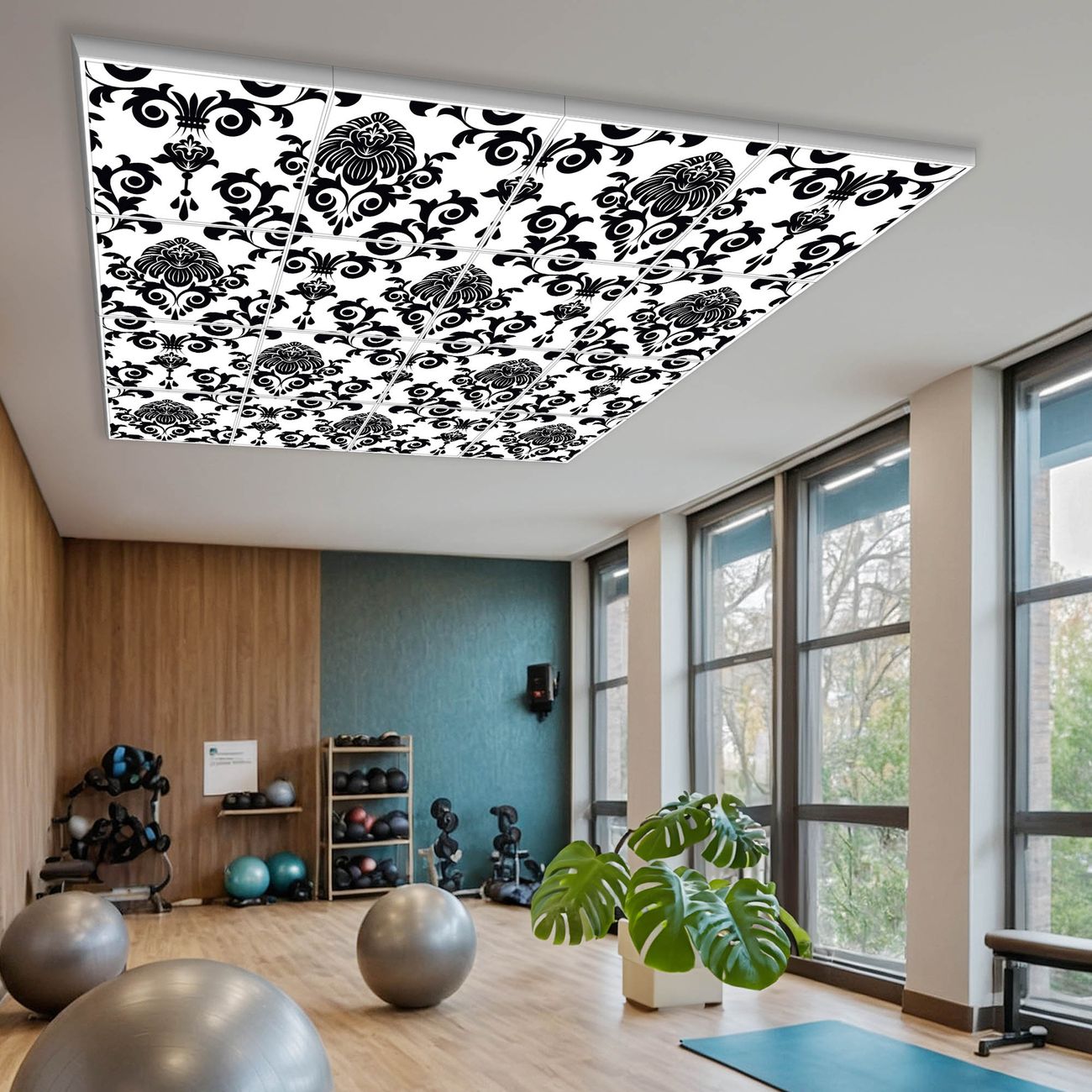 Entdecken Sie unsere vielseitigen Lichtdecken, hier in der Größe 248 x 248cm mit dem Motiv Motiv Barock - Ihre Beleuchtungslösung für jede Umgebung Beleuchten Sie Ihren Raum nicht nur, sondern schaffen Sie Atmosphäre! Die banjado Lichtdecke verwandelt jeden Ort, ob zu Hause, in Praxen, Büros oder Studios in eine Wohlfühloase. Unsere einzelnen Elemente haben eine genormte Einheitsgröße von 62 x 62cm und können somit in jede gängige Rasterdecken verbaut werden. So finden Sie Ihre passende Ausführung: Gern helfen wir Ihnen, die passende Ausführung zu wählen. Hierfür muss die aktuelle Gegebenheit Ihrer Decke oder Wand beachtet werden. Haben Sie bereits eine Rasterdecke (auch Odenwalddecke genannt)? Hier bestellen Sie lediglich das Motiv + Beleuchtungspanel, denn beides wird in die bereits vorhandene Decke eingelegt. Haben Sie eine glatte Decke mit Lichtauslass oder möchten die Lichtdecke an der Wand befestigen? Hier bestellen Sie bitte Motiv + Beleuchtungspanel + Deckenbefestigung, eine Aufbauanleitung liegt immer bei. Die Lichtdecke kann sowohl an der Decke als auch an der Wand montiert werden, perfekt für kreative Lichtakzente oder alternative Beleuchtungslösungen. Haben Sie bereits eine Lichtdecke und möchten nur das Motiv wechseln? Hier bestellen Sie bitte nur Motiv, der Wechsel ist denkbar einfach. Der Aufbau Ihrer banjado Lichtdecke gestaltet sich unkompliziert, dank einer verständlichen Anleitung, die Ihnen Schritt für Schritt durch den Montageprozess hilft. Für die endgültige Installation und den sicheren Anschluss empfehlen wir die Hinzuziehung eines Fachmanns, um die optimale Funktion und Sicherheit Ihrer Beleuchtung zu gewährleisten. Falls Sie einen Fachmann für die Installation benötigen, geben Sie uns gern Bescheid, wir vermitteln Ihnen gern einen geeigneten Ansprechpartner aus Ihrer Nähe. Steuerung: Steigern Sie Ihr Beleuchtungserlebnis mit der nahtlosen Integration in Ihr Smart Home. Durch die Kompatibilität mit der SmartLife App, Alexa und Google Assistant wird Ihr Smartphone zur zentralen Steuerungseinheit. Ihr Handy fungiert hierbei sozusagen als Fernbedienung. Legen Sie individuelle Lichtszenen in der App fest, die bei Aktivierung über den Wand-Ein-/Ausschalter immer wieder abgerufen werden können ohne Handy. Mit der Szenenfunktion in der Smart App können Sie die Beleuchtung personalisieren und steuern, sodass sie auf Ihre individuellen Bedürfnisse, Tagesrhythmus und Stimmung zugeschnitten ist. Beispielsweise können Sie sich in der Morgendämmerung durch ein sanftes Licht wecken lassen oder das Licht der Praxis werktags um 7 Uhr automatisch einschalten lassen. Dieses kann dann natürlich auch zu einer bestimmten Zeit automatisch ausgeschaltet werden. Motivwahl: Diese einzigartige Lichtdecke zeichnet sich durch ihre Fähigkeit aus, die Lichtfarbe je nach gewähltem Motiv anzupassen - ein Baum wirft ein sanftes grünes Licht, während eine Wolkendecke Ihren Raum in ein beruhigendes blaues Leuchten hüllt. Berücksichtigen Sie dies bitte bei Ihrer Motivauswahl. Sie können das Motiv jederzeit ohne großen Aufwand austauschen, ob nach Jahreszeit oder anderem Anlass, unsere Auswahl lässt kaum Wünsche offen. Wir fertigen Ihnen gern eine personalisierte Lichtdecke mit einem eigenen Motiv oder Logo oder Foto, schreiben Sie uns jederzeit an. Technische Daten: Das Motiv ist auf einer 4mm starken Acrylglas Scheibe aufgebracht, das Gesamtgewicht Ihrer Ausführung beträgt 78,9kg. Die Farbtemperatur lässt sich frei einstellen von 3000 bis 6000 Kelvin, damit können Sie stufenlos zwischen warmweiß, neutralweiß und kaltweiß wählen. Die Gesamtleistung bei Ihrer gewählten Ausführung beträgt 640W. Der Lichtstrom beträgt 3600 Lumen, die Nennspannung 230 V. Die Lichtdecke ist mit Schutzart IP20 für den Innenbereich konzipiert und sollte nicht im Nassbereich verwendet werden.