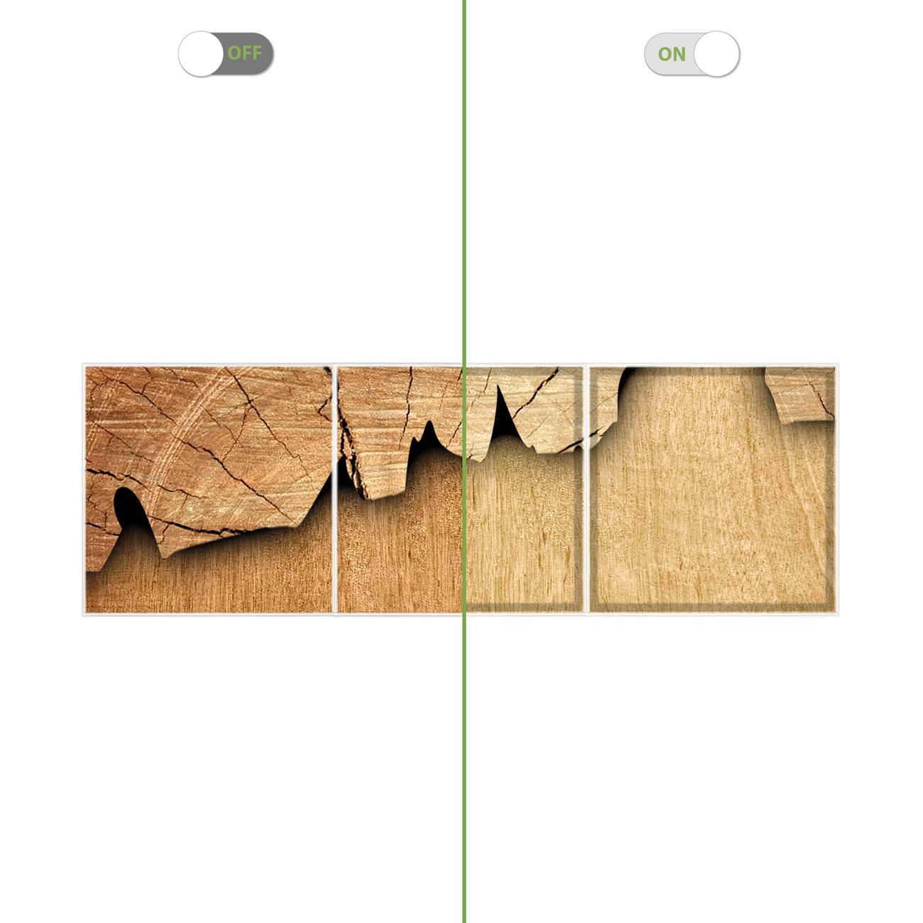 Motiv Baumscheibe Nr. 12148 Größe: 186x62x0,3cm BxHxT Gewicht: ca. 5,70 kg Material: Acylglas, hochwertig bedruckte Premiumfolie Druck: farbbrilliant, hochauflösend Stärke Glas: 4mm Acylglas Einzelelement: 62x62cm groß