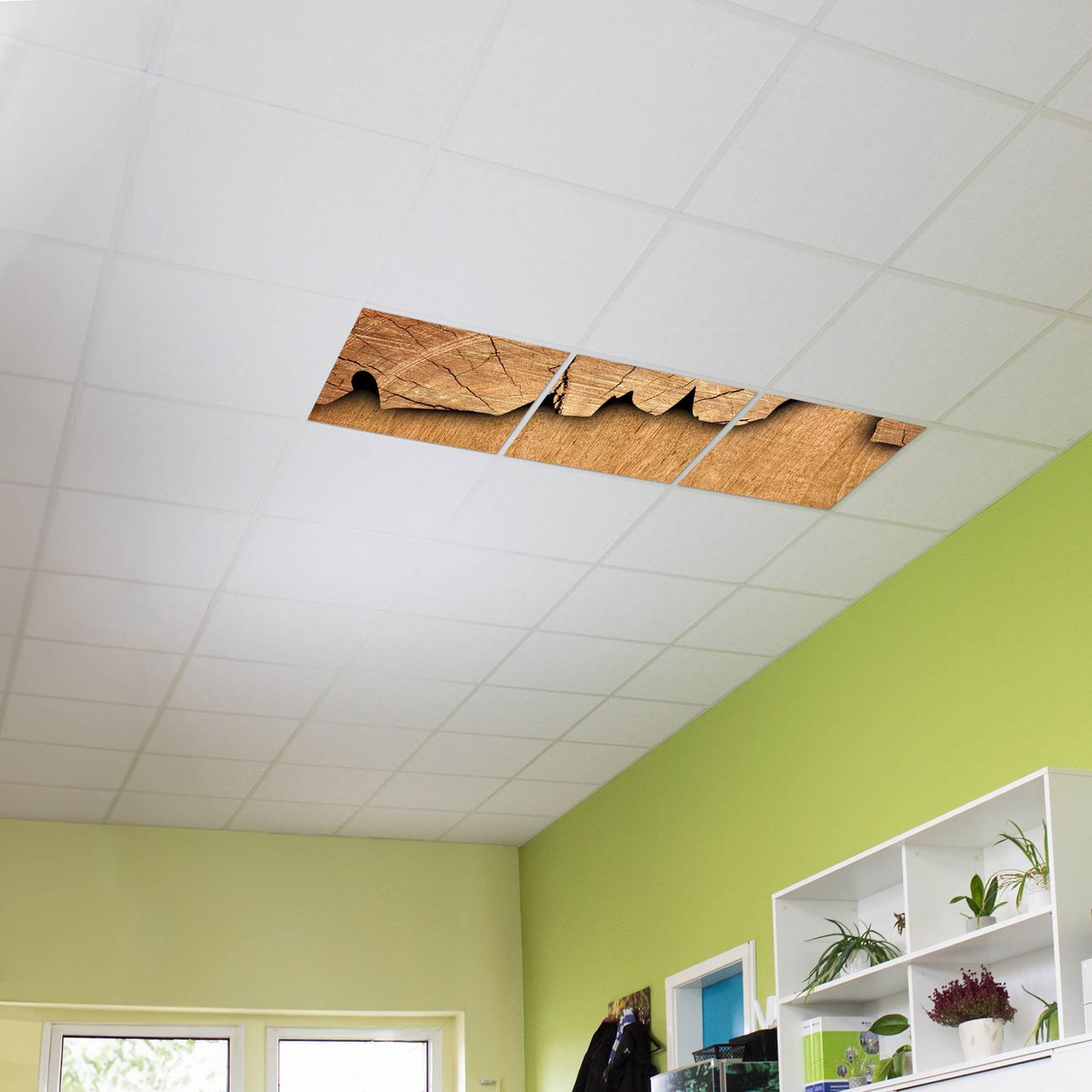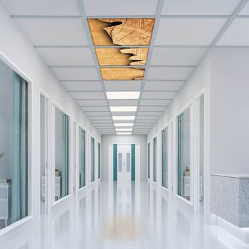 Entdecken Sie unsere vielseitigen Lichtdecken, hier in der Größe 186 x 62cm mit dem Motiv Motiv Baumscheibe - Ihre Beleuchtungslösung für jede Umgebung Beleuchten Sie Ihren Raum nicht nur, sondern schaffen Sie Atmosphäre! Die banjado Lichtdecke verwandelt jeden Ort, ob zu Hause, in Praxen, Büros oder Studios in eine Wohlfühloase. Unsere einzelnen Elemente haben eine genormte Einheitsgröße von 62 x 62cm und können somit in jede gängige Rasterdecken verbaut werden. So finden Sie Ihre passende Ausführung: Gern helfen wir Ihnen, die passende Ausführung zu wählen. Hierfür muss die aktuelle Gegebenheit Ihrer Decke oder Wand beachtet werden. Haben Sie bereits eine Rasterdecke (auch Odenwalddecke genannt)? Hier bestellen Sie lediglich das Motiv + Beleuchtungspanel, denn beides wird in die bereits vorhandene Decke eingelegt. Haben Sie eine glatte Decke mit Lichtauslass oder möchten die Lichtdecke an der Wand befestigen? Hier bestellen Sie bitte Motiv + Beleuchtungspanel + Deckenbefestigung, eine Aufbauanleitung liegt immer bei. Die Lichtdecke kann sowohl an der Decke als auch an der Wand montiert werden, perfekt für kreative Lichtakzente oder alternative Beleuchtungslösungen. Haben Sie bereits eine Lichtdecke und möchten nur das Motiv wechseln? Hier bestellen Sie bitte nur Motiv, der Wechsel ist denkbar einfach. Der Aufbau Ihrer banjado Lichtdecke gestaltet sich unkompliziert, dank einer verständlichen Anleitung, die Ihnen Schritt für Schritt durch den Montageprozess hilft. Für die endgültige Installation und den sicheren Anschluss empfehlen wir die Hinzuziehung eines Fachmanns, um die optimale Funktion und Sicherheit Ihrer Beleuchtung zu gewährleisten. Falls Sie einen Fachmann für die Installation benötigen, geben Sie uns gern Bescheid, wir vermitteln Ihnen gern einen geeigneten Ansprechpartner aus Ihrer Nähe. Steuerung: Steigern Sie Ihr Beleuchtungserlebnis mit der nahtlosen Integration in Ihr Smart Home. Durch die Kompatibilität mit der SmartLife App, Alexa und Google Assistant wird Ihr Smartphone zur zentralen Steuerungseinheit. Ihr Handy fungiert hierbei sozusagen als Fernbedienung. Legen Sie individuelle Lichtszenen in der App fest, die bei Aktivierung über den Wand-Ein-/Ausschalter immer wieder abgerufen werden können ohne Handy. Mit der Szenenfunktion in der Smart App können Sie die Beleuchtung personalisieren und steuern, sodass sie auf Ihre individuellen Bedürfnisse, Tagesrhythmus und Stimmung zugeschnitten ist. Beispielsweise können Sie sich in der Morgendämmerung durch ein sanftes Licht wecken lassen oder das Licht der Praxis werktags um 7 Uhr automatisch einschalten lassen. Dieses kann dann natürlich auch zu einer bestimmten Zeit automatisch ausgeschaltet werden. Motivwahl: Diese einzigartige Lichtdecke zeichnet sich durch ihre Fähigkeit aus, die Lichtfarbe je nach gewähltem Motiv anzupassen - ein Baum wirft ein sanftes grünes Licht, während eine Wolkendecke Ihren Raum in ein beruhigendes blaues Leuchten hüllt. Berücksichtigen Sie dies bitte bei Ihrer Motivauswahl. Sie können das Motiv jederzeit ohne großen Aufwand austauschen, ob nach Jahreszeit oder anderem Anlass, unsere Auswahl lässt kaum Wünsche offen. Wir fertigen Ihnen gern eine personalisierte Lichtdecke mit einem eigenen Motiv oder Logo oder Foto, schreiben Sie uns jederzeit an. Technische Daten: Das Motiv ist auf einer 4mm starken Acrylglas Scheibe aufgebracht, das Gesamtgewicht Ihrer Ausführung beträgt 6,8kg. Die Farbtemperatur lässt sich frei einstellen von 3000 bis 6000 Kelvin, damit können Sie stufenlos zwischen warmweiß, neutralweiß und kaltweiß wählen. Die Gesamtleistung bei Ihrer gewählten Ausführung beträgt 120W. Der Lichtstrom beträgt 3600 Lumen, die Nennspannung 230 V. Die Lichtdecke ist mit Schutzart IP20 für den Innenbereich konzipiert und sollte nicht im Nassbereich verwendet werden.