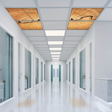 Entdecken Sie unsere vielseitigen Lichtdecken, hier in der Größe 124 x 124cm mit dem Motiv Motiv Baumscheibe - Ihre Beleuchtungslösung für jede Umgebung Beleuchten Sie Ihren Raum nicht nur, sondern schaffen Sie Atmosphäre! Die banjado Lichtdecke verwandelt jeden Ort, ob zu Hause, in Praxen, Büros oder Studios in eine Wohlfühloase. Unsere einzelnen Elemente haben eine genormte Einheitsgröße von 62 x 62cm und können somit in jede gängige Rasterdecken verbaut werden. So finden Sie Ihre passende Ausführung: Gern helfen wir Ihnen, die passende Ausführung zu wählen. Hierfür muss die aktuelle Gegebenheit Ihrer Decke oder Wand beachtet werden. Haben Sie bereits eine Rasterdecke (auch Odenwalddecke genannt)? Hier bestellen Sie lediglich das Motiv + Beleuchtungspanel, denn beides wird in die bereits vorhandene Decke eingelegt. Haben Sie eine glatte Decke mit Lichtauslass oder möchten die Lichtdecke an der Wand befestigen? Hier bestellen Sie bitte Motiv + Beleuchtungspanel + Deckenbefestigung, eine Aufbauanleitung liegt immer bei. Die Lichtdecke kann sowohl an der Decke als auch an der Wand montiert werden, perfekt für kreative Lichtakzente oder alternative Beleuchtungslösungen. Haben Sie bereits eine Lichtdecke und möchten nur das Motiv wechseln? Hier bestellen Sie bitte nur Motiv, der Wechsel ist denkbar einfach. Der Aufbau Ihrer banjado Lichtdecke gestaltet sich unkompliziert, dank einer verständlichen Anleitung, die Ihnen Schritt für Schritt durch den Montageprozess hilft. Für die endgültige Installation und den sicheren Anschluss empfehlen wir die Hinzuziehung eines Fachmanns, um die optimale Funktion und Sicherheit Ihrer Beleuchtung zu gewährleisten. Falls Sie einen Fachmann für die Installation benötigen, geben Sie uns gern Bescheid, wir vermitteln Ihnen gern einen geeigneten Ansprechpartner aus Ihrer Nähe. Steuerung: Steigern Sie Ihr Beleuchtungserlebnis mit der nahtlosen Integration in Ihr Smart Home. Durch die Kompatibilität mit der SmartLife App, Alexa und Google Assistant wird Ihr Smartphone zur zentralen Steuerungseinheit. Ihr Handy fungiert hierbei sozusagen als Fernbedienung. Legen Sie individuelle Lichtszenen in der App fest, die bei Aktivierung über den Wand-Ein-/Ausschalter immer wieder abgerufen werden können ohne Handy. Mit der Szenenfunktion in der Smart App können Sie die Beleuchtung personalisieren und steuern, sodass sie auf Ihre individuellen Bedürfnisse, Tagesrhythmus und Stimmung zugeschnitten ist. Beispielsweise können Sie sich in der Morgendämmerung durch ein sanftes Licht wecken lassen oder das Licht der Praxis werktags um 7 Uhr automatisch einschalten lassen. Dieses kann dann natürlich auch zu einer bestimmten Zeit automatisch ausgeschaltet werden. Motivwahl: Diese einzigartige Lichtdecke zeichnet sich durch ihre Fähigkeit aus, die Lichtfarbe je nach gewähltem Motiv anzupassen - ein Baum wirft ein sanftes grünes Licht, während eine Wolkendecke Ihren Raum in ein beruhigendes blaues Leuchten hüllt. Berücksichtigen Sie dies bitte bei Ihrer Motivauswahl. Sie können das Motiv jederzeit ohne großen Aufwand austauschen, ob nach Jahreszeit oder anderem Anlass, unsere Auswahl lässt kaum Wünsche offen. Wir fertigen Ihnen gern eine personalisierte Lichtdecke mit einem eigenen Motiv oder Logo oder Foto, schreiben Sie uns jederzeit an. Technische Daten: Das Motiv ist auf einer 4mm starken Acrylglas Scheibe aufgebracht, das Gesamtgewicht Ihrer Ausführung beträgt 9,0kg. Die Farbtemperatur lässt sich frei einstellen von 3000 bis 6000 Kelvin, damit können Sie stufenlos zwischen warmweiß, neutralweiß und kaltweiß wählen. Die Gesamtleistung bei Ihrer gewählten Ausführung beträgt 160W. Der Lichtstrom beträgt 3600 Lumen, die Nennspannung 230 V. Die Lichtdecke ist mit Schutzart IP20 für den Innenbereich konzipiert und sollte nicht im Nassbereich verwendet werden.