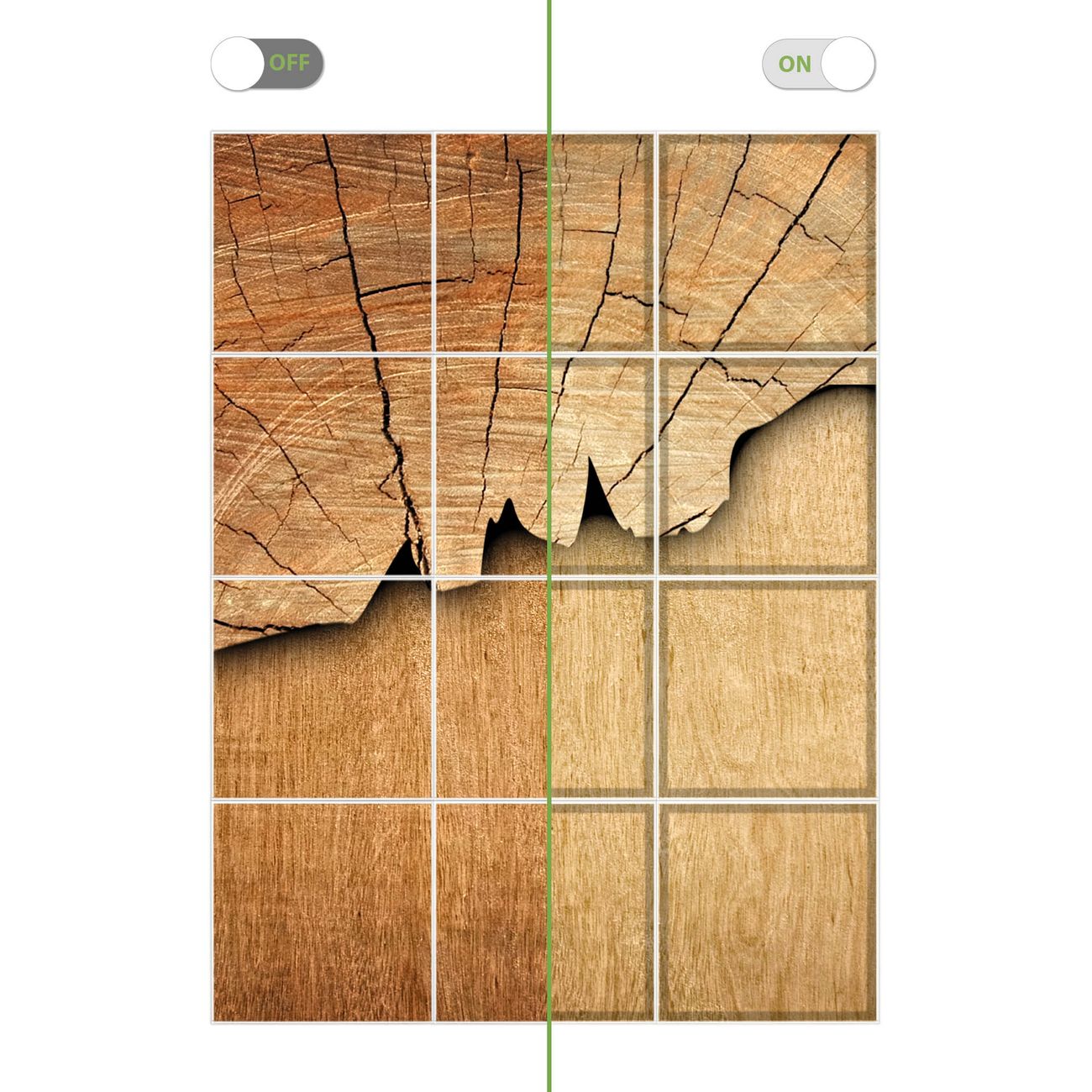 Motiv Baumscheibe Nr. 12148 Größe: 186x248x0,3cm BxHxT Gewicht: ca. 22,80 kg Material: Acylglas, hochwertig bedruckte Premiumfolie Druck: farbbrilliant, hochauflösend Stärke Glas: 4mm Acylglas Einzelelement: 62x62cm groß