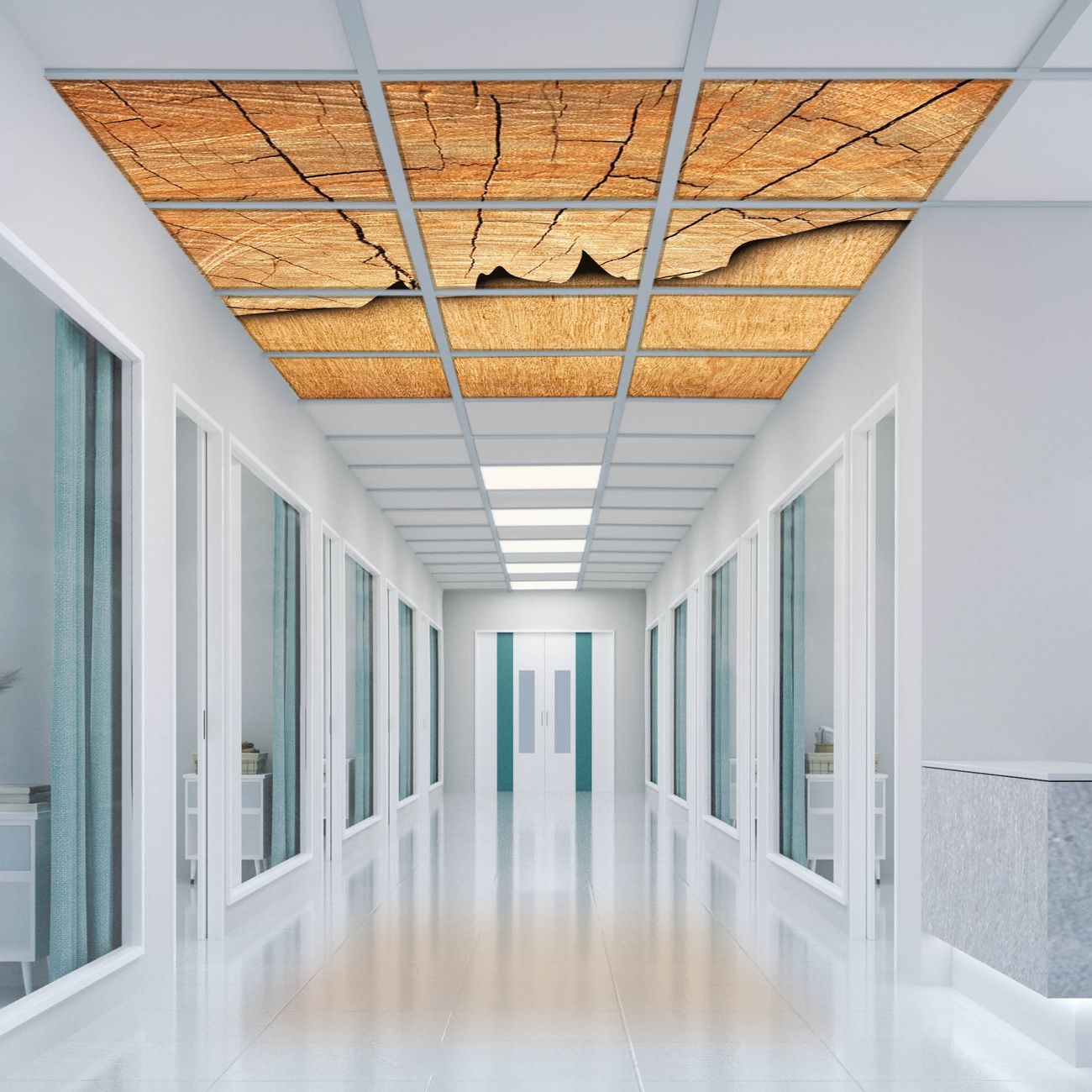 Entdecken Sie unsere vielseitigen Lichtdecken, hier in der Größe 186 x 248cm mit dem Motiv Motiv Baumscheibe - Ihre Beleuchtungslösung für jede Umgebung Beleuchten Sie Ihren Raum nicht nur, sondern schaffen Sie Atmosphäre! Die banjado Lichtdecke verwandelt jeden Ort, ob zu Hause, in Praxen, Büros oder Studios in eine Wohlfühloase. Unsere einzelnen Elemente haben eine genormte Einheitsgröße von 62 x 62cm und können somit in jede gängige Rasterdecken verbaut werden. So finden Sie Ihre passende Ausführung: Gern helfen wir Ihnen, die passende Ausführung zu wählen. Hierfür muss die aktuelle Gegebenheit Ihrer Decke oder Wand beachtet werden. Haben Sie bereits eine Rasterdecke (auch Odenwalddecke genannt)? Hier bestellen Sie lediglich das Motiv + Beleuchtungspanel, denn beides wird in die bereits vorhandene Decke eingelegt. Haben Sie eine glatte Decke mit Lichtauslass oder möchten die Lichtdecke an der Wand befestigen? Hier bestellen Sie bitte Motiv + Beleuchtungspanel + Deckenbefestigung, eine Aufbauanleitung liegt immer bei. Die Lichtdecke kann sowohl an der Decke als auch an der Wand montiert werden, perfekt für kreative Lichtakzente oder alternative Beleuchtungslösungen. Haben Sie bereits eine Lichtdecke und möchten nur das Motiv wechseln? Hier bestellen Sie bitte nur Motiv, der Wechsel ist denkbar einfach. Der Aufbau Ihrer banjado Lichtdecke gestaltet sich unkompliziert, dank einer verständlichen Anleitung, die Ihnen Schritt für Schritt durch den Montageprozess hilft. Für die endgültige Installation und den sicheren Anschluss empfehlen wir die Hinzuziehung eines Fachmanns, um die optimale Funktion und Sicherheit Ihrer Beleuchtung zu gewährleisten. Falls Sie einen Fachmann für die Installation benötigen, geben Sie uns gern Bescheid, wir vermitteln Ihnen gern einen geeigneten Ansprechpartner aus Ihrer Nähe. Steuerung: Steigern Sie Ihr Beleuchtungserlebnis mit der nahtlosen Integration in Ihr Smart Home. Durch die Kompatibilität mit der SmartLife App, Alexa und Google Assistant wird Ihr Smartphone zur zentralen Steuerungseinheit. Ihr Handy fungiert hierbei sozusagen als Fernbedienung. Legen Sie individuelle Lichtszenen in der App fest, die bei Aktivierung über den Wand-Ein-/Ausschalter immer wieder abgerufen werden können ohne Handy. Mit der Szenenfunktion in der Smart App können Sie die Beleuchtung personalisieren und steuern, sodass sie auf Ihre individuellen Bedürfnisse, Tagesrhythmus und Stimmung zugeschnitten ist. Beispielsweise können Sie sich in der Morgendämmerung durch ein sanftes Licht wecken lassen oder das Licht der Praxis werktags um 7 Uhr automatisch einschalten lassen. Dieses kann dann natürlich auch zu einer bestimmten Zeit automatisch ausgeschaltet werden. Motivwahl: Diese einzigartige Lichtdecke zeichnet sich durch ihre Fähigkeit aus, die Lichtfarbe je nach gewähltem Motiv anzupassen - ein Baum wirft ein sanftes grünes Licht, während eine Wolkendecke Ihren Raum in ein beruhigendes blaues Leuchten hüllt. Berücksichtigen Sie dies bitte bei Ihrer Motivauswahl. Sie können das Motiv jederzeit ohne großen Aufwand austauschen, ob nach Jahreszeit oder anderem Anlass, unsere Auswahl lässt kaum Wünsche offen. Wir fertigen Ihnen gern eine personalisierte Lichtdecke mit einem eigenen Motiv oder Logo oder Foto, schreiben Sie uns jederzeit an. Technische Daten: Das Motiv ist auf einer 4mm starken Acrylglas Scheibe aufgebracht, das Gesamtgewicht Ihrer Ausführung beträgt 27,1kg. Die Farbtemperatur lässt sich frei einstellen von 3000 bis 6000 Kelvin, damit können Sie stufenlos zwischen warmweiß, neutralweiß und kaltweiß wählen. Die Gesamtleistung bei Ihrer gewählten Ausführung beträgt 480W. Der Lichtstrom beträgt 3600 Lumen, die Nennspannung 230 V. Die Lichtdecke ist mit Schutzart IP20 für den Innenbereich konzipiert und sollte nicht im Nassbereich verwendet werden.
