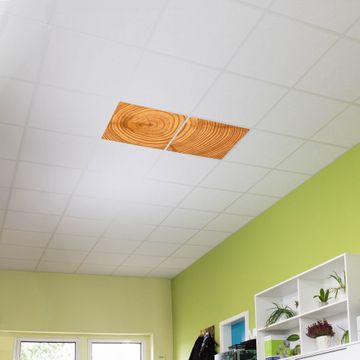 Entdecken Sie unsere vielseitigen Lichtdecken, hier in der Größe 124 x 62cm mit dem Motiv Motiv Baumstamm - Ihre Beleuchtungslösung für jede Umgebung Beleuchten Sie Ihren Raum nicht nur, sondern schaffen Sie Atmosphäre! Die banjado Lichtdecke verwandelt jeden Ort, ob zu Hause, in Praxen, Büros oder Studios in eine Wohlfühloase. Unsere einzelnen Elemente haben eine genormte Einheitsgröße von 62 x 62cm und können somit in jede gängige Rasterdecken verbaut werden. So finden Sie Ihre passende Ausführung: Gern helfen wir Ihnen, die passende Ausführung zu wählen. Hierfür muss die aktuelle Gegebenheit Ihrer Decke oder Wand beachtet werden. Haben Sie bereits eine Rasterdecke (auch Odenwalddecke genannt)? Hier bestellen Sie lediglich das Motiv + Beleuchtungspanel, denn beides wird in die bereits vorhandene Decke eingelegt. Haben Sie eine glatte Decke mit Lichtauslass oder möchten die Lichtdecke an der Wand befestigen? Hier bestellen Sie bitte Motiv + Beleuchtungspanel + Deckenbefestigung, eine Aufbauanleitung liegt immer bei. Die Lichtdecke kann sowohl an der Decke als auch an der Wand montiert werden, perfekt für kreative Lichtakzente oder alternative Beleuchtungslösungen. Haben Sie bereits eine Lichtdecke und möchten nur das Motiv wechseln? Hier bestellen Sie bitte nur Motiv, der Wechsel ist denkbar einfach. Der Aufbau Ihrer banjado Lichtdecke gestaltet sich unkompliziert, dank einer verständlichen Anleitung, die Ihnen Schritt für Schritt durch den Montageprozess hilft. Für die endgültige Installation und den sicheren Anschluss empfehlen wir die Hinzuziehung eines Fachmanns, um die optimale Funktion und Sicherheit Ihrer Beleuchtung zu gewährleisten. Falls Sie einen Fachmann für die Installation benötigen, geben Sie uns gern Bescheid, wir vermitteln Ihnen gern einen geeigneten Ansprechpartner aus Ihrer Nähe. Steuerung: Steigern Sie Ihr Beleuchtungserlebnis mit der nahtlosen Integration in Ihr Smart Home. Durch die Kompatibilität mit der SmartLife App, Alexa und Google Assistant wird Ihr Smartphone zur zentralen Steuerungseinheit. Ihr Handy fungiert hierbei sozusagen als Fernbedienung. Legen Sie individuelle Lichtszenen in der App fest, die bei Aktivierung über den Wand-Ein-/Ausschalter immer wieder abgerufen werden können ohne Handy. Mit der Szenenfunktion in der Smart App können Sie die Beleuchtung personalisieren und steuern, sodass sie auf Ihre individuellen Bedürfnisse, Tagesrhythmus und Stimmung zugeschnitten ist. Beispielsweise können Sie sich in der Morgendämmerung durch ein sanftes Licht wecken lassen oder das Licht der Praxis werktags um 7 Uhr automatisch einschalten lassen. Dieses kann dann natürlich auch zu einer bestimmten Zeit automatisch ausgeschaltet werden. Motivwahl: Diese einzigartige Lichtdecke zeichnet sich durch ihre Fähigkeit aus, die Lichtfarbe je nach gewähltem Motiv anzupassen - ein Baum wirft ein sanftes grünes Licht, während eine Wolkendecke Ihren Raum in ein beruhigendes blaues Leuchten hüllt. Berücksichtigen Sie dies bitte bei Ihrer Motivauswahl. Sie können das Motiv jederzeit ohne großen Aufwand austauschen, ob nach Jahreszeit oder anderem Anlass, unsere Auswahl lässt kaum Wünsche offen. Wir fertigen Ihnen gern eine personalisierte Lichtdecke mit einem eigenen Motiv oder Logo oder Foto, schreiben Sie uns jederzeit an. Technische Daten: Das Motiv ist auf einer 4mm starken Acrylglas Scheibe aufgebracht, das Gesamtgewicht Ihrer Ausführung beträgt 4,5kg. Die Farbtemperatur lässt sich frei einstellen von 3000 bis 6000 Kelvin, damit können Sie stufenlos zwischen warmweiß, neutralweiß und kaltweiß wählen. Die Gesamtleistung bei Ihrer gewählten Ausführung beträgt 80W. Der Lichtstrom beträgt 3600 Lumen, die Nennspannung 230 V. Die Lichtdecke ist mit Schutzart IP20 für den Innenbereich konzipiert und sollte nicht im Nassbereich verwendet werden.