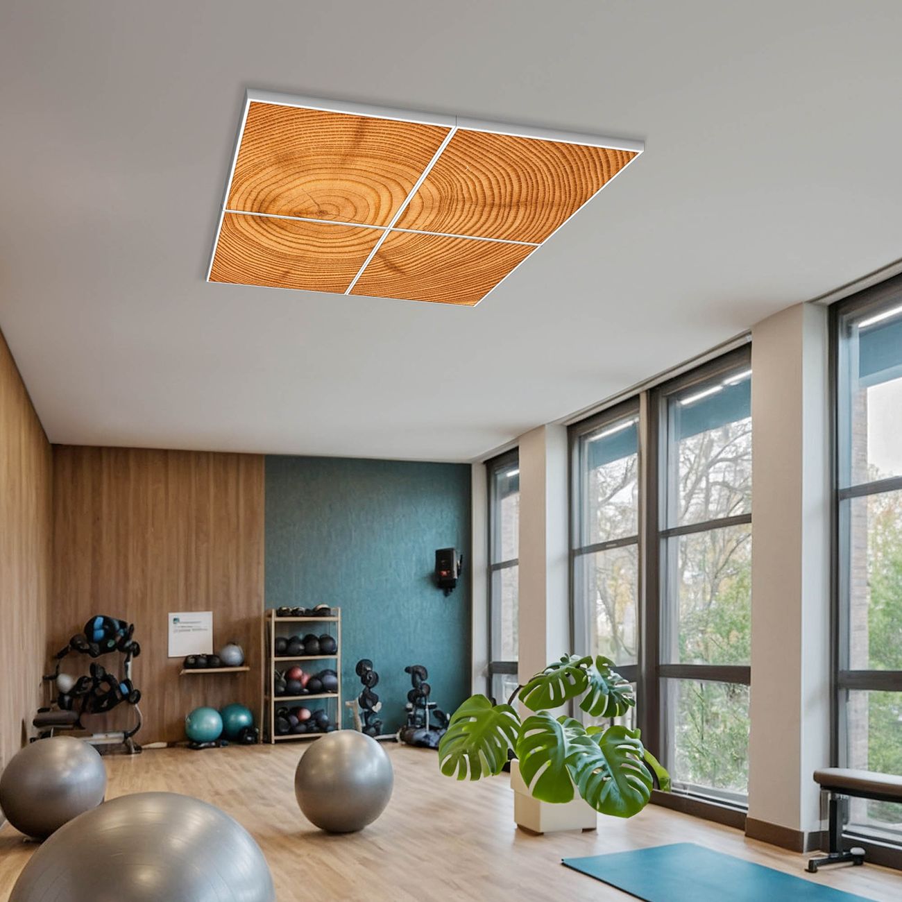 Entdecken Sie unsere vielseitigen Lichtdecken, hier in der Größe 124 x 124cm mit dem Motiv Motiv Baumstamm - Ihre Beleuchtungslösung für jede Umgebung Beleuchten Sie Ihren Raum nicht nur, sondern schaffen Sie Atmosphäre! Die banjado Lichtdecke verwandelt jeden Ort, ob zu Hause, in Praxen, Büros oder Studios in eine Wohlfühloase. Unsere einzelnen Elemente haben eine genormte Einheitsgröße von 62 x 62cm und können somit in jede gängige Rasterdecken verbaut werden. So finden Sie Ihre passende Ausführung: Gern helfen wir Ihnen, die passende Ausführung zu wählen. Hierfür muss die aktuelle Gegebenheit Ihrer Decke oder Wand beachtet werden. Haben Sie bereits eine Rasterdecke (auch Odenwalddecke genannt)? Hier bestellen Sie lediglich das Motiv + Beleuchtungspanel, denn beides wird in die bereits vorhandene Decke eingelegt. Haben Sie eine glatte Decke mit Lichtauslass oder möchten die Lichtdecke an der Wand befestigen? Hier bestellen Sie bitte Motiv + Beleuchtungspanel + Deckenbefestigung, eine Aufbauanleitung liegt immer bei. Die Lichtdecke kann sowohl an der Decke als auch an der Wand montiert werden, perfekt für kreative Lichtakzente oder alternative Beleuchtungslösungen. Haben Sie bereits eine Lichtdecke und möchten nur das Motiv wechseln? Hier bestellen Sie bitte nur Motiv, der Wechsel ist denkbar einfach. Der Aufbau Ihrer banjado Lichtdecke gestaltet sich unkompliziert, dank einer verständlichen Anleitung, die Ihnen Schritt für Schritt durch den Montageprozess hilft. Für die endgültige Installation und den sicheren Anschluss empfehlen wir die Hinzuziehung eines Fachmanns, um die optimale Funktion und Sicherheit Ihrer Beleuchtung zu gewährleisten. Falls Sie einen Fachmann für die Installation benötigen, geben Sie uns gern Bescheid, wir vermitteln Ihnen gern einen geeigneten Ansprechpartner aus Ihrer Nähe. Steuerung: Steigern Sie Ihr Beleuchtungserlebnis mit der nahtlosen Integration in Ihr Smart Home. Durch die Kompatibilität mit der SmartLife App, Alexa und Google Assistant wird Ihr Smartphone zur zentralen Steuerungseinheit. Ihr Handy fungiert hierbei sozusagen als Fernbedienung. Legen Sie individuelle Lichtszenen in der App fest, die bei Aktivierung über den Wand-Ein-/Ausschalter immer wieder abgerufen werden können ohne Handy. Mit der Szenenfunktion in der Smart App können Sie die Beleuchtung personalisieren und steuern, sodass sie auf Ihre individuellen Bedürfnisse, Tagesrhythmus und Stimmung zugeschnitten ist. Beispielsweise können Sie sich in der Morgendämmerung durch ein sanftes Licht wecken lassen oder das Licht der Praxis werktags um 7 Uhr automatisch einschalten lassen. Dieses kann dann natürlich auch zu einer bestimmten Zeit automatisch ausgeschaltet werden. Motivwahl: Diese einzigartige Lichtdecke zeichnet sich durch ihre Fähigkeit aus, die Lichtfarbe je nach gewähltem Motiv anzupassen - ein Baum wirft ein sanftes grünes Licht, während eine Wolkendecke Ihren Raum in ein beruhigendes blaues Leuchten hüllt. Berücksichtigen Sie dies bitte bei Ihrer Motivauswahl. Sie können das Motiv jederzeit ohne großen Aufwand austauschen, ob nach Jahreszeit oder anderem Anlass, unsere Auswahl lässt kaum Wünsche offen. Wir fertigen Ihnen gern eine personalisierte Lichtdecke mit einem eigenen Motiv oder Logo oder Foto, schreiben Sie uns jederzeit an. Technische Daten: Das Motiv ist auf einer 4mm starken Acrylglas Scheibe aufgebracht, das Gesamtgewicht Ihrer Ausführung beträgt 19,7kg. Die Farbtemperatur lässt sich frei einstellen von 3000 bis 6000 Kelvin, damit können Sie stufenlos zwischen warmweiß, neutralweiß und kaltweiß wählen. Die Gesamtleistung bei Ihrer gewählten Ausführung beträgt 160W. Der Lichtstrom beträgt 3600 Lumen, die Nennspannung 230 V. Die Lichtdecke ist mit Schutzart IP20 für den Innenbereich konzipiert und sollte nicht im Nassbereich verwendet werden.