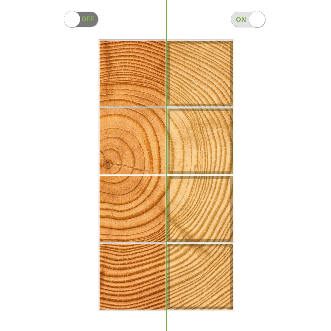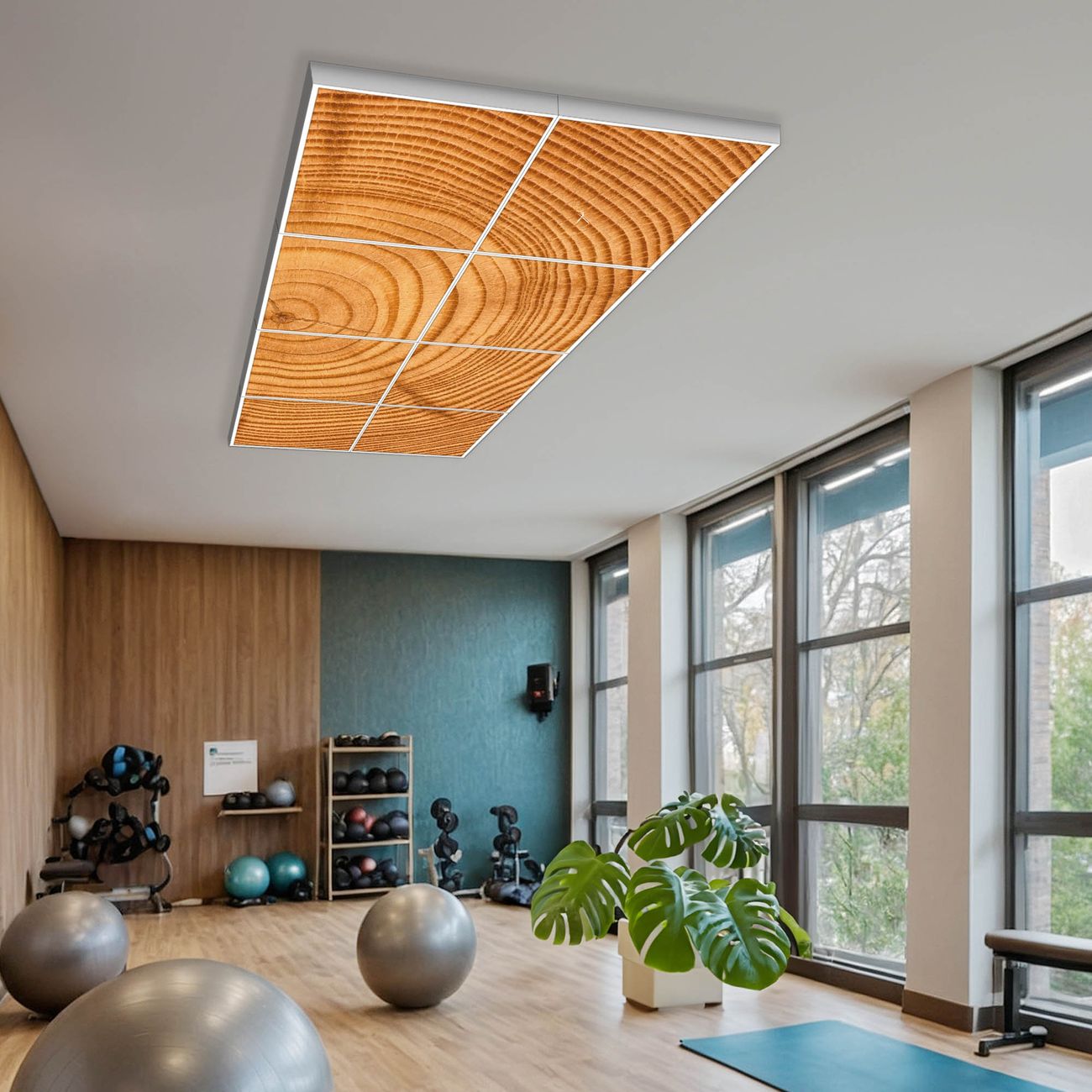 Entdecken Sie unsere vielseitigen Lichtdecken, hier in der Größe 124 x 248cm mit dem Motiv Motiv Baumstamm - Ihre Beleuchtungslösung für jede Umgebung Beleuchten Sie Ihren Raum nicht nur, sondern schaffen Sie Atmosphäre! Die banjado Lichtdecke verwandelt jeden Ort, ob zu Hause, in Praxen, Büros oder Studios in eine Wohlfühloase. Unsere einzelnen Elemente haben eine genormte Einheitsgröße von 62 x 62cm und können somit in jede gängige Rasterdecken verbaut werden. So finden Sie Ihre passende Ausführung: Gern helfen wir Ihnen, die passende Ausführung zu wählen. Hierfür muss die aktuelle Gegebenheit Ihrer Decke oder Wand beachtet werden. Haben Sie bereits eine Rasterdecke (auch Odenwalddecke genannt)? Hier bestellen Sie lediglich das Motiv + Beleuchtungspanel, denn beides wird in die bereits vorhandene Decke eingelegt. Haben Sie eine glatte Decke mit Lichtauslass oder möchten die Lichtdecke an der Wand befestigen? Hier bestellen Sie bitte Motiv + Beleuchtungspanel + Deckenbefestigung, eine Aufbauanleitung liegt immer bei. Die Lichtdecke kann sowohl an der Decke als auch an der Wand montiert werden, perfekt für kreative Lichtakzente oder alternative Beleuchtungslösungen. Haben Sie bereits eine Lichtdecke und möchten nur das Motiv wechseln? Hier bestellen Sie bitte nur Motiv, der Wechsel ist denkbar einfach. Der Aufbau Ihrer banjado Lichtdecke gestaltet sich unkompliziert, dank einer verständlichen Anleitung, die Ihnen Schritt für Schritt durch den Montageprozess hilft. Für die endgültige Installation und den sicheren Anschluss empfehlen wir die Hinzuziehung eines Fachmanns, um die optimale Funktion und Sicherheit Ihrer Beleuchtung zu gewährleisten. Falls Sie einen Fachmann für die Installation benötigen, geben Sie uns gern Bescheid, wir vermitteln Ihnen gern einen geeigneten Ansprechpartner aus Ihrer Nähe. Steuerung: Steigern Sie Ihr Beleuchtungserlebnis mit der nahtlosen Integration in Ihr Smart Home. Durch die Kompatibilität mit der SmartLife App, Alexa und Google Assistant wird Ihr Smartphone zur zentralen Steuerungseinheit. Ihr Handy fungiert hierbei sozusagen als Fernbedienung. Legen Sie individuelle Lichtszenen in der App fest, die bei Aktivierung über den Wand-Ein-/Ausschalter immer wieder abgerufen werden können ohne Handy. Mit der Szenenfunktion in der Smart App können Sie die Beleuchtung personalisieren und steuern, sodass sie auf Ihre individuellen Bedürfnisse, Tagesrhythmus und Stimmung zugeschnitten ist. Beispielsweise können Sie sich in der Morgendämmerung durch ein sanftes Licht wecken lassen oder das Licht der Praxis werktags um 7 Uhr automatisch einschalten lassen. Dieses kann dann natürlich auch zu einer bestimmten Zeit automatisch ausgeschaltet werden. Motivwahl: Diese einzigartige Lichtdecke zeichnet sich durch ihre Fähigkeit aus, die Lichtfarbe je nach gewähltem Motiv anzupassen - ein Baum wirft ein sanftes grünes Licht, während eine Wolkendecke Ihren Raum in ein beruhigendes blaues Leuchten hüllt. Berücksichtigen Sie dies bitte bei Ihrer Motivauswahl. Sie können das Motiv jederzeit ohne großen Aufwand austauschen, ob nach Jahreszeit oder anderem Anlass, unsere Auswahl lässt kaum Wünsche offen. Wir fertigen Ihnen gern eine personalisierte Lichtdecke mit einem eigenen Motiv oder Logo oder Foto, schreiben Sie uns jederzeit an. Technische Daten: Das Motiv ist auf einer 4mm starken Acrylglas Scheibe aufgebracht, das Gesamtgewicht Ihrer Ausführung beträgt 39,4kg. Die Farbtemperatur lässt sich frei einstellen von 3000 bis 6000 Kelvin, damit können Sie stufenlos zwischen warmweiß, neutralweiß und kaltweiß wählen. Die Gesamtleistung bei Ihrer gewählten Ausführung beträgt 320W. Der Lichtstrom beträgt 3600 Lumen, die Nennspannung 230 V. Die Lichtdecke ist mit Schutzart IP20 für den Innenbereich konzipiert und sollte nicht im Nassbereich verwendet werden.