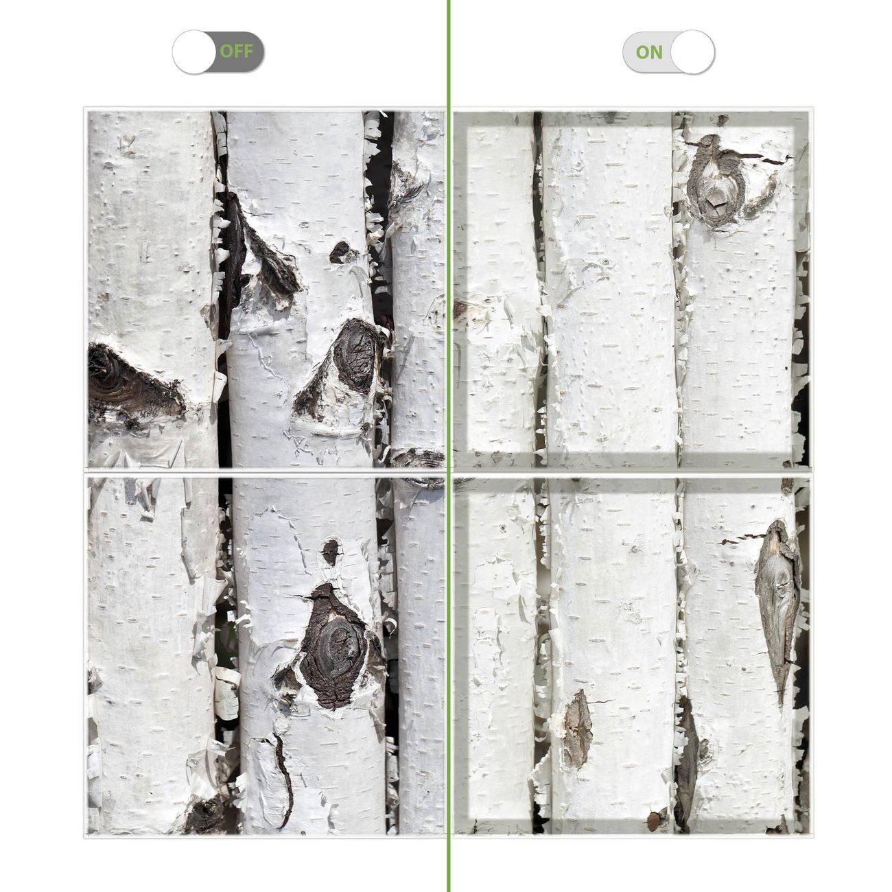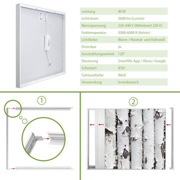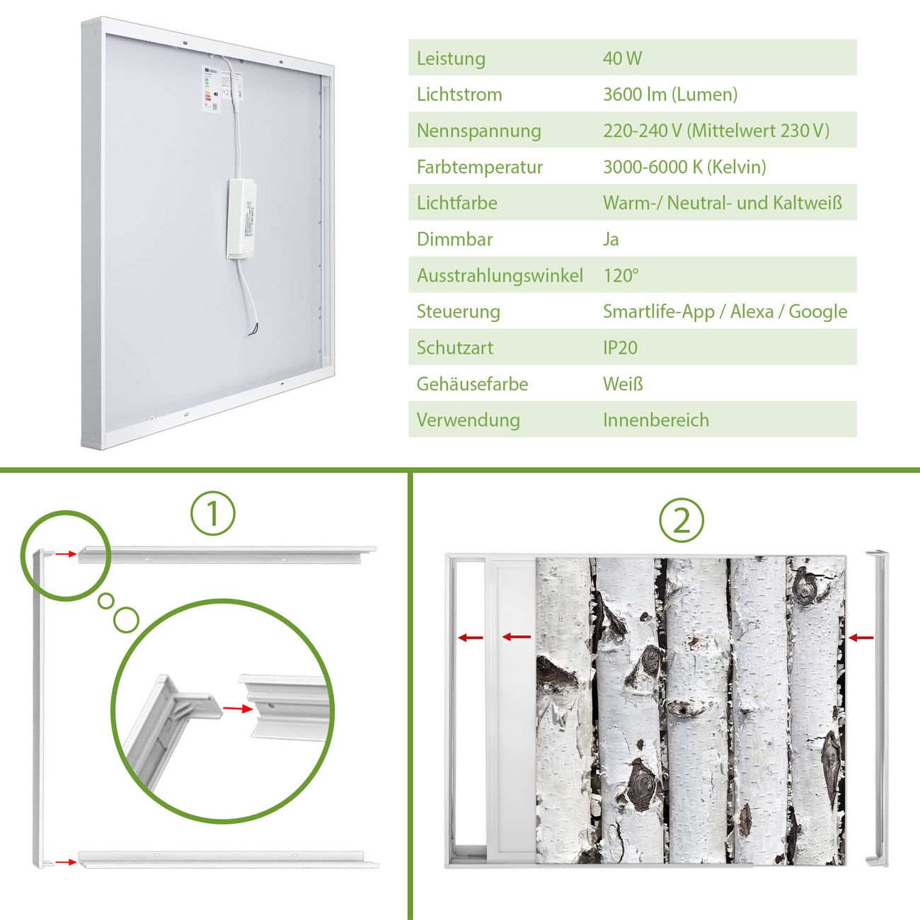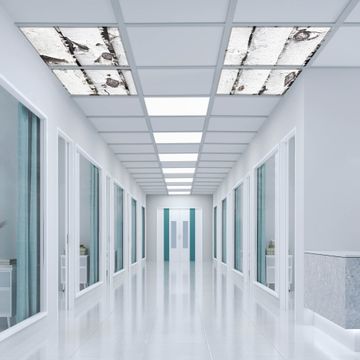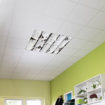 Entdecken Sie unsere vielseitigen Lichtdecken, hier in der Größe 124 x 124cm mit dem Motiv Motiv Birkenrinde - Ihre Beleuchtungslösung für jede Umgebung Beleuchten Sie Ihren Raum nicht nur, sondern schaffen Sie Atmosphäre! Die banjado Lichtdecke verwandelt jeden Ort, ob zu Hause, in Praxen, Büros oder Studios in eine Wohlfühloase. Unsere einzelnen Elemente haben eine genormte Einheitsgröße von 62 x 62cm und können somit in jede gängige Rasterdecken verbaut werden. So finden Sie Ihre passende Ausführung: Gern helfen wir Ihnen, die passende Ausführung zu wählen. Hierfür muss die aktuelle Gegebenheit Ihrer Decke oder Wand beachtet werden. Haben Sie bereits eine Rasterdecke (auch Odenwalddecke genannt)? Hier bestellen Sie lediglich das Motiv + Beleuchtungspanel, denn beides wird in die bereits vorhandene Decke eingelegt. Haben Sie eine glatte Decke mit Lichtauslass oder möchten die Lichtdecke an der Wand befestigen? Hier bestellen Sie bitte Motiv + Beleuchtungspanel + Deckenbefestigung, eine Aufbauanleitung liegt immer bei. Die Lichtdecke kann sowohl an der Decke als auch an der Wand montiert werden, perfekt für kreative Lichtakzente oder alternative Beleuchtungslösungen. Haben Sie bereits eine Lichtdecke und möchten nur das Motiv wechseln? Hier bestellen Sie bitte nur Motiv, der Wechsel ist denkbar einfach. Der Aufbau Ihrer banjado Lichtdecke gestaltet sich unkompliziert, dank einer verständlichen Anleitung, die Ihnen Schritt für Schritt durch den Montageprozess hilft. Für die endgültige Installation und den sicheren Anschluss empfehlen wir die Hinzuziehung eines Fachmanns, um die optimale Funktion und Sicherheit Ihrer Beleuchtung zu gewährleisten. Falls Sie einen Fachmann für die Installation benötigen, geben Sie uns gern Bescheid, wir vermitteln Ihnen gern einen geeigneten Ansprechpartner aus Ihrer Nähe. Steuerung: Steigern Sie Ihr Beleuchtungserlebnis mit der nahtlosen Integration in Ihr Smart Home. Durch die Kompatibilität mit der SmartLife App, Alexa und Google Assistant wird Ihr Smartphone zur zentralen Steuerungseinheit. Ihr Handy fungiert hierbei sozusagen als Fernbedienung. Legen Sie individuelle Lichtszenen in der App fest, die bei Aktivierung über den Wand-Ein-/Ausschalter immer wieder abgerufen werden können ohne Handy. Mit der Szenenfunktion in der Smart App können Sie die Beleuchtung personalisieren und steuern, sodass sie auf Ihre individuellen Bedürfnisse, Tagesrhythmus und Stimmung zugeschnitten ist. Beispielsweise können Sie sich in der Morgendämmerung durch ein sanftes Licht wecken lassen oder das Licht der Praxis werktags um 7 Uhr automatisch einschalten lassen. Dieses kann dann natürlich auch zu einer bestimmten Zeit automatisch ausgeschaltet werden. Motivwahl: Diese einzigartige Lichtdecke zeichnet sich durch ihre Fähigkeit aus, die Lichtfarbe je nach gewähltem Motiv anzupassen - ein Baum wirft ein sanftes grünes Licht, während eine Wolkendecke Ihren Raum in ein beruhigendes blaues Leuchten hüllt. Berücksichtigen Sie dies bitte bei Ihrer Motivauswahl. Sie können das Motiv jederzeit ohne großen Aufwand austauschen, ob nach Jahreszeit oder anderem Anlass, unsere Auswahl lässt kaum Wünsche offen. Wir fertigen Ihnen gern eine personalisierte Lichtdecke mit einem eigenen Motiv oder Logo oder Foto, schreiben Sie uns jederzeit an. Technische Daten: Das Motiv ist auf einer 4mm starken Acrylglas Scheibe aufgebracht, das Gesamtgewicht Ihrer Ausführung beträgt 17,7kg. Die Farbtemperatur lässt sich frei einstellen von 3000 bis 6000 Kelvin, damit können Sie stufenlos zwischen warmweiß, neutralweiß und kaltweiß wählen. Die Gesamtleistung bei Ihrer gewählten Ausführung beträgt 160W. Der Lichtstrom beträgt 3600 Lumen, die Nennspannung 230 V. Die Lichtdecke ist mit Schutzart IP20 für den Innenbereich konzipiert und sollte nicht im Nassbereich verwendet werden.