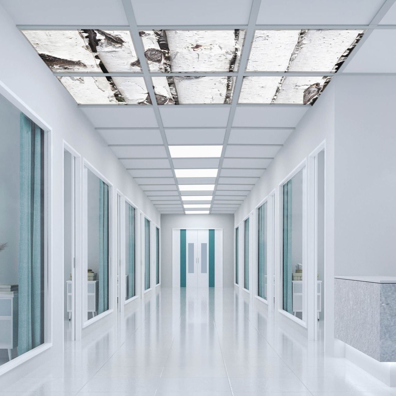 Entdecken Sie unsere vielseitigen Lichtdecken, hier in der Größe 186 x 124cm mit dem Motiv Motiv Birkenrinde - Ihre Beleuchtungslösung für jede Umgebung Beleuchten Sie Ihren Raum nicht nur, sondern schaffen Sie Atmosphäre! Die banjado Lichtdecke verwandelt jeden Ort, ob zu Hause, in Praxen, Büros oder Studios in eine Wohlfühloase. Unsere einzelnen Elemente haben eine genormte Einheitsgröße von 62 x 62cm und können somit in jede gängige Rasterdecken verbaut werden. So finden Sie Ihre passende Ausführung: Gern helfen wir Ihnen, die passende Ausführung zu wählen. Hierfür muss die aktuelle Gegebenheit Ihrer Decke oder Wand beachtet werden. Haben Sie bereits eine Rasterdecke (auch Odenwalddecke genannt)? Hier bestellen Sie lediglich das Motiv + Beleuchtungspanel, denn beides wird in die bereits vorhandene Decke eingelegt. Haben Sie eine glatte Decke mit Lichtauslass oder möchten die Lichtdecke an der Wand befestigen? Hier bestellen Sie bitte Motiv + Beleuchtungspanel + Deckenbefestigung, eine Aufbauanleitung liegt immer bei. Die Lichtdecke kann sowohl an der Decke als auch an der Wand montiert werden, perfekt für kreative Lichtakzente oder alternative Beleuchtungslösungen. Haben Sie bereits eine Lichtdecke und möchten nur das Motiv wechseln? Hier bestellen Sie bitte nur Motiv, der Wechsel ist denkbar einfach. Der Aufbau Ihrer banjado Lichtdecke gestaltet sich unkompliziert, dank einer verständlichen Anleitung, die Ihnen Schritt für Schritt durch den Montageprozess hilft. Für die endgültige Installation und den sicheren Anschluss empfehlen wir die Hinzuziehung eines Fachmanns, um die optimale Funktion und Sicherheit Ihrer Beleuchtung zu gewährleisten. Falls Sie einen Fachmann für die Installation benötigen, geben Sie uns gern Bescheid, wir vermitteln Ihnen gern einen geeigneten Ansprechpartner aus Ihrer Nähe. Steuerung: Steigern Sie Ihr Beleuchtungserlebnis mit der nahtlosen Integration in Ihr Smart Home. Durch die Kompatibilität mit der SmartLife App, Alexa und Google Assistant wird Ihr Smartphone zur zentralen Steuerungseinheit. Ihr Handy fungiert hierbei sozusagen als Fernbedienung. Legen Sie individuelle Lichtszenen in der App fest, die bei Aktivierung über den Wand-Ein-/Ausschalter immer wieder abgerufen werden können ohne Handy. Mit der Szenenfunktion in der Smart App können Sie die Beleuchtung personalisieren und steuern, sodass sie auf Ihre individuellen Bedürfnisse, Tagesrhythmus und Stimmung zugeschnitten ist. Beispielsweise können Sie sich in der Morgendämmerung durch ein sanftes Licht wecken lassen oder das Licht der Praxis werktags um 7 Uhr automatisch einschalten lassen. Dieses kann dann natürlich auch zu einer bestimmten Zeit automatisch ausgeschaltet werden. Motivwahl: Diese einzigartige Lichtdecke zeichnet sich durch ihre Fähigkeit aus, die Lichtfarbe je nach gewähltem Motiv anzupassen - ein Baum wirft ein sanftes grünes Licht, während eine Wolkendecke Ihren Raum in ein beruhigendes blaues Leuchten hüllt. Berücksichtigen Sie dies bitte bei Ihrer Motivauswahl. Sie können das Motiv jederzeit ohne großen Aufwand austauschen, ob nach Jahreszeit oder anderem Anlass, unsere Auswahl lässt kaum Wünsche offen. Wir fertigen Ihnen gern eine personalisierte Lichtdecke mit einem eigenen Motiv oder Logo oder Foto, schreiben Sie uns jederzeit an. Technische Daten: Das Motiv ist auf einer 4mm starken Acrylglas Scheibe aufgebracht, das Gesamtgewicht Ihrer Ausführung beträgt 26,6kg. Die Farbtemperatur lässt sich frei einstellen von 3000 bis 6000 Kelvin, damit können Sie stufenlos zwischen warmweiß, neutralweiß und kaltweiß wählen. Die Gesamtleistung bei Ihrer gewählten Ausführung beträgt 240W. Der Lichtstrom beträgt 3600 Lumen, die Nennspannung 230 V. Die Lichtdecke ist mit Schutzart IP20 für den Innenbereich konzipiert und sollte nicht im Nassbereich verwendet werden.