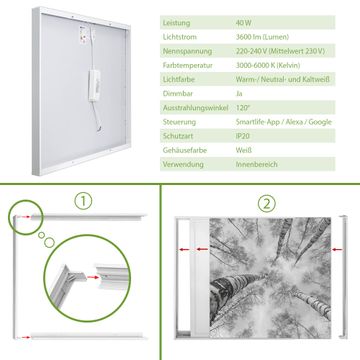 banjado Motivlichtdecke LED Lampe Smart Home verschiedene Größen Motiv Birkenwald