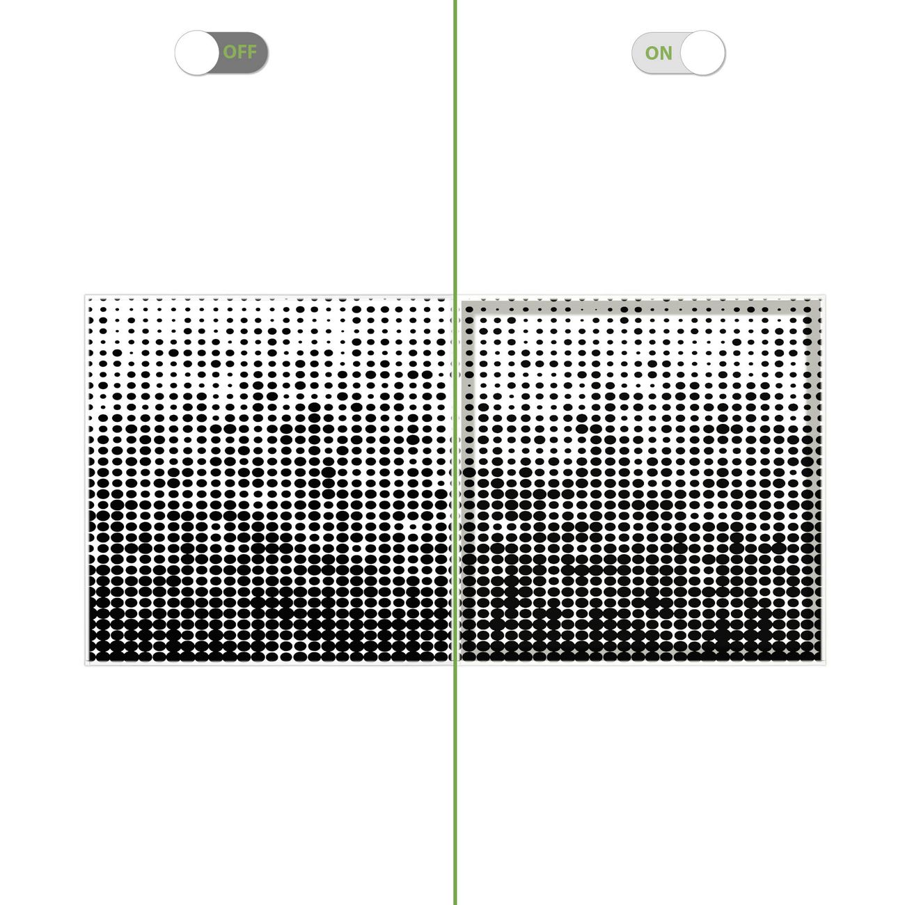 Entdecken Sie unsere vielseitigen Lichtdecken, hier in der Größe 124 x 62cm mit dem Motiv Motiv Black or White - Ihre Beleuchtungslösung für jede Umgebung Beleuchten Sie Ihren Raum nicht nur, sondern schaffen Sie Atmosphäre! Die banjado Lichtdecke verwandelt jeden Ort, ob zu Hause, in Praxen, Büros oder Studios in eine Wohlfühloase. Unsere einzelnen Elemente haben eine genormte Einheitsgröße von 62 x 62cm und können somit in jede gängige Rasterdecken verbaut werden. So finden Sie Ihre passende Ausführung: Gern helfen wir Ihnen, die passende Ausführung zu wählen. Hierfür muss die aktuelle Gegebenheit Ihrer Decke oder Wand beachtet werden. Haben Sie bereits eine Rasterdecke (auch Odenwalddecke genannt)? Hier bestellen Sie lediglich das Motiv + Beleuchtungspanel, denn beides wird in die bereits vorhandene Decke eingelegt. Haben Sie eine glatte Decke mit Lichtauslass oder möchten die Lichtdecke an der Wand befestigen? Hier bestellen Sie bitte Motiv + Beleuchtungspanel + Deckenbefestigung, eine Aufbauanleitung liegt immer bei. Die Lichtdecke kann sowohl an der Decke als auch an der Wand montiert werden, perfekt für kreative Lichtakzente oder alternative Beleuchtungslösungen. Haben Sie bereits eine Lichtdecke und möchten nur das Motiv wechseln? Hier bestellen Sie bitte nur Motiv, der Wechsel ist denkbar einfach. Der Aufbau Ihrer banjado Lichtdecke gestaltet sich unkompliziert, dank einer verständlichen Anleitung, die Ihnen Schritt für Schritt durch den Montageprozess hilft. Für die endgültige Installation und den sicheren Anschluss empfehlen wir die Hinzuziehung eines Fachmanns, um die optimale Funktion und Sicherheit Ihrer Beleuchtung zu gewährleisten. Falls Sie einen Fachmann für die Installation benötigen, geben Sie uns gern Bescheid, wir vermitteln Ihnen gern einen geeigneten Ansprechpartner aus Ihrer Nähe. Steuerung: Steigern Sie Ihr Beleuchtungserlebnis mit der nahtlosen Integration in Ihr Smart Home. Durch die Kompatibilität mit der SmartLife App, Alexa und Google Assistant wird Ihr Smartphone zur zentralen Steuerungseinheit. Ihr Handy fungiert hierbei sozusagen als Fernbedienung. Legen Sie individuelle Lichtszenen in der App fest, die bei Aktivierung über den Wand-Ein-/Ausschalter immer wieder abgerufen werden können ohne Handy. Mit der Szenenfunktion in der Smart App können Sie die Beleuchtung personalisieren und steuern, sodass sie auf Ihre individuellen Bedürfnisse, Tagesrhythmus und Stimmung zugeschnitten ist. Beispielsweise können Sie sich in der Morgendämmerung durch ein sanftes Licht wecken lassen oder das Licht der Praxis werktags um 7 Uhr automatisch einschalten lassen. Dieses kann dann natürlich auch zu einer bestimmten Zeit automatisch ausgeschaltet werden. Motivwahl: Diese einzigartige Lichtdecke zeichnet sich durch ihre Fähigkeit aus, die Lichtfarbe je nach gewähltem Motiv anzupassen - ein Baum wirft ein sanftes grünes Licht, während eine Wolkendecke Ihren Raum in ein beruhigendes blaues Leuchten hüllt. Berücksichtigen Sie dies bitte bei Ihrer Motivauswahl. Sie können das Motiv jederzeit ohne großen Aufwand austauschen, ob nach Jahreszeit oder anderem Anlass, unsere Auswahl lässt kaum Wünsche offen. Wir fertigen Ihnen gern eine personalisierte Lichtdecke mit einem eigenen Motiv oder Logo oder Foto, schreiben Sie uns jederzeit an. Technische Daten: Das Motiv ist auf einer 4mm starken Acrylglas Scheibe aufgebracht, das Gesamtgewicht Ihrer Ausführung beträgt 4,5kg. Die Farbtemperatur lässt sich frei einstellen von 3000 bis 6000 Kelvin, damit können Sie stufenlos zwischen warmweiß, neutralweiß und kaltweiß wählen. Die Gesamtleistung bei Ihrer gewählten Ausführung beträgt 80W. Der Lichtstrom beträgt 3600 Lumen, die Nennspannung 230 V. Die Lichtdecke ist mit Schutzart IP20 für den Innenbereich konzipiert und sollte nicht im Nassbereich verwendet werden.
