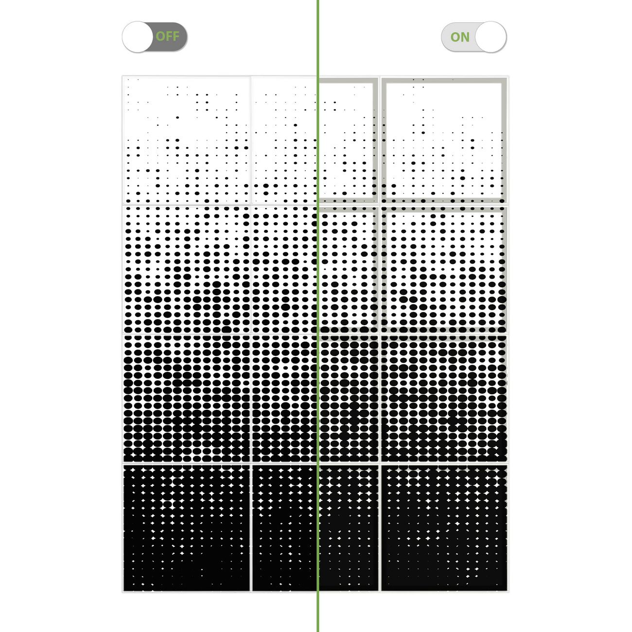 Entdecken Sie unsere vielseitigen Lichtdecken, hier in der Größe 186 x 248cm mit dem Motiv Motiv Black or White - Ihre Beleuchtungslösung für jede Umgebung Beleuchten Sie Ihren Raum nicht nur, sondern schaffen Sie Atmosphäre! Die banjado Lichtdecke verwandelt jeden Ort, ob zu Hause, in Praxen, Büros oder Studios in eine Wohlfühloase. Unsere einzelnen Elemente haben eine genormte Einheitsgröße von 62 x 62cm und können somit in jede gängige Rasterdecken verbaut werden. So finden Sie Ihre passende Ausführung: Gern helfen wir Ihnen, die passende Ausführung zu wählen. Hierfür muss die aktuelle Gegebenheit Ihrer Decke oder Wand beachtet werden. Haben Sie bereits eine Rasterdecke (auch Odenwalddecke genannt)? Hier bestellen Sie lediglich das Motiv + Beleuchtungspanel, denn beides wird in die bereits vorhandene Decke eingelegt. Haben Sie eine glatte Decke mit Lichtauslass oder möchten die Lichtdecke an der Wand befestigen? Hier bestellen Sie bitte Motiv + Beleuchtungspanel + Deckenbefestigung, eine Aufbauanleitung liegt immer bei. Die Lichtdecke kann sowohl an der Decke als auch an der Wand montiert werden, perfekt für kreative Lichtakzente oder alternative Beleuchtungslösungen. Haben Sie bereits eine Lichtdecke und möchten nur das Motiv wechseln? Hier bestellen Sie bitte nur Motiv, der Wechsel ist denkbar einfach. Der Aufbau Ihrer banjado Lichtdecke gestaltet sich unkompliziert, dank einer verständlichen Anleitung, die Ihnen Schritt für Schritt durch den Montageprozess hilft. Für die endgültige Installation und den sicheren Anschluss empfehlen wir die Hinzuziehung eines Fachmanns, um die optimale Funktion und Sicherheit Ihrer Beleuchtung zu gewährleisten. Falls Sie einen Fachmann für die Installation benötigen, geben Sie uns gern Bescheid, wir vermitteln Ihnen gern einen geeigneten Ansprechpartner aus Ihrer Nähe. Steuerung: Steigern Sie Ihr Beleuchtungserlebnis mit der nahtlosen Integration in Ihr Smart Home. Durch die Kompatibilität mit der SmartLife App, Alexa und Google Assistant wird Ihr Smartphone zur zentralen Steuerungseinheit. Ihr Handy fungiert hierbei sozusagen als Fernbedienung. Legen Sie individuelle Lichtszenen in der App fest, die bei Aktivierung über den Wand-Ein-/Ausschalter immer wieder abgerufen werden können ohne Handy. Mit der Szenenfunktion in der Smart App können Sie die Beleuchtung personalisieren und steuern, sodass sie auf Ihre individuellen Bedürfnisse, Tagesrhythmus und Stimmung zugeschnitten ist. Beispielsweise können Sie sich in der Morgendämmerung durch ein sanftes Licht wecken lassen oder das Licht der Praxis werktags um 7 Uhr automatisch einschalten lassen. Dieses kann dann natürlich auch zu einer bestimmten Zeit automatisch ausgeschaltet werden. Motivwahl: Diese einzigartige Lichtdecke zeichnet sich durch ihre Fähigkeit aus, die Lichtfarbe je nach gewähltem Motiv anzupassen - ein Baum wirft ein sanftes grünes Licht, während eine Wolkendecke Ihren Raum in ein beruhigendes blaues Leuchten hüllt. Berücksichtigen Sie dies bitte bei Ihrer Motivauswahl. Sie können das Motiv jederzeit ohne großen Aufwand austauschen, ob nach Jahreszeit oder anderem Anlass, unsere Auswahl lässt kaum Wünsche offen. Wir fertigen Ihnen gern eine personalisierte Lichtdecke mit einem eigenen Motiv oder Logo oder Foto, schreiben Sie uns jederzeit an. Technische Daten: Das Motiv ist auf einer 4mm starken Acrylglas Scheibe aufgebracht, das Gesamtgewicht Ihrer Ausführung beträgt 59,1kg. Die Farbtemperatur lässt sich frei einstellen von 3000 bis 6000 Kelvin, damit können Sie stufenlos zwischen warmweiß, neutralweiß und kaltweiß wählen. Die Gesamtleistung bei Ihrer gewählten Ausführung beträgt 480W. Der Lichtstrom beträgt 3600 Lumen, die Nennspannung 230 V. Die Lichtdecke ist mit Schutzart IP20 für den Innenbereich konzipiert und sollte nicht im Nassbereich verwendet werden.