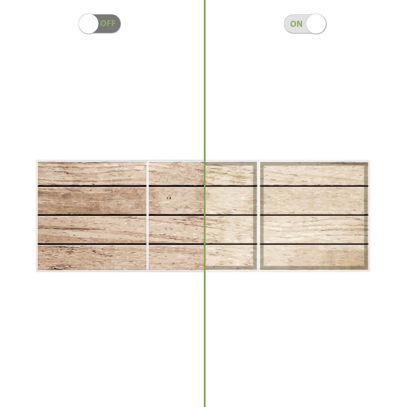 Entdecken Sie unsere vielseitigen Lichtdecken, hier in der Größe 186 x 62cm mit dem Motiv Motiv Blasse Holzlatten - Ihre Beleuchtungslösung für jede Umgebung Beleuchten Sie Ihren Raum nicht nur, sondern schaffen Sie Atmosphäre! Die banjado Lichtdecke verwandelt jeden Ort, ob zu Hause, in Praxen, Büros oder Studios in eine Wohlfühloase. Unsere einzelnen Elemente haben eine genormte Einheitsgröße von 62 x 62cm und können somit in jede gängige Rasterdecken verbaut werden. So finden Sie Ihre passende Ausführung: Gern helfen wir Ihnen, die passende Ausführung zu wählen. Hierfür muss die aktuelle Gegebenheit Ihrer Decke oder Wand beachtet werden. Haben Sie bereits eine Rasterdecke (auch Odenwalddecke genannt)? Hier bestellen Sie lediglich das Motiv + Beleuchtungspanel, denn beides wird in die bereits vorhandene Decke eingelegt. Haben Sie eine glatte Decke mit Lichtauslass oder möchten die Lichtdecke an der Wand befestigen? Hier bestellen Sie bitte Motiv + Beleuchtungspanel + Deckenbefestigung, eine Aufbauanleitung liegt immer bei. Die Lichtdecke kann sowohl an der Decke als auch an der Wand montiert werden, perfekt für kreative Lichtakzente oder alternative Beleuchtungslösungen. Haben Sie bereits eine Lichtdecke und möchten nur das Motiv wechseln? Hier bestellen Sie bitte nur Motiv, der Wechsel ist denkbar einfach. Der Aufbau Ihrer banjado Lichtdecke gestaltet sich unkompliziert, dank einer verständlichen Anleitung, die Ihnen Schritt für Schritt durch den Montageprozess hilft. Für die endgültige Installation und den sicheren Anschluss empfehlen wir die Hinzuziehung eines Fachmanns, um die optimale Funktion und Sicherheit Ihrer Beleuchtung zu gewährleisten. Falls Sie einen Fachmann für die Installation benötigen, geben Sie uns gern Bescheid, wir vermitteln Ihnen gern einen geeigneten Ansprechpartner aus Ihrer Nähe. Steuerung: Steigern Sie Ihr Beleuchtungserlebnis mit der nahtlosen Integration in Ihr Smart Home. Durch die Kompatibilität mit der SmartLife App, Alexa und Google Assistant wird Ihr Smartphone zur zentralen Steuerungseinheit. Ihr Handy fungiert hierbei sozusagen als Fernbedienung. Legen Sie individuelle Lichtszenen in der App fest, die bei Aktivierung über den Wand-Ein-/Ausschalter immer wieder abgerufen werden können ohne Handy. Mit der Szenenfunktion in der Smart App können Sie die Beleuchtung personalisieren und steuern, sodass sie auf Ihre individuellen Bedürfnisse, Tagesrhythmus und Stimmung zugeschnitten ist. Beispielsweise können Sie sich in der Morgendämmerung durch ein sanftes Licht wecken lassen oder das Licht der Praxis werktags um 7 Uhr automatisch einschalten lassen. Dieses kann dann natürlich auch zu einer bestimmten Zeit automatisch ausgeschaltet werden. Motivwahl: Diese einzigartige Lichtdecke zeichnet sich durch ihre Fähigkeit aus, die Lichtfarbe je nach gewähltem Motiv anzupassen - ein Baum wirft ein sanftes grünes Licht, während eine Wolkendecke Ihren Raum in ein beruhigendes blaues Leuchten hüllt. Berücksichtigen Sie dies bitte bei Ihrer Motivauswahl. Sie können das Motiv jederzeit ohne großen Aufwand austauschen, ob nach Jahreszeit oder anderem Anlass, unsere Auswahl lässt kaum Wünsche offen. Wir fertigen Ihnen gern eine personalisierte Lichtdecke mit einem eigenen Motiv oder Logo oder Foto, schreiben Sie uns jederzeit an. Technische Daten: Das Motiv ist auf einer 4mm starken Acrylglas Scheibe aufgebracht, das Gesamtgewicht Ihrer Ausführung beträgt 13,3kg. Die Farbtemperatur lässt sich frei einstellen von 3000 bis 6000 Kelvin, damit können Sie stufenlos zwischen warmweiß, neutralweiß und kaltweiß wählen. Die Gesamtleistung bei Ihrer gewählten Ausführung beträgt 120W. Der Lichtstrom beträgt 3600 Lumen, die Nennspannung 230 V. Die Lichtdecke ist mit Schutzart IP20 für den Innenbereich konzipiert und sollte nicht im Nassbereich verwendet werden.