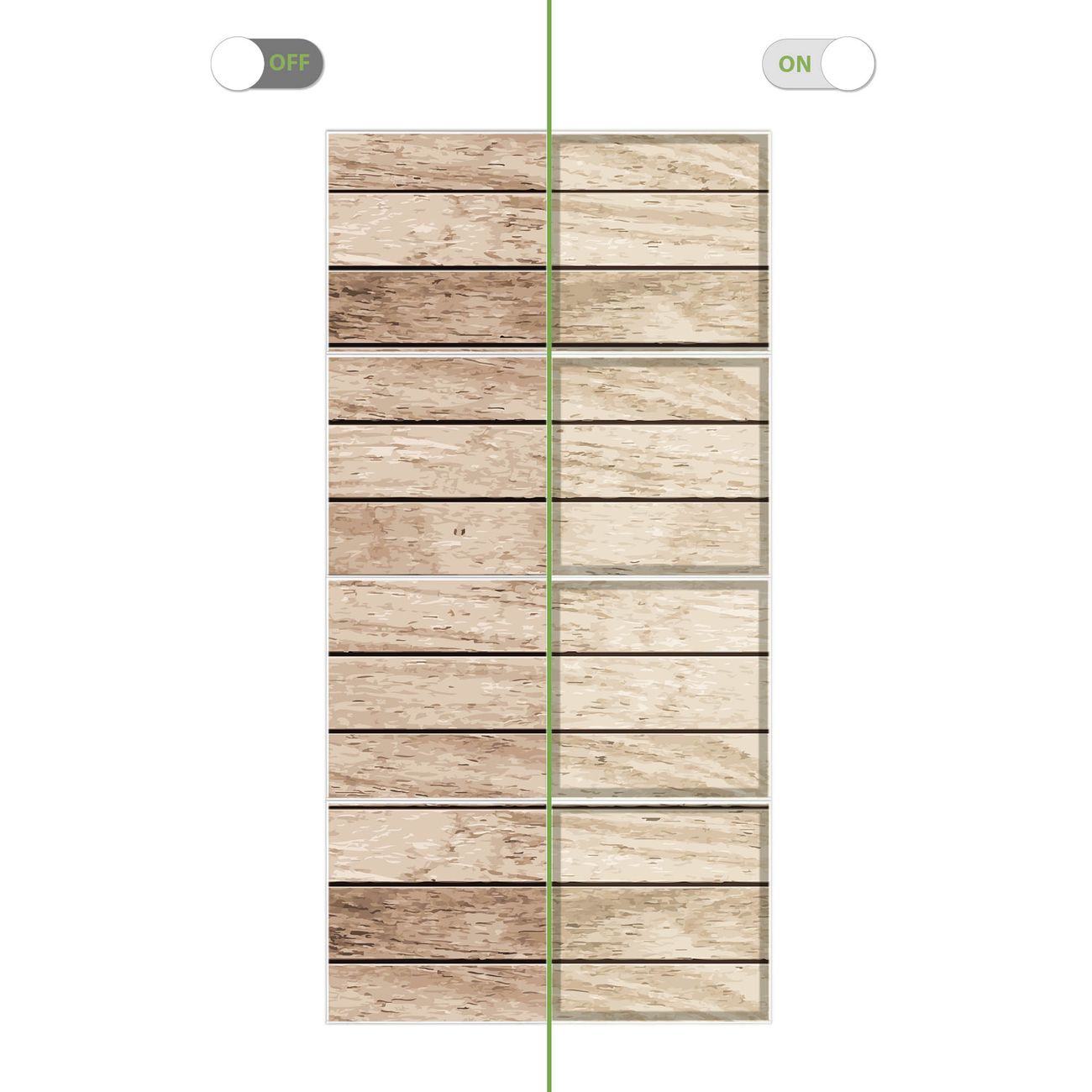 Entdecken Sie unsere vielseitigen Lichtdecken, hier in der Größe 124 x 248cm mit dem Motiv Motiv Blasse Holzlatten - Ihre Beleuchtungslösung für jede Umgebung Beleuchten Sie Ihren Raum nicht nur, sondern schaffen Sie Atmosphäre! Die banjado Lichtdecke verwandelt jeden Ort, ob zu Hause, in Praxen, Büros oder Studios in eine Wohlfühloase. Unsere einzelnen Elemente haben eine genormte Einheitsgröße von 62 x 62cm und können somit in jede gängige Rasterdecken verbaut werden. So finden Sie Ihre passende Ausführung: Gern helfen wir Ihnen, die passende Ausführung zu wählen. Hierfür muss die aktuelle Gegebenheit Ihrer Decke oder Wand beachtet werden. Haben Sie bereits eine Rasterdecke (auch Odenwalddecke genannt)? Hier bestellen Sie lediglich das Motiv + Beleuchtungspanel, denn beides wird in die bereits vorhandene Decke eingelegt. Haben Sie eine glatte Decke mit Lichtauslass oder möchten die Lichtdecke an der Wand befestigen? Hier bestellen Sie bitte Motiv + Beleuchtungspanel + Deckenbefestigung, eine Aufbauanleitung liegt immer bei. Die Lichtdecke kann sowohl an der Decke als auch an der Wand montiert werden, perfekt für kreative Lichtakzente oder alternative Beleuchtungslösungen. Haben Sie bereits eine Lichtdecke und möchten nur das Motiv wechseln? Hier bestellen Sie bitte nur Motiv, der Wechsel ist denkbar einfach. Der Aufbau Ihrer banjado Lichtdecke gestaltet sich unkompliziert, dank einer verständlichen Anleitung, die Ihnen Schritt für Schritt durch den Montageprozess hilft. Für die endgültige Installation und den sicheren Anschluss empfehlen wir die Hinzuziehung eines Fachmanns, um die optimale Funktion und Sicherheit Ihrer Beleuchtung zu gewährleisten. Falls Sie einen Fachmann für die Installation benötigen, geben Sie uns gern Bescheid, wir vermitteln Ihnen gern einen geeigneten Ansprechpartner aus Ihrer Nähe. Steuerung: Steigern Sie Ihr Beleuchtungserlebnis mit der nahtlosen Integration in Ihr Smart Home. Durch die Kompatibilität mit der SmartLife App, Alexa und Google Assistant wird Ihr Smartphone zur zentralen Steuerungseinheit. Ihr Handy fungiert hierbei sozusagen als Fernbedienung. Legen Sie individuelle Lichtszenen in der App fest, die bei Aktivierung über den Wand-Ein-/Ausschalter immer wieder abgerufen werden können ohne Handy. Mit der Szenenfunktion in der Smart App können Sie die Beleuchtung personalisieren und steuern, sodass sie auf Ihre individuellen Bedürfnisse, Tagesrhythmus und Stimmung zugeschnitten ist. Beispielsweise können Sie sich in der Morgendämmerung durch ein sanftes Licht wecken lassen oder das Licht der Praxis werktags um 7 Uhr automatisch einschalten lassen. Dieses kann dann natürlich auch zu einer bestimmten Zeit automatisch ausgeschaltet werden. Motivwahl: Diese einzigartige Lichtdecke zeichnet sich durch ihre Fähigkeit aus, die Lichtfarbe je nach gewähltem Motiv anzupassen - ein Baum wirft ein sanftes grünes Licht, während eine Wolkendecke Ihren Raum in ein beruhigendes blaues Leuchten hüllt. Berücksichtigen Sie dies bitte bei Ihrer Motivauswahl. Sie können das Motiv jederzeit ohne großen Aufwand austauschen, ob nach Jahreszeit oder anderem Anlass, unsere Auswahl lässt kaum Wünsche offen. Wir fertigen Ihnen gern eine personalisierte Lichtdecke mit einem eigenen Motiv oder Logo oder Foto, schreiben Sie uns jederzeit an. Technische Daten: Das Motiv ist auf einer 4mm starken Acrylglas Scheibe aufgebracht, das Gesamtgewicht Ihrer Ausführung beträgt 35,4kg. Die Farbtemperatur lässt sich frei einstellen von 3000 bis 6000 Kelvin, damit können Sie stufenlos zwischen warmweiß, neutralweiß und kaltweiß wählen. Die Gesamtleistung bei Ihrer gewählten Ausführung beträgt 320W. Der Lichtstrom beträgt 3600 Lumen, die Nennspannung 230 V. Die Lichtdecke ist mit Schutzart IP20 für den Innenbereich konzipiert und sollte nicht im Nassbereich verwendet werden.