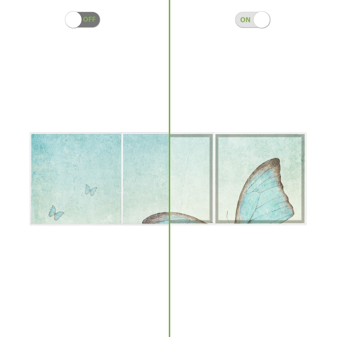 Entdecken Sie unsere vielseitigen Lichtdecken, hier in der Größe 186 x 62cm mit dem Motiv Motiv Blaue Schmetterlinge - Ihre Beleuchtungslösung für jede Umgebung Beleuchten Sie Ihren Raum nicht nur, sondern schaffen Sie Atmosphäre! Die banjado Lichtdecke verwandelt jeden Ort, ob zu Hause, in Praxen, Büros oder Studios in eine Wohlfühloase. Unsere einzelnen Elemente haben eine genormte Einheitsgröße von 62 x 62cm und können somit in jede gängige Rasterdecken verbaut werden. So finden Sie Ihre passende Ausführung: Gern helfen wir Ihnen, die passende Ausführung zu wählen. Hierfür muss die aktuelle Gegebenheit Ihrer Decke oder Wand beachtet werden. Haben Sie bereits eine Rasterdecke (auch Odenwalddecke genannt)? Hier bestellen Sie lediglich das Motiv + Beleuchtungspanel, denn beides wird in die bereits vorhandene Decke eingelegt. Haben Sie eine glatte Decke mit Lichtauslass oder möchten die Lichtdecke an der Wand befestigen? Hier bestellen Sie bitte Motiv + Beleuchtungspanel + Deckenbefestigung, eine Aufbauanleitung liegt immer bei. Die Lichtdecke kann sowohl an der Decke als auch an der Wand montiert werden, perfekt für kreative Lichtakzente oder alternative Beleuchtungslösungen. Haben Sie bereits eine Lichtdecke und möchten nur das Motiv wechseln? Hier bestellen Sie bitte nur Motiv, der Wechsel ist denkbar einfach. Der Aufbau Ihrer banjado Lichtdecke gestaltet sich unkompliziert, dank einer verständlichen Anleitung, die Ihnen Schritt für Schritt durch den Montageprozess hilft. Für die endgültige Installation und den sicheren Anschluss empfehlen wir die Hinzuziehung eines Fachmanns, um die optimale Funktion und Sicherheit Ihrer Beleuchtung zu gewährleisten. Falls Sie einen Fachmann für die Installation benötigen, geben Sie uns gern Bescheid, wir vermitteln Ihnen gern einen geeigneten Ansprechpartner aus Ihrer Nähe. Steuerung: Steigern Sie Ihr Beleuchtungserlebnis mit der nahtlosen Integration in Ihr Smart Home. Durch die Kompatibilität mit der SmartLife App, Alexa und Google Assistant wird Ihr Smartphone zur zentralen Steuerungseinheit. Ihr Handy fungiert hierbei sozusagen als Fernbedienung. Legen Sie individuelle Lichtszenen in der App fest, die bei Aktivierung über den Wand-Ein-/Ausschalter immer wieder abgerufen werden können ohne Handy. Mit der Szenenfunktion in der Smart App können Sie die Beleuchtung personalisieren und steuern, sodass sie auf Ihre individuellen Bedürfnisse, Tagesrhythmus und Stimmung zugeschnitten ist. Beispielsweise können Sie sich in der Morgendämmerung durch ein sanftes Licht wecken lassen oder das Licht der Praxis werktags um 7 Uhr automatisch einschalten lassen. Dieses kann dann natürlich auch zu einer bestimmten Zeit automatisch ausgeschaltet werden. Motivwahl: Diese einzigartige Lichtdecke zeichnet sich durch ihre Fähigkeit aus, die Lichtfarbe je nach gewähltem Motiv anzupassen - ein Baum wirft ein sanftes grünes Licht, während eine Wolkendecke Ihren Raum in ein beruhigendes blaues Leuchten hüllt. Berücksichtigen Sie dies bitte bei Ihrer Motivauswahl. Sie können das Motiv jederzeit ohne großen Aufwand austauschen, ob nach Jahreszeit oder anderem Anlass, unsere Auswahl lässt kaum Wünsche offen. Wir fertigen Ihnen gern eine personalisierte Lichtdecke mit einem eigenen Motiv oder Logo oder Foto, schreiben Sie uns jederzeit an. Technische Daten: Das Motiv ist auf einer 4mm starken Acrylglas Scheibe aufgebracht, das Gesamtgewicht Ihrer Ausführung beträgt 14,8kg. Die Farbtemperatur lässt sich frei einstellen von 3000 bis 6000 Kelvin, damit können Sie stufenlos zwischen warmweiß, neutralweiß und kaltweiß wählen. Die Gesamtleistung bei Ihrer gewählten Ausführung beträgt 120W. Der Lichtstrom beträgt 3600 Lumen, die Nennspannung 230 V. Die Lichtdecke ist mit Schutzart IP20 für den Innenbereich konzipiert und sollte nicht im Nassbereich verwendet werden.