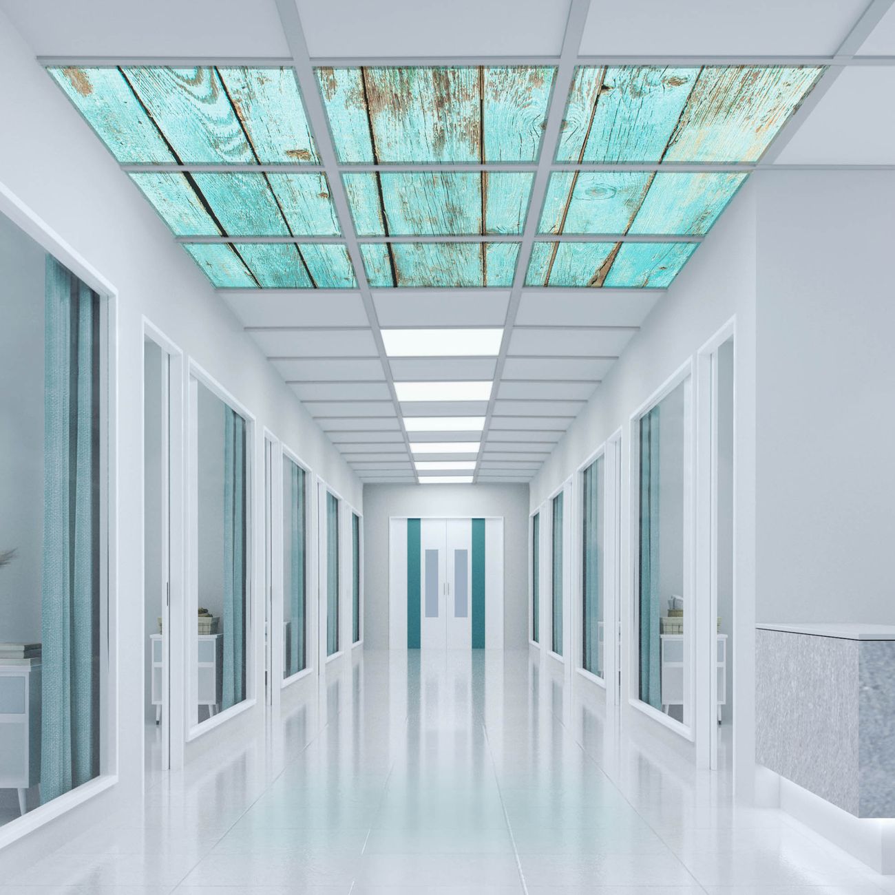 Entdecken Sie unsere vielseitigen Lichtdecken, hier in der Größe 186 x 186cm mit dem Motiv Motiv Blaues Holz - Ihre Beleuchtungslösung für jede Umgebung Beleuchten Sie Ihren Raum nicht nur, sondern schaffen Sie Atmosphäre! Die banjado Lichtdecke verwandelt jeden Ort, ob zu Hause, in Praxen, Büros oder Studios in eine Wohlfühloase. Unsere einzelnen Elemente haben eine genormte Einheitsgröße von 62 x 62cm und können somit in jede gängige Rasterdecken verbaut werden. So finden Sie Ihre passende Ausführung: Gern helfen wir Ihnen, die passende Ausführung zu wählen. Hierfür muss die aktuelle Gegebenheit Ihrer Decke oder Wand beachtet werden. Haben Sie bereits eine Rasterdecke (auch Odenwalddecke genannt)? Hier bestellen Sie lediglich das Motiv + Beleuchtungspanel, denn beides wird in die bereits vorhandene Decke eingelegt. Haben Sie eine glatte Decke mit Lichtauslass oder möchten die Lichtdecke an der Wand befestigen? Hier bestellen Sie bitte Motiv + Beleuchtungspanel + Deckenbefestigung, eine Aufbauanleitung liegt immer bei. Die Lichtdecke kann sowohl an der Decke als auch an der Wand montiert werden, perfekt für kreative Lichtakzente oder alternative Beleuchtungslösungen. Haben Sie bereits eine Lichtdecke und möchten nur das Motiv wechseln? Hier bestellen Sie bitte nur Motiv, der Wechsel ist denkbar einfach. Der Aufbau Ihrer banjado Lichtdecke gestaltet sich unkompliziert, dank einer verständlichen Anleitung, die Ihnen Schritt für Schritt durch den Montageprozess hilft. Für die endgültige Installation und den sicheren Anschluss empfehlen wir die Hinzuziehung eines Fachmanns, um die optimale Funktion und Sicherheit Ihrer Beleuchtung zu gewährleisten. Falls Sie einen Fachmann für die Installation benötigen, geben Sie uns gern Bescheid, wir vermitteln Ihnen gern einen geeigneten Ansprechpartner aus Ihrer Nähe. Steuerung: Steigern Sie Ihr Beleuchtungserlebnis mit der nahtlosen Integration in Ihr Smart Home. Durch die Kompatibilität mit der SmartLife App, Alexa und Google Assistant wird Ihr Smartphone zur zentralen Steuerungseinheit. Ihr Handy fungiert hierbei sozusagen als Fernbedienung. Legen Sie individuelle Lichtszenen in der App fest, die bei Aktivierung über den Wand-Ein-/Ausschalter immer wieder abgerufen werden können ohne Handy. Mit der Szenenfunktion in der Smart App können Sie die Beleuchtung personalisieren und steuern, sodass sie auf Ihre individuellen Bedürfnisse, Tagesrhythmus und Stimmung zugeschnitten ist. Beispielsweise können Sie sich in der Morgendämmerung durch ein sanftes Licht wecken lassen oder das Licht der Praxis werktags um 7 Uhr automatisch einschalten lassen. Dieses kann dann natürlich auch zu einer bestimmten Zeit automatisch ausgeschaltet werden. Motivwahl: Diese einzigartige Lichtdecke zeichnet sich durch ihre Fähigkeit aus, die Lichtfarbe je nach gewähltem Motiv anzupassen - ein Baum wirft ein sanftes grünes Licht, während eine Wolkendecke Ihren Raum in ein beruhigendes blaues Leuchten hüllt. Berücksichtigen Sie dies bitte bei Ihrer Motivauswahl. Sie können das Motiv jederzeit ohne großen Aufwand austauschen, ob nach Jahreszeit oder anderem Anlass, unsere Auswahl lässt kaum Wünsche offen. Wir fertigen Ihnen gern eine personalisierte Lichtdecke mit einem eigenen Motiv oder Logo oder Foto, schreiben Sie uns jederzeit an. Technische Daten: Das Motiv ist auf einer 4mm starken Acrylglas Scheibe aufgebracht, das Gesamtgewicht Ihrer Ausführung beträgt 39,9kg. Die Farbtemperatur lässt sich frei einstellen von 3000 bis 6000 Kelvin, damit können Sie stufenlos zwischen warmweiß, neutralweiß und kaltweiß wählen. Die Gesamtleistung bei Ihrer gewählten Ausführung beträgt 360W. Der Lichtstrom beträgt 3600 Lumen, die Nennspannung 230 V. Die Lichtdecke ist mit Schutzart IP20 für den Innenbereich konzipiert und sollte nicht im Nassbereich verwendet werden.