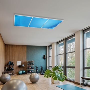 Entdecken Sie unsere vielseitigen Lichtdecken, hier in der Größe 186 x 62cm mit dem Motiv Motiv Blaues Licht - Ihre Beleuchtungslösung für jede Umgebung Beleuchten Sie Ihren Raum nicht nur, sondern schaffen Sie Atmosphäre! Die banjado Lichtdecke verwandelt jeden Ort, ob zu Hause, in Praxen, Büros oder Studios in eine Wohlfühloase. Unsere einzelnen Elemente haben eine genormte Einheitsgröße von 62 x 62cm und können somit in jede gängige Rasterdecken verbaut werden. So finden Sie Ihre passende Ausführung: Gern helfen wir Ihnen, die passende Ausführung zu wählen. Hierfür muss die aktuelle Gegebenheit Ihrer Decke oder Wand beachtet werden. Haben Sie bereits eine Rasterdecke (auch Odenwalddecke genannt)? Hier bestellen Sie lediglich das Motiv + Beleuchtungspanel, denn beides wird in die bereits vorhandene Decke eingelegt. Haben Sie eine glatte Decke mit Lichtauslass oder möchten die Lichtdecke an der Wand befestigen? Hier bestellen Sie bitte Motiv + Beleuchtungspanel + Deckenbefestigung, eine Aufbauanleitung liegt immer bei. Die Lichtdecke kann sowohl an der Decke als auch an der Wand montiert werden, perfekt für kreative Lichtakzente oder alternative Beleuchtungslösungen. Haben Sie bereits eine Lichtdecke und möchten nur das Motiv wechseln? Hier bestellen Sie bitte nur Motiv, der Wechsel ist denkbar einfach. Der Aufbau Ihrer banjado Lichtdecke gestaltet sich unkompliziert, dank einer verständlichen Anleitung, die Ihnen Schritt für Schritt durch den Montageprozess hilft. Für die endgültige Installation und den sicheren Anschluss empfehlen wir die Hinzuziehung eines Fachmanns, um die optimale Funktion und Sicherheit Ihrer Beleuchtung zu gewährleisten. Falls Sie einen Fachmann für die Installation benötigen, geben Sie uns gern Bescheid, wir vermitteln Ihnen gern einen geeigneten Ansprechpartner aus Ihrer Nähe. Steuerung: Steigern Sie Ihr Beleuchtungserlebnis mit der nahtlosen Integration in Ihr Smart Home. Durch die Kompatibilität mit der SmartLife App, Alexa und Google Assistant wird Ihr Smartphone zur zentralen Steuerungseinheit. Ihr Handy fungiert hierbei sozusagen als Fernbedienung. Legen Sie individuelle Lichtszenen in der App fest, die bei Aktivierung über den Wand-Ein-/Ausschalter immer wieder abgerufen werden können ohne Handy. Mit der Szenenfunktion in der Smart App können Sie die Beleuchtung personalisieren und steuern, sodass sie auf Ihre individuellen Bedürfnisse, Tagesrhythmus und Stimmung zugeschnitten ist. Beispielsweise können Sie sich in der Morgendämmerung durch ein sanftes Licht wecken lassen oder das Licht der Praxis werktags um 7 Uhr automatisch einschalten lassen. Dieses kann dann natürlich auch zu einer bestimmten Zeit automatisch ausgeschaltet werden. Motivwahl: Diese einzigartige Lichtdecke zeichnet sich durch ihre Fähigkeit aus, die Lichtfarbe je nach gewähltem Motiv anzupassen - ein Baum wirft ein sanftes grünes Licht, während eine Wolkendecke Ihren Raum in ein beruhigendes blaues Leuchten hüllt. Berücksichtigen Sie dies bitte bei Ihrer Motivauswahl. Sie können das Motiv jederzeit ohne großen Aufwand austauschen, ob nach Jahreszeit oder anderem Anlass, unsere Auswahl lässt kaum Wünsche offen. Wir fertigen Ihnen gern eine personalisierte Lichtdecke mit einem eigenen Motiv oder Logo oder Foto, schreiben Sie uns jederzeit an. Technische Daten: Das Motiv ist auf einer 4mm starken Acrylglas Scheibe aufgebracht, das Gesamtgewicht Ihrer Ausführung beträgt 14,8kg. Die Farbtemperatur lässt sich frei einstellen von 3000 bis 6000 Kelvin, damit können Sie stufenlos zwischen warmweiß, neutralweiß und kaltweiß wählen. Die Gesamtleistung bei Ihrer gewählten Ausführung beträgt 120W. Der Lichtstrom beträgt 3600 Lumen, die Nennspannung 230 V. Die Lichtdecke ist mit Schutzart IP20 für den Innenbereich konzipiert und sollte nicht im Nassbereich verwendet werden.