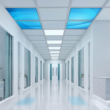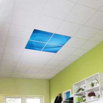 Entdecken Sie unsere vielseitigen Lichtdecken, hier in der Größe 124 x 124cm mit dem Motiv Motiv Blaues Licht - Ihre Beleuchtungslösung für jede Umgebung Beleuchten Sie Ihren Raum nicht nur, sondern schaffen Sie Atmosphäre! Die banjado Lichtdecke verwandelt jeden Ort, ob zu Hause, in Praxen, Büros oder Studios in eine Wohlfühloase. Unsere einzelnen Elemente haben eine genormte Einheitsgröße von 62 x 62cm und können somit in jede gängige Rasterdecken verbaut werden. So finden Sie Ihre passende Ausführung: Gern helfen wir Ihnen, die passende Ausführung zu wählen. Hierfür muss die aktuelle Gegebenheit Ihrer Decke oder Wand beachtet werden. Haben Sie bereits eine Rasterdecke (auch Odenwalddecke genannt)? Hier bestellen Sie lediglich das Motiv + Beleuchtungspanel, denn beides wird in die bereits vorhandene Decke eingelegt. Haben Sie eine glatte Decke mit Lichtauslass oder möchten die Lichtdecke an der Wand befestigen? Hier bestellen Sie bitte Motiv + Beleuchtungspanel + Deckenbefestigung, eine Aufbauanleitung liegt immer bei. Die Lichtdecke kann sowohl an der Decke als auch an der Wand montiert werden, perfekt für kreative Lichtakzente oder alternative Beleuchtungslösungen. Haben Sie bereits eine Lichtdecke und möchten nur das Motiv wechseln? Hier bestellen Sie bitte nur Motiv, der Wechsel ist denkbar einfach. Der Aufbau Ihrer banjado Lichtdecke gestaltet sich unkompliziert, dank einer verständlichen Anleitung, die Ihnen Schritt für Schritt durch den Montageprozess hilft. Für die endgültige Installation und den sicheren Anschluss empfehlen wir die Hinzuziehung eines Fachmanns, um die optimale Funktion und Sicherheit Ihrer Beleuchtung zu gewährleisten. Falls Sie einen Fachmann für die Installation benötigen, geben Sie uns gern Bescheid, wir vermitteln Ihnen gern einen geeigneten Ansprechpartner aus Ihrer Nähe. Steuerung: Steigern Sie Ihr Beleuchtungserlebnis mit der nahtlosen Integration in Ihr Smart Home. Durch die Kompatibilität mit der SmartLife App, Alexa und Google Assistant wird Ihr Smartphone zur zentralen Steuerungseinheit. Ihr Handy fungiert hierbei sozusagen als Fernbedienung. Legen Sie individuelle Lichtszenen in der App fest, die bei Aktivierung über den Wand-Ein-/Ausschalter immer wieder abgerufen werden können ohne Handy. Mit der Szenenfunktion in der Smart App können Sie die Beleuchtung personalisieren und steuern, sodass sie auf Ihre individuellen Bedürfnisse, Tagesrhythmus und Stimmung zugeschnitten ist. Beispielsweise können Sie sich in der Morgendämmerung durch ein sanftes Licht wecken lassen oder das Licht der Praxis werktags um 7 Uhr automatisch einschalten lassen. Dieses kann dann natürlich auch zu einer bestimmten Zeit automatisch ausgeschaltet werden. Motivwahl: Diese einzigartige Lichtdecke zeichnet sich durch ihre Fähigkeit aus, die Lichtfarbe je nach gewähltem Motiv anzupassen - ein Baum wirft ein sanftes grünes Licht, während eine Wolkendecke Ihren Raum in ein beruhigendes blaues Leuchten hüllt. Berücksichtigen Sie dies bitte bei Ihrer Motivauswahl. Sie können das Motiv jederzeit ohne großen Aufwand austauschen, ob nach Jahreszeit oder anderem Anlass, unsere Auswahl lässt kaum Wünsche offen. Wir fertigen Ihnen gern eine personalisierte Lichtdecke mit einem eigenen Motiv oder Logo oder Foto, schreiben Sie uns jederzeit an. Technische Daten: Das Motiv ist auf einer 4mm starken Acrylglas Scheibe aufgebracht, das Gesamtgewicht Ihrer Ausführung beträgt 17,7kg. Die Farbtemperatur lässt sich frei einstellen von 3000 bis 6000 Kelvin, damit können Sie stufenlos zwischen warmweiß, neutralweiß und kaltweiß wählen. Die Gesamtleistung bei Ihrer gewählten Ausführung beträgt 160W. Der Lichtstrom beträgt 3600 Lumen, die Nennspannung 230 V. Die Lichtdecke ist mit Schutzart IP20 für den Innenbereich konzipiert und sollte nicht im Nassbereich verwendet werden.