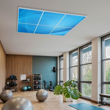 Entdecken Sie unsere vielseitigen Lichtdecken, hier in der Größe 186 x 124cm mit dem Motiv Motiv Blaues Licht - Ihre Beleuchtungslösung für jede Umgebung Beleuchten Sie Ihren Raum nicht nur, sondern schaffen Sie Atmosphäre! Die banjado Lichtdecke verwandelt jeden Ort, ob zu Hause, in Praxen, Büros oder Studios in eine Wohlfühloase. Unsere einzelnen Elemente haben eine genormte Einheitsgröße von 62 x 62cm und können somit in jede gängige Rasterdecken verbaut werden. So finden Sie Ihre passende Ausführung: Gern helfen wir Ihnen, die passende Ausführung zu wählen. Hierfür muss die aktuelle Gegebenheit Ihrer Decke oder Wand beachtet werden. Haben Sie bereits eine Rasterdecke (auch Odenwalddecke genannt)? Hier bestellen Sie lediglich das Motiv + Beleuchtungspanel, denn beides wird in die bereits vorhandene Decke eingelegt. Haben Sie eine glatte Decke mit Lichtauslass oder möchten die Lichtdecke an der Wand befestigen? Hier bestellen Sie bitte Motiv + Beleuchtungspanel + Deckenbefestigung, eine Aufbauanleitung liegt immer bei. Die Lichtdecke kann sowohl an der Decke als auch an der Wand montiert werden, perfekt für kreative Lichtakzente oder alternative Beleuchtungslösungen. Haben Sie bereits eine Lichtdecke und möchten nur das Motiv wechseln? Hier bestellen Sie bitte nur Motiv, der Wechsel ist denkbar einfach. Der Aufbau Ihrer banjado Lichtdecke gestaltet sich unkompliziert, dank einer verständlichen Anleitung, die Ihnen Schritt für Schritt durch den Montageprozess hilft. Für die endgültige Installation und den sicheren Anschluss empfehlen wir die Hinzuziehung eines Fachmanns, um die optimale Funktion und Sicherheit Ihrer Beleuchtung zu gewährleisten. Falls Sie einen Fachmann für die Installation benötigen, geben Sie uns gern Bescheid, wir vermitteln Ihnen gern einen geeigneten Ansprechpartner aus Ihrer Nähe. Steuerung: Steigern Sie Ihr Beleuchtungserlebnis mit der nahtlosen Integration in Ihr Smart Home. Durch die Kompatibilität mit der SmartLife App, Alexa und Google Assistant wird Ihr Smartphone zur zentralen Steuerungseinheit. Ihr Handy fungiert hierbei sozusagen als Fernbedienung. Legen Sie individuelle Lichtszenen in der App fest, die bei Aktivierung über den Wand-Ein-/Ausschalter immer wieder abgerufen werden können ohne Handy. Mit der Szenenfunktion in der Smart App können Sie die Beleuchtung personalisieren und steuern, sodass sie auf Ihre individuellen Bedürfnisse, Tagesrhythmus und Stimmung zugeschnitten ist. Beispielsweise können Sie sich in der Morgendämmerung durch ein sanftes Licht wecken lassen oder das Licht der Praxis werktags um 7 Uhr automatisch einschalten lassen. Dieses kann dann natürlich auch zu einer bestimmten Zeit automatisch ausgeschaltet werden. Motivwahl: Diese einzigartige Lichtdecke zeichnet sich durch ihre Fähigkeit aus, die Lichtfarbe je nach gewähltem Motiv anzupassen - ein Baum wirft ein sanftes grünes Licht, während eine Wolkendecke Ihren Raum in ein beruhigendes blaues Leuchten hüllt. Berücksichtigen Sie dies bitte bei Ihrer Motivauswahl. Sie können das Motiv jederzeit ohne großen Aufwand austauschen, ob nach Jahreszeit oder anderem Anlass, unsere Auswahl lässt kaum Wünsche offen. Wir fertigen Ihnen gern eine personalisierte Lichtdecke mit einem eigenen Motiv oder Logo oder Foto, schreiben Sie uns jederzeit an. Technische Daten: Das Motiv ist auf einer 4mm starken Acrylglas Scheibe aufgebracht, das Gesamtgewicht Ihrer Ausführung beträgt 29,6kg. Die Farbtemperatur lässt sich frei einstellen von 3000 bis 6000 Kelvin, damit können Sie stufenlos zwischen warmweiß, neutralweiß und kaltweiß wählen. Die Gesamtleistung bei Ihrer gewählten Ausführung beträgt 240W. Der Lichtstrom beträgt 3600 Lumen, die Nennspannung 230 V. Die Lichtdecke ist mit Schutzart IP20 für den Innenbereich konzipiert und sollte nicht im Nassbereich verwendet werden.
