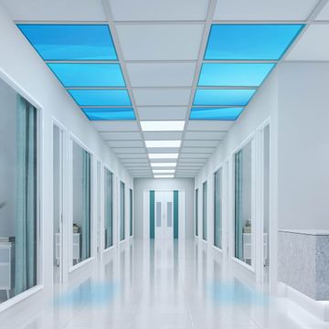 Entdecken Sie unsere vielseitigen Lichtdecken, hier in der Größe 124 x 248cm mit dem Motiv Motiv Blaues Licht - Ihre Beleuchtungslösung für jede Umgebung Beleuchten Sie Ihren Raum nicht nur, sondern schaffen Sie Atmosphäre! Die banjado Lichtdecke verwandelt jeden Ort, ob zu Hause, in Praxen, Büros oder Studios in eine Wohlfühloase. Unsere einzelnen Elemente haben eine genormte Einheitsgröße von 62 x 62cm und können somit in jede gängige Rasterdecken verbaut werden. So finden Sie Ihre passende Ausführung: Gern helfen wir Ihnen, die passende Ausführung zu wählen. Hierfür muss die aktuelle Gegebenheit Ihrer Decke oder Wand beachtet werden. Haben Sie bereits eine Rasterdecke (auch Odenwalddecke genannt)? Hier bestellen Sie lediglich das Motiv + Beleuchtungspanel, denn beides wird in die bereits vorhandene Decke eingelegt. Haben Sie eine glatte Decke mit Lichtauslass oder möchten die Lichtdecke an der Wand befestigen? Hier bestellen Sie bitte Motiv + Beleuchtungspanel + Deckenbefestigung, eine Aufbauanleitung liegt immer bei. Die Lichtdecke kann sowohl an der Decke als auch an der Wand montiert werden, perfekt für kreative Lichtakzente oder alternative Beleuchtungslösungen. Haben Sie bereits eine Lichtdecke und möchten nur das Motiv wechseln? Hier bestellen Sie bitte nur Motiv, der Wechsel ist denkbar einfach. Der Aufbau Ihrer banjado Lichtdecke gestaltet sich unkompliziert, dank einer verständlichen Anleitung, die Ihnen Schritt für Schritt durch den Montageprozess hilft. Für die endgültige Installation und den sicheren Anschluss empfehlen wir die Hinzuziehung eines Fachmanns, um die optimale Funktion und Sicherheit Ihrer Beleuchtung zu gewährleisten. Falls Sie einen Fachmann für die Installation benötigen, geben Sie uns gern Bescheid, wir vermitteln Ihnen gern einen geeigneten Ansprechpartner aus Ihrer Nähe. Steuerung: Steigern Sie Ihr Beleuchtungserlebnis mit der nahtlosen Integration in Ihr Smart Home. Durch die Kompatibilität mit der SmartLife App, Alexa und Google Assistant wird Ihr Smartphone zur zentralen Steuerungseinheit. Ihr Handy fungiert hierbei sozusagen als Fernbedienung. Legen Sie individuelle Lichtszenen in der App fest, die bei Aktivierung über den Wand-Ein-/Ausschalter immer wieder abgerufen werden können ohne Handy. Mit der Szenenfunktion in der Smart App können Sie die Beleuchtung personalisieren und steuern, sodass sie auf Ihre individuellen Bedürfnisse, Tagesrhythmus und Stimmung zugeschnitten ist. Beispielsweise können Sie sich in der Morgendämmerung durch ein sanftes Licht wecken lassen oder das Licht der Praxis werktags um 7 Uhr automatisch einschalten lassen. Dieses kann dann natürlich auch zu einer bestimmten Zeit automatisch ausgeschaltet werden. Motivwahl: Diese einzigartige Lichtdecke zeichnet sich durch ihre Fähigkeit aus, die Lichtfarbe je nach gewähltem Motiv anzupassen - ein Baum wirft ein sanftes grünes Licht, während eine Wolkendecke Ihren Raum in ein beruhigendes blaues Leuchten hüllt. Berücksichtigen Sie dies bitte bei Ihrer Motivauswahl. Sie können das Motiv jederzeit ohne großen Aufwand austauschen, ob nach Jahreszeit oder anderem Anlass, unsere Auswahl lässt kaum Wünsche offen. Wir fertigen Ihnen gern eine personalisierte Lichtdecke mit einem eigenen Motiv oder Logo oder Foto, schreiben Sie uns jederzeit an. Technische Daten: Das Motiv ist auf einer 4mm starken Acrylglas Scheibe aufgebracht, das Gesamtgewicht Ihrer Ausführung beträgt 18,1kg. Die Farbtemperatur lässt sich frei einstellen von 3000 bis 6000 Kelvin, damit können Sie stufenlos zwischen warmweiß, neutralweiß und kaltweiß wählen. Die Gesamtleistung bei Ihrer gewählten Ausführung beträgt 320W. Der Lichtstrom beträgt 3600 Lumen, die Nennspannung 230 V. Die Lichtdecke ist mit Schutzart IP20 für den Innenbereich konzipiert und sollte nicht im Nassbereich verwendet werden.