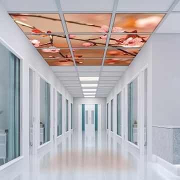 Entdecken Sie unsere vielseitigen Lichtdecken, hier in der Größe 186 x 248cm mit dem Motiv Motiv Blühender Kirschzweig - Ihre Beleuchtungslösung für jede Umgebung Beleuchten Sie Ihren Raum nicht nur, sondern schaffen Sie Atmosphäre! Die banjado Lichtdecke verwandelt jeden Ort, ob zu Hause, in Praxen, Büros oder Studios in eine Wohlfühloase. Unsere einzelnen Elemente haben eine genormte Einheitsgröße von 62 x 62cm und können somit in jede gängige Rasterdecken verbaut werden. So finden Sie Ihre passende Ausführung: Gern helfen wir Ihnen, die passende Ausführung zu wählen. Hierfür muss die aktuelle Gegebenheit Ihrer Decke oder Wand beachtet werden. Haben Sie bereits eine Rasterdecke (auch Odenwalddecke genannt)? Hier bestellen Sie lediglich das Motiv + Beleuchtungspanel, denn beides wird in die bereits vorhandene Decke eingelegt. Haben Sie eine glatte Decke mit Lichtauslass oder möchten die Lichtdecke an der Wand befestigen? Hier bestellen Sie bitte Motiv + Beleuchtungspanel + Deckenbefestigung, eine Aufbauanleitung liegt immer bei. Die Lichtdecke kann sowohl an der Decke als auch an der Wand montiert werden, perfekt für kreative Lichtakzente oder alternative Beleuchtungslösungen. Haben Sie bereits eine Lichtdecke und möchten nur das Motiv wechseln? Hier bestellen Sie bitte nur Motiv, der Wechsel ist denkbar einfach. Der Aufbau Ihrer banjado Lichtdecke gestaltet sich unkompliziert, dank einer verständlichen Anleitung, die Ihnen Schritt für Schritt durch den Montageprozess hilft. Für die endgültige Installation und den sicheren Anschluss empfehlen wir die Hinzuziehung eines Fachmanns, um die optimale Funktion und Sicherheit Ihrer Beleuchtung zu gewährleisten. Falls Sie einen Fachmann für die Installation benötigen, geben Sie uns gern Bescheid, wir vermitteln Ihnen gern einen geeigneten Ansprechpartner aus Ihrer Nähe. Steuerung: Steigern Sie Ihr Beleuchtungserlebnis mit der nahtlosen Integration in Ihr Smart Home. Durch die Kompatibilität mit der SmartLife App, Alexa und Google Assistant wird Ihr Smartphone zur zentralen Steuerungseinheit. Ihr Handy fungiert hierbei sozusagen als Fernbedienung. Legen Sie individuelle Lichtszenen in der App fest, die bei Aktivierung über den Wand-Ein-/Ausschalter immer wieder abgerufen werden können ohne Handy. Mit der Szenenfunktion in der Smart App können Sie die Beleuchtung personalisieren und steuern, sodass sie auf Ihre individuellen Bedürfnisse, Tagesrhythmus und Stimmung zugeschnitten ist. Beispielsweise können Sie sich in der Morgendämmerung durch ein sanftes Licht wecken lassen oder das Licht der Praxis werktags um 7 Uhr automatisch einschalten lassen. Dieses kann dann natürlich auch zu einer bestimmten Zeit automatisch ausgeschaltet werden. Motivwahl: Diese einzigartige Lichtdecke zeichnet sich durch ihre Fähigkeit aus, die Lichtfarbe je nach gewähltem Motiv anzupassen - ein Baum wirft ein sanftes grünes Licht, während eine Wolkendecke Ihren Raum in ein beruhigendes blaues Leuchten hüllt. Berücksichtigen Sie dies bitte bei Ihrer Motivauswahl. Sie können das Motiv jederzeit ohne großen Aufwand austauschen, ob nach Jahreszeit oder anderem Anlass, unsere Auswahl lässt kaum Wünsche offen. Wir fertigen Ihnen gern eine personalisierte Lichtdecke mit einem eigenen Motiv oder Logo oder Foto, schreiben Sie uns jederzeit an. Technische Daten: Das Motiv ist auf einer 4mm starken Acrylglas Scheibe aufgebracht, das Gesamtgewicht Ihrer Ausführung beträgt 27,1kg. Die Farbtemperatur lässt sich frei einstellen von 3000 bis 6000 Kelvin, damit können Sie stufenlos zwischen warmweiß, neutralweiß und kaltweiß wählen. Die Gesamtleistung bei Ihrer gewählten Ausführung beträgt 480W. Der Lichtstrom beträgt 3600 Lumen, die Nennspannung 230 V. Die Lichtdecke ist mit Schutzart IP20 für den Innenbereich konzipiert und sollte nicht im Nassbereich verwendet werden.