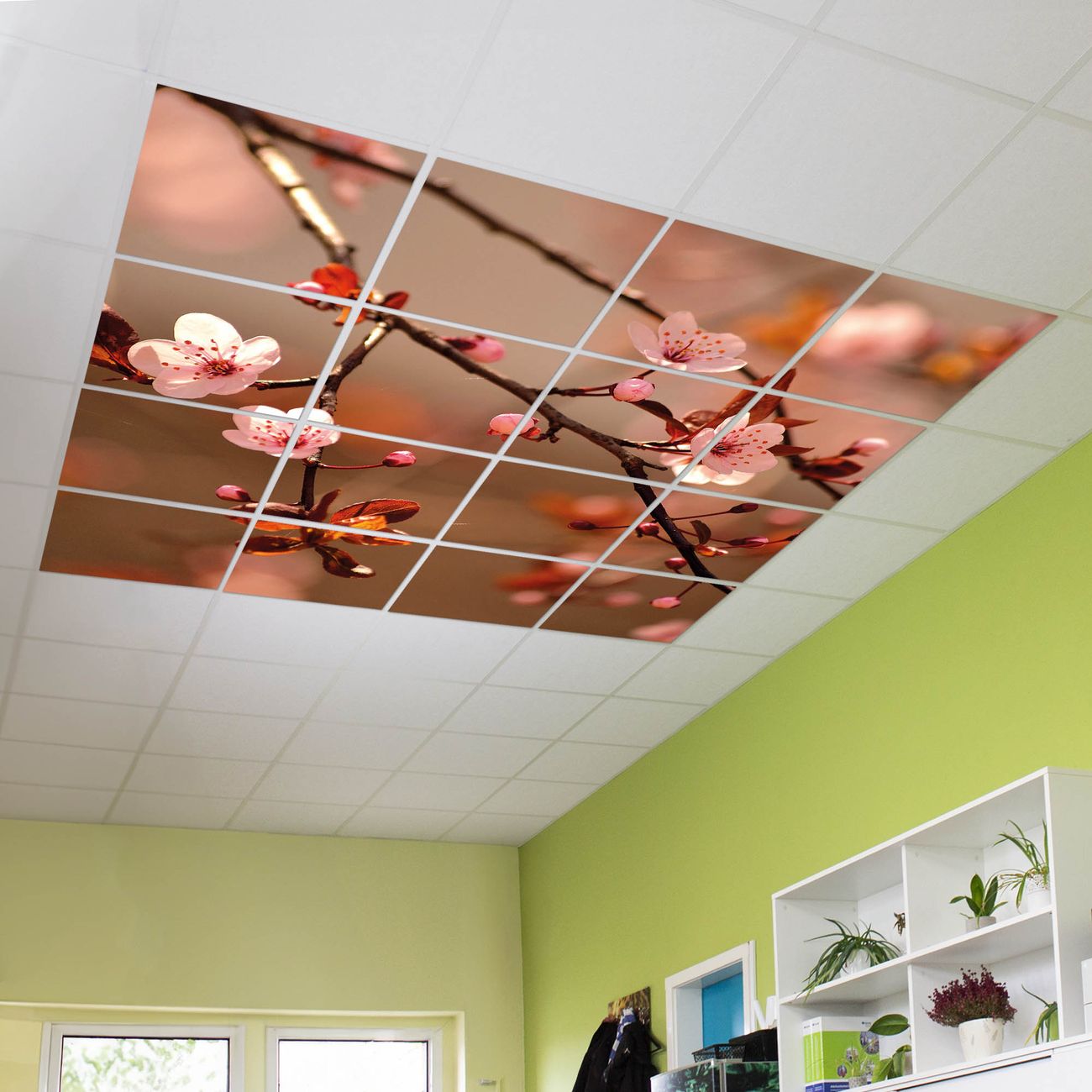 Entdecken Sie unsere vielseitigen Lichtdecken, hier in der Größe 248 x 248cm mit dem Motiv Motiv Blühender Kirschzweig - Ihre Beleuchtungslösung für jede Umgebung Beleuchten Sie Ihren Raum nicht nur, sondern schaffen Sie Atmosphäre! Die banjado Lichtdecke verwandelt jeden Ort, ob zu Hause, in Praxen, Büros oder Studios in eine Wohlfühloase. Unsere einzelnen Elemente haben eine genormte Einheitsgröße von 62 x 62cm und können somit in jede gängige Rasterdecken verbaut werden. So finden Sie Ihre passende Ausführung: Gern helfen wir Ihnen, die passende Ausführung zu wählen. Hierfür muss die aktuelle Gegebenheit Ihrer Decke oder Wand beachtet werden. Haben Sie bereits eine Rasterdecke (auch Odenwalddecke genannt)? Hier bestellen Sie lediglich das Motiv + Beleuchtungspanel, denn beides wird in die bereits vorhandene Decke eingelegt. Haben Sie eine glatte Decke mit Lichtauslass oder möchten die Lichtdecke an der Wand befestigen? Hier bestellen Sie bitte Motiv + Beleuchtungspanel + Deckenbefestigung, eine Aufbauanleitung liegt immer bei. Die Lichtdecke kann sowohl an der Decke als auch an der Wand montiert werden, perfekt für kreative Lichtakzente oder alternative Beleuchtungslösungen. Haben Sie bereits eine Lichtdecke und möchten nur das Motiv wechseln? Hier bestellen Sie bitte nur Motiv, der Wechsel ist denkbar einfach. Der Aufbau Ihrer banjado Lichtdecke gestaltet sich unkompliziert, dank einer verständlichen Anleitung, die Ihnen Schritt für Schritt durch den Montageprozess hilft. Für die endgültige Installation und den sicheren Anschluss empfehlen wir die Hinzuziehung eines Fachmanns, um die optimale Funktion und Sicherheit Ihrer Beleuchtung zu gewährleisten. Falls Sie einen Fachmann für die Installation benötigen, geben Sie uns gern Bescheid, wir vermitteln Ihnen gern einen geeigneten Ansprechpartner aus Ihrer Nähe. Steuerung: Steigern Sie Ihr Beleuchtungserlebnis mit der nahtlosen Integration in Ihr Smart Home. Durch die Kompatibilität mit der SmartLife App, Alexa und Google Assistant wird Ihr Smartphone zur zentralen Steuerungseinheit. Ihr Handy fungiert hierbei sozusagen als Fernbedienung. Legen Sie individuelle Lichtszenen in der App fest, die bei Aktivierung über den Wand-Ein-/Ausschalter immer wieder abgerufen werden können ohne Handy. Mit der Szenenfunktion in der Smart App können Sie die Beleuchtung personalisieren und steuern, sodass sie auf Ihre individuellen Bedürfnisse, Tagesrhythmus und Stimmung zugeschnitten ist. Beispielsweise können Sie sich in der Morgendämmerung durch ein sanftes Licht wecken lassen oder das Licht der Praxis werktags um 7 Uhr automatisch einschalten lassen. Dieses kann dann natürlich auch zu einer bestimmten Zeit automatisch ausgeschaltet werden. Motivwahl: Diese einzigartige Lichtdecke zeichnet sich durch ihre Fähigkeit aus, die Lichtfarbe je nach gewähltem Motiv anzupassen - ein Baum wirft ein sanftes grünes Licht, während eine Wolkendecke Ihren Raum in ein beruhigendes blaues Leuchten hüllt. Berücksichtigen Sie dies bitte bei Ihrer Motivauswahl. Sie können das Motiv jederzeit ohne großen Aufwand austauschen, ob nach Jahreszeit oder anderem Anlass, unsere Auswahl lässt kaum Wünsche offen. Wir fertigen Ihnen gern eine personalisierte Lichtdecke mit einem eigenen Motiv oder Logo oder Foto, schreiben Sie uns jederzeit an. Technische Daten: Das Motiv ist auf einer 4mm starken Acrylglas Scheibe aufgebracht, das Gesamtgewicht Ihrer Ausführung beträgt 70,9kg. Die Farbtemperatur lässt sich frei einstellen von 3000 bis 6000 Kelvin, damit können Sie stufenlos zwischen warmweiß, neutralweiß und kaltweiß wählen. Die Gesamtleistung bei Ihrer gewählten Ausführung beträgt 640W. Der Lichtstrom beträgt 3600 Lumen, die Nennspannung 230 V. Die Lichtdecke ist mit Schutzart IP20 für den Innenbereich konzipiert und sollte nicht im Nassbereich verwendet werden.