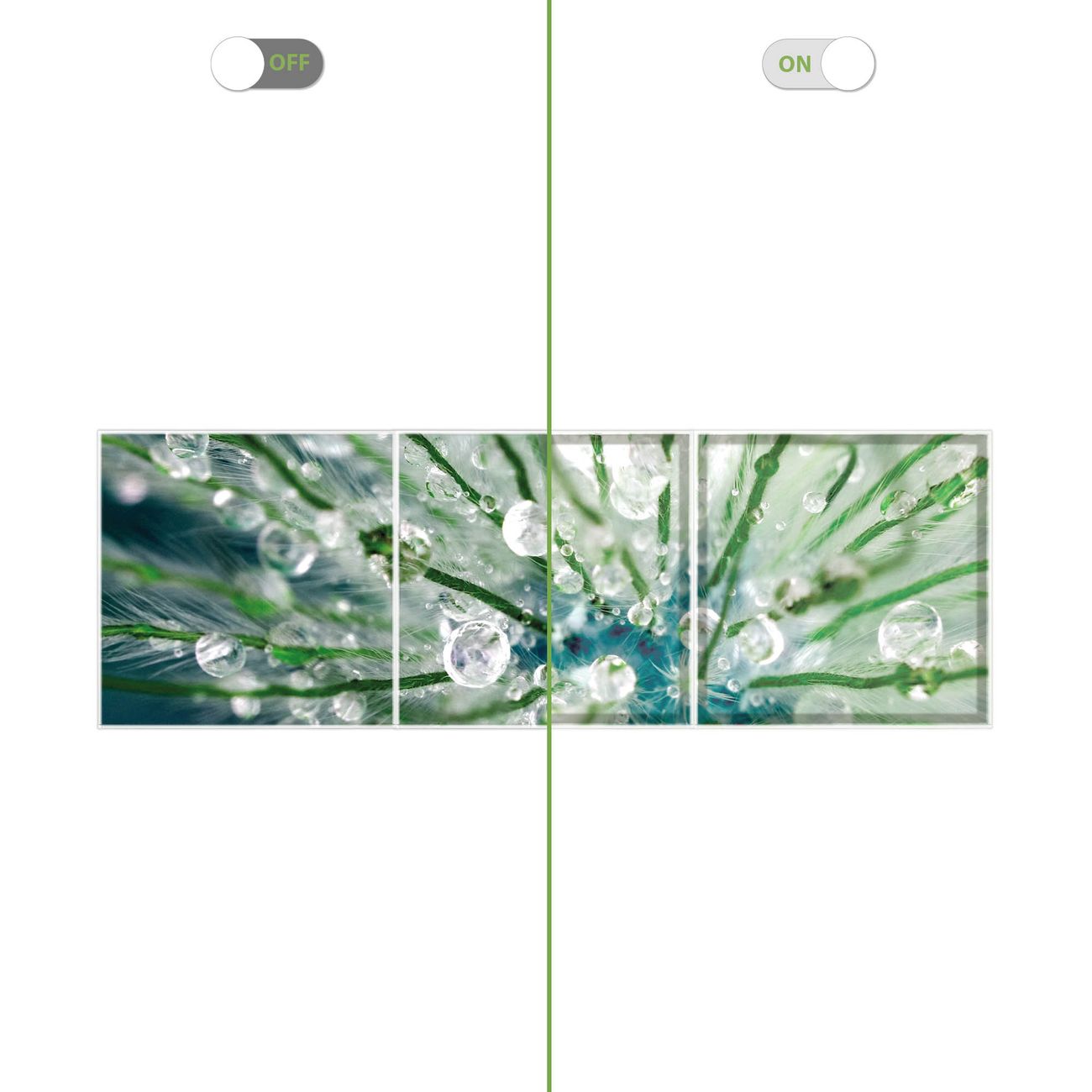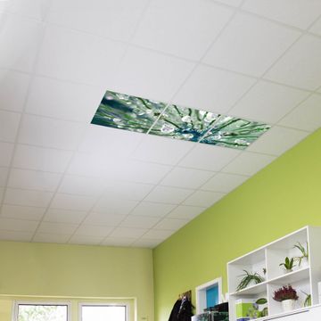 Entdecken Sie unsere vielseitigen Lichtdecken, hier in der Größe 186 x 62cm mit dem Motiv Motiv Blüte Mit Tautropfen - Ihre Beleuchtungslösung für jede Umgebung Beleuchten Sie Ihren Raum nicht nur, sondern schaffen Sie Atmosphäre! Die banjado Lichtdecke verwandelt jeden Ort, ob zu Hause, in Praxen, Büros oder Studios in eine Wohlfühloase. Unsere einzelnen Elemente haben eine genormte Einheitsgröße von 62 x 62cm und können somit in jede gängige Rasterdecken verbaut werden. So finden Sie Ihre passende Ausführung: Gern helfen wir Ihnen, die passende Ausführung zu wählen. Hierfür muss die aktuelle Gegebenheit Ihrer Decke oder Wand beachtet werden. Haben Sie bereits eine Rasterdecke (auch Odenwalddecke genannt)? Hier bestellen Sie lediglich das Motiv + Beleuchtungspanel, denn beides wird in die bereits vorhandene Decke eingelegt. Haben Sie eine glatte Decke mit Lichtauslass oder möchten die Lichtdecke an der Wand befestigen? Hier bestellen Sie bitte Motiv + Beleuchtungspanel + Deckenbefestigung, eine Aufbauanleitung liegt immer bei. Die Lichtdecke kann sowohl an der Decke als auch an der Wand montiert werden, perfekt für kreative Lichtakzente oder alternative Beleuchtungslösungen. Haben Sie bereits eine Lichtdecke und möchten nur das Motiv wechseln? Hier bestellen Sie bitte nur Motiv, der Wechsel ist denkbar einfach. Der Aufbau Ihrer banjado Lichtdecke gestaltet sich unkompliziert, dank einer verständlichen Anleitung, die Ihnen Schritt für Schritt durch den Montageprozess hilft. Für die endgültige Installation und den sicheren Anschluss empfehlen wir die Hinzuziehung eines Fachmanns, um die optimale Funktion und Sicherheit Ihrer Beleuchtung zu gewährleisten. Falls Sie einen Fachmann für die Installation benötigen, geben Sie uns gern Bescheid, wir vermitteln Ihnen gern einen geeigneten Ansprechpartner aus Ihrer Nähe. Steuerung: Steigern Sie Ihr Beleuchtungserlebnis mit der nahtlosen Integration in Ihr Smart Home. Durch die Kompatibilität mit der SmartLife App, Alexa und Google Assistant wird Ihr Smartphone zur zentralen Steuerungseinheit. Ihr Handy fungiert hierbei sozusagen als Fernbedienung. Legen Sie individuelle Lichtszenen in der App fest, die bei Aktivierung über den Wand-Ein-/Ausschalter immer wieder abgerufen werden können ohne Handy. Mit der Szenenfunktion in der Smart App können Sie die Beleuchtung personalisieren und steuern, sodass sie auf Ihre individuellen Bedürfnisse, Tagesrhythmus und Stimmung zugeschnitten ist. Beispielsweise können Sie sich in der Morgendämmerung durch ein sanftes Licht wecken lassen oder das Licht der Praxis werktags um 7 Uhr automatisch einschalten lassen. Dieses kann dann natürlich auch zu einer bestimmten Zeit automatisch ausgeschaltet werden. Motivwahl: Diese einzigartige Lichtdecke zeichnet sich durch ihre Fähigkeit aus, die Lichtfarbe je nach gewähltem Motiv anzupassen - ein Baum wirft ein sanftes grünes Licht, während eine Wolkendecke Ihren Raum in ein beruhigendes blaues Leuchten hüllt. Berücksichtigen Sie dies bitte bei Ihrer Motivauswahl. Sie können das Motiv jederzeit ohne großen Aufwand austauschen, ob nach Jahreszeit oder anderem Anlass, unsere Auswahl lässt kaum Wünsche offen. Wir fertigen Ihnen gern eine personalisierte Lichtdecke mit einem eigenen Motiv oder Logo oder Foto, schreiben Sie uns jederzeit an. Technische Daten: Das Motiv ist auf einer 4mm starken Acrylglas Scheibe aufgebracht, das Gesamtgewicht Ihrer Ausführung beträgt 6,8kg. Die Farbtemperatur lässt sich frei einstellen von 3000 bis 6000 Kelvin, damit können Sie stufenlos zwischen warmweiß, neutralweiß und kaltweiß wählen. Die Gesamtleistung bei Ihrer gewählten Ausführung beträgt 120W. Der Lichtstrom beträgt 3600 Lumen, die Nennspannung 230 V. Die Lichtdecke ist mit Schutzart IP20 für den Innenbereich konzipiert und sollte nicht im Nassbereich verwendet werden.
