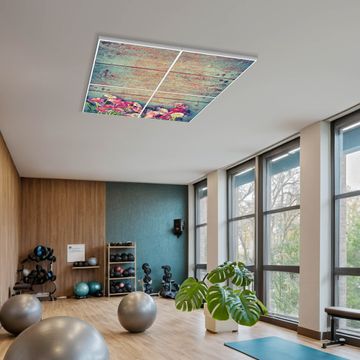 Entdecken Sie unsere vielseitigen Lichtdecken, hier in der Größe 124 x 124cm mit dem Motiv Motiv Blumenpfücken - Ihre Beleuchtungslösung für jede Umgebung Beleuchten Sie Ihren Raum nicht nur, sondern schaffen Sie Atmosphäre! Die banjado Lichtdecke verwandelt jeden Ort, ob zu Hause, in Praxen, Büros oder Studios in eine Wohlfühloase. Unsere einzelnen Elemente haben eine genormte Einheitsgröße von 62 x 62cm und können somit in jede gängige Rasterdecken verbaut werden. So finden Sie Ihre passende Ausführung: Gern helfen wir Ihnen, die passende Ausführung zu wählen. Hierfür muss die aktuelle Gegebenheit Ihrer Decke oder Wand beachtet werden. Haben Sie bereits eine Rasterdecke (auch Odenwalddecke genannt)? Hier bestellen Sie lediglich das Motiv + Beleuchtungspanel, denn beides wird in die bereits vorhandene Decke eingelegt. Haben Sie eine glatte Decke mit Lichtauslass oder möchten die Lichtdecke an der Wand befestigen? Hier bestellen Sie bitte Motiv + Beleuchtungspanel + Deckenbefestigung, eine Aufbauanleitung liegt immer bei. Die Lichtdecke kann sowohl an der Decke als auch an der Wand montiert werden, perfekt für kreative Lichtakzente oder alternative Beleuchtungslösungen. Haben Sie bereits eine Lichtdecke und möchten nur das Motiv wechseln? Hier bestellen Sie bitte nur Motiv, der Wechsel ist denkbar einfach. Der Aufbau Ihrer banjado Lichtdecke gestaltet sich unkompliziert, dank einer verständlichen Anleitung, die Ihnen Schritt für Schritt durch den Montageprozess hilft. Für die endgültige Installation und den sicheren Anschluss empfehlen wir die Hinzuziehung eines Fachmanns, um die optimale Funktion und Sicherheit Ihrer Beleuchtung zu gewährleisten. Falls Sie einen Fachmann für die Installation benötigen, geben Sie uns gern Bescheid, wir vermitteln Ihnen gern einen geeigneten Ansprechpartner aus Ihrer Nähe. Steuerung: Steigern Sie Ihr Beleuchtungserlebnis mit der nahtlosen Integration in Ihr Smart Home. Durch die Kompatibilität mit der SmartLife App, Alexa und Google Assistant wird Ihr Smartphone zur zentralen Steuerungseinheit. Ihr Handy fungiert hierbei sozusagen als Fernbedienung. Legen Sie individuelle Lichtszenen in der App fest, die bei Aktivierung über den Wand-Ein-/Ausschalter immer wieder abgerufen werden können ohne Handy. Mit der Szenenfunktion in der Smart App können Sie die Beleuchtung personalisieren und steuern, sodass sie auf Ihre individuellen Bedürfnisse, Tagesrhythmus und Stimmung zugeschnitten ist. Beispielsweise können Sie sich in der Morgendämmerung durch ein sanftes Licht wecken lassen oder das Licht der Praxis werktags um 7 Uhr automatisch einschalten lassen. Dieses kann dann natürlich auch zu einer bestimmten Zeit automatisch ausgeschaltet werden. Motivwahl: Diese einzigartige Lichtdecke zeichnet sich durch ihre Fähigkeit aus, die Lichtfarbe je nach gewähltem Motiv anzupassen - ein Baum wirft ein sanftes grünes Licht, während eine Wolkendecke Ihren Raum in ein beruhigendes blaues Leuchten hüllt. Berücksichtigen Sie dies bitte bei Ihrer Motivauswahl. Sie können das Motiv jederzeit ohne großen Aufwand austauschen, ob nach Jahreszeit oder anderem Anlass, unsere Auswahl lässt kaum Wünsche offen. Wir fertigen Ihnen gern eine personalisierte Lichtdecke mit einem eigenen Motiv oder Logo oder Foto, schreiben Sie uns jederzeit an. Technische Daten: Das Motiv ist auf einer 4mm starken Acrylglas Scheibe aufgebracht, das Gesamtgewicht Ihrer Ausführung beträgt 19,7kg. Die Farbtemperatur lässt sich frei einstellen von 3000 bis 6000 Kelvin, damit können Sie stufenlos zwischen warmweiß, neutralweiß und kaltweiß wählen. Die Gesamtleistung bei Ihrer gewählten Ausführung beträgt 160W. Der Lichtstrom beträgt 3600 Lumen, die Nennspannung 230 V. Die Lichtdecke ist mit Schutzart IP20 für den Innenbereich konzipiert und sollte nicht im Nassbereich verwendet werden.