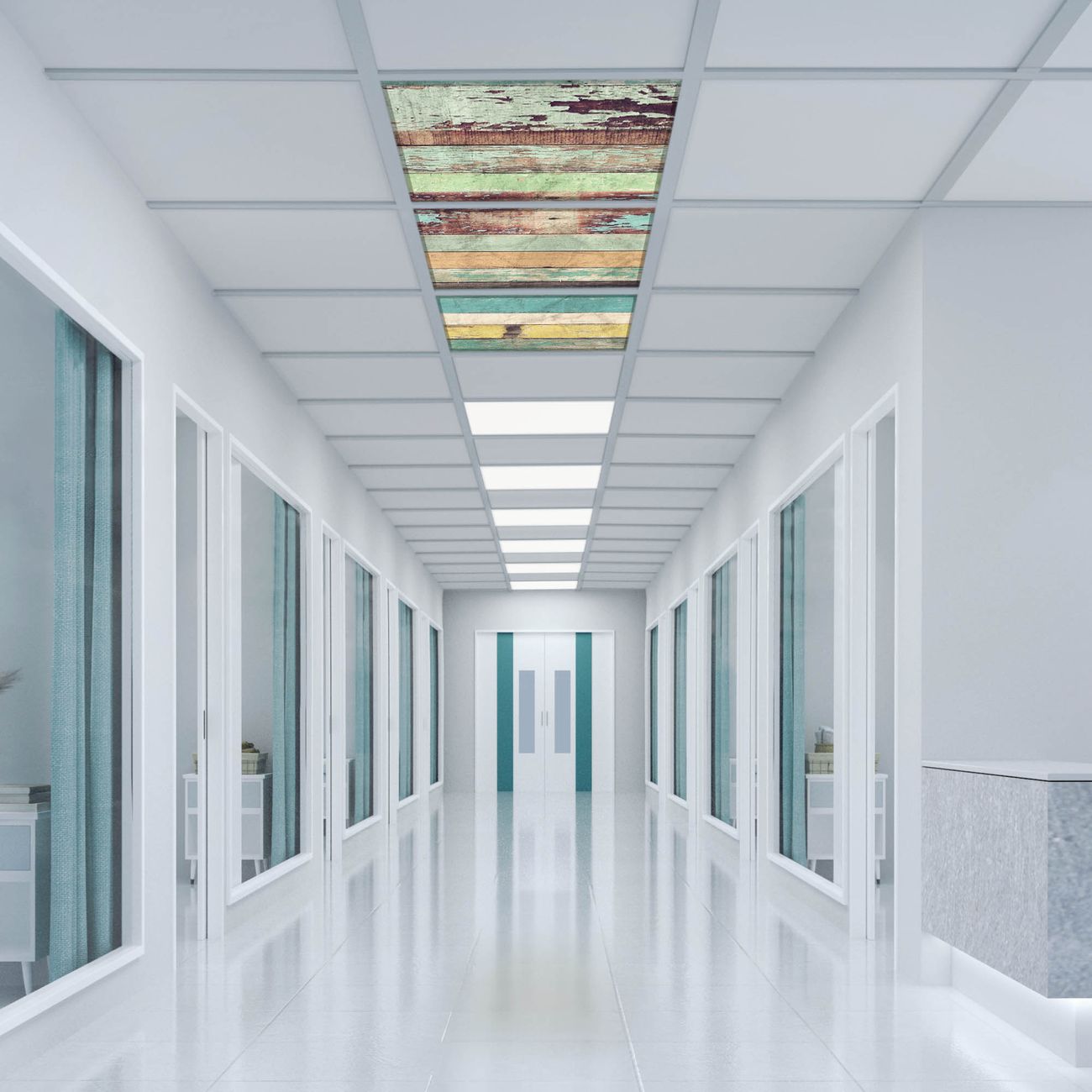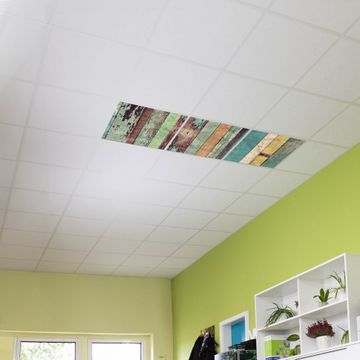 Entdecken Sie unsere vielseitigen Lichtdecken, hier in der Größe 186 x 62cm mit dem Motiv Motiv Bunte Bretterwand - Ihre Beleuchtungslösung für jede Umgebung Beleuchten Sie Ihren Raum nicht nur, sondern schaffen Sie Atmosphäre! Die banjado Lichtdecke verwandelt jeden Ort, ob zu Hause, in Praxen, Büros oder Studios in eine Wohlfühloase. Unsere einzelnen Elemente haben eine genormte Einheitsgröße von 62 x 62cm und können somit in jede gängige Rasterdecken verbaut werden. So finden Sie Ihre passende Ausführung: Gern helfen wir Ihnen, die passende Ausführung zu wählen. Hierfür muss die aktuelle Gegebenheit Ihrer Decke oder Wand beachtet werden. Haben Sie bereits eine Rasterdecke (auch Odenwalddecke genannt)? Hier bestellen Sie lediglich das Motiv + Beleuchtungspanel, denn beides wird in die bereits vorhandene Decke eingelegt. Haben Sie eine glatte Decke mit Lichtauslass oder möchten die Lichtdecke an der Wand befestigen? Hier bestellen Sie bitte Motiv + Beleuchtungspanel + Deckenbefestigung, eine Aufbauanleitung liegt immer bei. Die Lichtdecke kann sowohl an der Decke als auch an der Wand montiert werden, perfekt für kreative Lichtakzente oder alternative Beleuchtungslösungen. Haben Sie bereits eine Lichtdecke und möchten nur das Motiv wechseln? Hier bestellen Sie bitte nur Motiv, der Wechsel ist denkbar einfach. Der Aufbau Ihrer banjado Lichtdecke gestaltet sich unkompliziert, dank einer verständlichen Anleitung, die Ihnen Schritt für Schritt durch den Montageprozess hilft. Für die endgültige Installation und den sicheren Anschluss empfehlen wir die Hinzuziehung eines Fachmanns, um die optimale Funktion und Sicherheit Ihrer Beleuchtung zu gewährleisten. Falls Sie einen Fachmann für die Installation benötigen, geben Sie uns gern Bescheid, wir vermitteln Ihnen gern einen geeigneten Ansprechpartner aus Ihrer Nähe. Steuerung: Steigern Sie Ihr Beleuchtungserlebnis mit der nahtlosen Integration in Ihr Smart Home. Durch die Kompatibilität mit der SmartLife App, Alexa und Google Assistant wird Ihr Smartphone zur zentralen Steuerungseinheit. Ihr Handy fungiert hierbei sozusagen als Fernbedienung. Legen Sie individuelle Lichtszenen in der App fest, die bei Aktivierung über den Wand-Ein-/Ausschalter immer wieder abgerufen werden können ohne Handy. Mit der Szenenfunktion in der Smart App können Sie die Beleuchtung personalisieren und steuern, sodass sie auf Ihre individuellen Bedürfnisse, Tagesrhythmus und Stimmung zugeschnitten ist. Beispielsweise können Sie sich in der Morgendämmerung durch ein sanftes Licht wecken lassen oder das Licht der Praxis werktags um 7 Uhr automatisch einschalten lassen. Dieses kann dann natürlich auch zu einer bestimmten Zeit automatisch ausgeschaltet werden. Motivwahl: Diese einzigartige Lichtdecke zeichnet sich durch ihre Fähigkeit aus, die Lichtfarbe je nach gewähltem Motiv anzupassen - ein Baum wirft ein sanftes grünes Licht, während eine Wolkendecke Ihren Raum in ein beruhigendes blaues Leuchten hüllt. Berücksichtigen Sie dies bitte bei Ihrer Motivauswahl. Sie können das Motiv jederzeit ohne großen Aufwand austauschen, ob nach Jahreszeit oder anderem Anlass, unsere Auswahl lässt kaum Wünsche offen. Wir fertigen Ihnen gern eine personalisierte Lichtdecke mit einem eigenen Motiv oder Logo oder Foto, schreiben Sie uns jederzeit an. Technische Daten: Das Motiv ist auf einer 4mm starken Acrylglas Scheibe aufgebracht, das Gesamtgewicht Ihrer Ausführung beträgt 6,8kg. Die Farbtemperatur lässt sich frei einstellen von 3000 bis 6000 Kelvin, damit können Sie stufenlos zwischen warmweiß, neutralweiß und kaltweiß wählen. Die Gesamtleistung bei Ihrer gewählten Ausführung beträgt 120W. Der Lichtstrom beträgt 3600 Lumen, die Nennspannung 230 V. Die Lichtdecke ist mit Schutzart IP20 für den Innenbereich konzipiert und sollte nicht im Nassbereich verwendet werden.