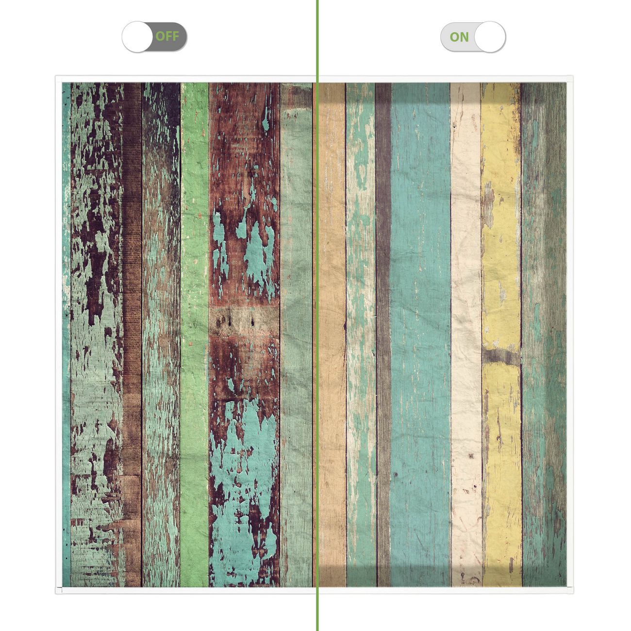 Entdecken Sie unsere vielseitigen Lichtdecken, hier in der Größe 62 x 62cm mit dem Motiv Motiv Bunte Bretterwand - Ihre Beleuchtungslösung für jede Umgebung Beleuchten Sie Ihren Raum nicht nur, sondern schaffen Sie Atmosphäre! Die banjado Lichtdecke verwandelt jeden Ort, ob zu Hause, in Praxen, Büros oder Studios in eine Wohlfühloase. Unsere einzelnen Elemente haben eine genormte Einheitsgröße von 62 x 62cm und können somit in jede gängige Rasterdecken verbaut werden. So finden Sie Ihre passende Ausführung: Gern helfen wir Ihnen, die passende Ausführung zu wählen. Hierfür muss die aktuelle Gegebenheit Ihrer Decke oder Wand beachtet werden. Haben Sie bereits eine Rasterdecke (auch Odenwalddecke genannt)? Hier bestellen Sie lediglich das Motiv + Beleuchtungspanel, denn beides wird in die bereits vorhandene Decke eingelegt. Haben Sie eine glatte Decke mit Lichtauslass oder möchten die Lichtdecke an der Wand befestigen? Hier bestellen Sie bitte Motiv + Beleuchtungspanel + Deckenbefestigung, eine Aufbauanleitung liegt immer bei. Die Lichtdecke kann sowohl an der Decke als auch an der Wand montiert werden, perfekt für kreative Lichtakzente oder alternative Beleuchtungslösungen. Haben Sie bereits eine Lichtdecke und möchten nur das Motiv wechseln? Hier bestellen Sie bitte nur Motiv, der Wechsel ist denkbar einfach. Der Aufbau Ihrer banjado Lichtdecke gestaltet sich unkompliziert, dank einer verständlichen Anleitung, die Ihnen Schritt für Schritt durch den Montageprozess hilft. Für die endgültige Installation und den sicheren Anschluss empfehlen wir die Hinzuziehung eines Fachmanns, um die optimale Funktion und Sicherheit Ihrer Beleuchtung zu gewährleisten. Falls Sie einen Fachmann für die Installation benötigen, geben Sie uns gern Bescheid, wir vermitteln Ihnen gern einen geeigneten Ansprechpartner aus Ihrer Nähe. Steuerung: Steigern Sie Ihr Beleuchtungserlebnis mit der nahtlosen Integration in Ihr Smart Home. Durch die Kompatibilität mit der SmartLife App, Alexa und Google Assistant wird Ihr Smartphone zur zentralen Steuerungseinheit. Ihr Handy fungiert hierbei sozusagen als Fernbedienung. Legen Sie individuelle Lichtszenen in der App fest, die bei Aktivierung über den Wand-Ein-/Ausschalter immer wieder abgerufen werden können ohne Handy. Mit der Szenenfunktion in der Smart App können Sie die Beleuchtung personalisieren und steuern, sodass sie auf Ihre individuellen Bedürfnisse, Tagesrhythmus und Stimmung zugeschnitten ist. Beispielsweise können Sie sich in der Morgendämmerung durch ein sanftes Licht wecken lassen oder das Licht der Praxis werktags um 7 Uhr automatisch einschalten lassen. Dieses kann dann natürlich auch zu einer bestimmten Zeit automatisch ausgeschaltet werden. Motivwahl: Diese einzigartige Lichtdecke zeichnet sich durch ihre Fähigkeit aus, die Lichtfarbe je nach gewähltem Motiv anzupassen - ein Baum wirft ein sanftes grünes Licht, während eine Wolkendecke Ihren Raum in ein beruhigendes blaues Leuchten hüllt. Berücksichtigen Sie dies bitte bei Ihrer Motivauswahl. Sie können das Motiv jederzeit ohne großen Aufwand austauschen, ob nach Jahreszeit oder anderem Anlass, unsere Auswahl lässt kaum Wünsche offen. Wir fertigen Ihnen gern eine personalisierte Lichtdecke mit einem eigenen Motiv oder Logo oder Foto, schreiben Sie uns jederzeit an. Technische Daten: Das Motiv ist auf einer 4mm starken Acrylglas Scheibe aufgebracht, das Gesamtgewicht Ihrer Ausführung beträgt 2,3kg. Die Farbtemperatur lässt sich frei einstellen von 3000 bis 6000 Kelvin, damit können Sie stufenlos zwischen warmweiß, neutralweiß und kaltweiß wählen. Die Gesamtleistung bei Ihrer gewählten Ausführung beträgt 40W. Der Lichtstrom beträgt 3600 Lumen, die Nennspannung 230 V. Die Lichtdecke ist mit Schutzart IP20 für den Innenbereich konzipiert und sollte nicht im Nassbereich verwendet werden.