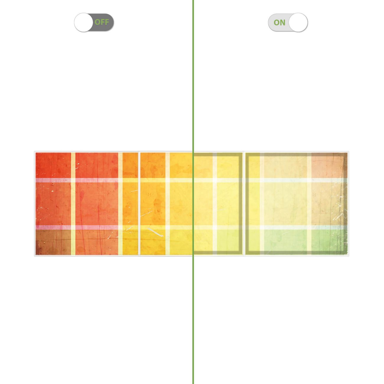 Entdecken Sie unsere vielseitigen Lichtdecken, hier in der Größe 186 x 62cm mit dem Motiv Motiv Bunte Glasbausteine - Ihre Beleuchtungslösung für jede Umgebung Beleuchten Sie Ihren Raum nicht nur, sondern schaffen Sie Atmosphäre! Die banjado Lichtdecke verwandelt jeden Ort, ob zu Hause, in Praxen, Büros oder Studios in eine Wohlfühloase. Unsere einzelnen Elemente haben eine genormte Einheitsgröße von 62 x 62cm und können somit in jede gängige Rasterdecken verbaut werden. So finden Sie Ihre passende Ausführung: Gern helfen wir Ihnen, die passende Ausführung zu wählen. Hierfür muss die aktuelle Gegebenheit Ihrer Decke oder Wand beachtet werden. Haben Sie bereits eine Rasterdecke (auch Odenwalddecke genannt)? Hier bestellen Sie lediglich das Motiv + Beleuchtungspanel, denn beides wird in die bereits vorhandene Decke eingelegt. Haben Sie eine glatte Decke mit Lichtauslass oder möchten die Lichtdecke an der Wand befestigen? Hier bestellen Sie bitte Motiv + Beleuchtungspanel + Deckenbefestigung, eine Aufbauanleitung liegt immer bei. Die Lichtdecke kann sowohl an der Decke als auch an der Wand montiert werden, perfekt für kreative Lichtakzente oder alternative Beleuchtungslösungen. Haben Sie bereits eine Lichtdecke und möchten nur das Motiv wechseln? Hier bestellen Sie bitte nur Motiv, der Wechsel ist denkbar einfach. Der Aufbau Ihrer banjado Lichtdecke gestaltet sich unkompliziert, dank einer verständlichen Anleitung, die Ihnen Schritt für Schritt durch den Montageprozess hilft. Für die endgültige Installation und den sicheren Anschluss empfehlen wir die Hinzuziehung eines Fachmanns, um die optimale Funktion und Sicherheit Ihrer Beleuchtung zu gewährleisten. Falls Sie einen Fachmann für die Installation benötigen, geben Sie uns gern Bescheid, wir vermitteln Ihnen gern einen geeigneten Ansprechpartner aus Ihrer Nähe. Steuerung: Steigern Sie Ihr Beleuchtungserlebnis mit der nahtlosen Integration in Ihr Smart Home. Durch die Kompatibilität mit der SmartLife App, Alexa und Google Assistant wird Ihr Smartphone zur zentralen Steuerungseinheit. Ihr Handy fungiert hierbei sozusagen als Fernbedienung. Legen Sie individuelle Lichtszenen in der App fest, die bei Aktivierung über den Wand-Ein-/Ausschalter immer wieder abgerufen werden können ohne Handy. Mit der Szenenfunktion in der Smart App können Sie die Beleuchtung personalisieren und steuern, sodass sie auf Ihre individuellen Bedürfnisse, Tagesrhythmus und Stimmung zugeschnitten ist. Beispielsweise können Sie sich in der Morgendämmerung durch ein sanftes Licht wecken lassen oder das Licht der Praxis werktags um 7 Uhr automatisch einschalten lassen. Dieses kann dann natürlich auch zu einer bestimmten Zeit automatisch ausgeschaltet werden. Motivwahl: Diese einzigartige Lichtdecke zeichnet sich durch ihre Fähigkeit aus, die Lichtfarbe je nach gewähltem Motiv anzupassen - ein Baum wirft ein sanftes grünes Licht, während eine Wolkendecke Ihren Raum in ein beruhigendes blaues Leuchten hüllt. Berücksichtigen Sie dies bitte bei Ihrer Motivauswahl. Sie können das Motiv jederzeit ohne großen Aufwand austauschen, ob nach Jahreszeit oder anderem Anlass, unsere Auswahl lässt kaum Wünsche offen. Wir fertigen Ihnen gern eine personalisierte Lichtdecke mit einem eigenen Motiv oder Logo oder Foto, schreiben Sie uns jederzeit an. Technische Daten: Das Motiv ist auf einer 4mm starken Acrylglas Scheibe aufgebracht, das Gesamtgewicht Ihrer Ausführung beträgt 6,8kg. Die Farbtemperatur lässt sich frei einstellen von 3000 bis 6000 Kelvin, damit können Sie stufenlos zwischen warmweiß, neutralweiß und kaltweiß wählen. Die Gesamtleistung bei Ihrer gewählten Ausführung beträgt 120W. Der Lichtstrom beträgt 3600 Lumen, die Nennspannung 230 V. Die Lichtdecke ist mit Schutzart IP20 für den Innenbereich konzipiert und sollte nicht im Nassbereich verwendet werden.