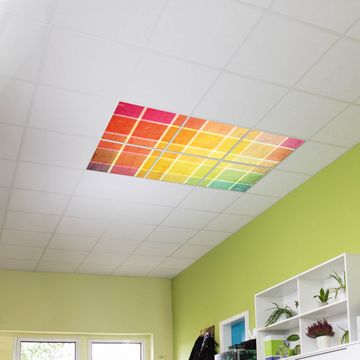 Entdecken Sie unsere vielseitigen Lichtdecken, hier in der Größe 186 x 124cm mit dem Motiv Motiv Bunte Glasbausteine - Ihre Beleuchtungslösung für jede Umgebung Beleuchten Sie Ihren Raum nicht nur, sondern schaffen Sie Atmosphäre! Die banjado Lichtdecke verwandelt jeden Ort, ob zu Hause, in Praxen, Büros oder Studios in eine Wohlfühloase. Unsere einzelnen Elemente haben eine genormte Einheitsgröße von 62 x 62cm und können somit in jede gängige Rasterdecken verbaut werden. So finden Sie Ihre passende Ausführung: Gern helfen wir Ihnen, die passende Ausführung zu wählen. Hierfür muss die aktuelle Gegebenheit Ihrer Decke oder Wand beachtet werden. Haben Sie bereits eine Rasterdecke (auch Odenwalddecke genannt)? Hier bestellen Sie lediglich das Motiv + Beleuchtungspanel, denn beides wird in die bereits vorhandene Decke eingelegt. Haben Sie eine glatte Decke mit Lichtauslass oder möchten die Lichtdecke an der Wand befestigen? Hier bestellen Sie bitte Motiv + Beleuchtungspanel + Deckenbefestigung, eine Aufbauanleitung liegt immer bei. Die Lichtdecke kann sowohl an der Decke als auch an der Wand montiert werden, perfekt für kreative Lichtakzente oder alternative Beleuchtungslösungen. Haben Sie bereits eine Lichtdecke und möchten nur das Motiv wechseln? Hier bestellen Sie bitte nur Motiv, der Wechsel ist denkbar einfach. Der Aufbau Ihrer banjado Lichtdecke gestaltet sich unkompliziert, dank einer verständlichen Anleitung, die Ihnen Schritt für Schritt durch den Montageprozess hilft. Für die endgültige Installation und den sicheren Anschluss empfehlen wir die Hinzuziehung eines Fachmanns, um die optimale Funktion und Sicherheit Ihrer Beleuchtung zu gewährleisten. Falls Sie einen Fachmann für die Installation benötigen, geben Sie uns gern Bescheid, wir vermitteln Ihnen gern einen geeigneten Ansprechpartner aus Ihrer Nähe. Steuerung: Steigern Sie Ihr Beleuchtungserlebnis mit der nahtlosen Integration in Ihr Smart Home. Durch die Kompatibilität mit der SmartLife App, Alexa und Google Assistant wird Ihr Smartphone zur zentralen Steuerungseinheit. Ihr Handy fungiert hierbei sozusagen als Fernbedienung. Legen Sie individuelle Lichtszenen in der App fest, die bei Aktivierung über den Wand-Ein-/Ausschalter immer wieder abgerufen werden können ohne Handy. Mit der Szenenfunktion in der Smart App können Sie die Beleuchtung personalisieren und steuern, sodass sie auf Ihre individuellen Bedürfnisse, Tagesrhythmus und Stimmung zugeschnitten ist. Beispielsweise können Sie sich in der Morgendämmerung durch ein sanftes Licht wecken lassen oder das Licht der Praxis werktags um 7 Uhr automatisch einschalten lassen. Dieses kann dann natürlich auch zu einer bestimmten Zeit automatisch ausgeschaltet werden. Motivwahl: Diese einzigartige Lichtdecke zeichnet sich durch ihre Fähigkeit aus, die Lichtfarbe je nach gewähltem Motiv anzupassen - ein Baum wirft ein sanftes grünes Licht, während eine Wolkendecke Ihren Raum in ein beruhigendes blaues Leuchten hüllt. Berücksichtigen Sie dies bitte bei Ihrer Motivauswahl. Sie können das Motiv jederzeit ohne großen Aufwand austauschen, ob nach Jahreszeit oder anderem Anlass, unsere Auswahl lässt kaum Wünsche offen. Wir fertigen Ihnen gern eine personalisierte Lichtdecke mit einem eigenen Motiv oder Logo oder Foto, schreiben Sie uns jederzeit an. Technische Daten: Das Motiv ist auf einer 4mm starken Acrylglas Scheibe aufgebracht, das Gesamtgewicht Ihrer Ausführung beträgt 26,6kg. Die Farbtemperatur lässt sich frei einstellen von 3000 bis 6000 Kelvin, damit können Sie stufenlos zwischen warmweiß, neutralweiß und kaltweiß wählen. Die Gesamtleistung bei Ihrer gewählten Ausführung beträgt 240W. Der Lichtstrom beträgt 3600 Lumen, die Nennspannung 230 V. Die Lichtdecke ist mit Schutzart IP20 für den Innenbereich konzipiert und sollte nicht im Nassbereich verwendet werden.