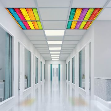 Entdecken Sie unsere vielseitigen Lichtdecken, hier in der Größe 124 x 124cm mit dem Motiv Motiv Bunte Holzlatten - Ihre Beleuchtungslösung für jede Umgebung Beleuchten Sie Ihren Raum nicht nur, sondern schaffen Sie Atmosphäre! Die banjado Lichtdecke verwandelt jeden Ort, ob zu Hause, in Praxen, Büros oder Studios in eine Wohlfühloase. Unsere einzelnen Elemente haben eine genormte Einheitsgröße von 62 x 62cm und können somit in jede gängige Rasterdecken verbaut werden. So finden Sie Ihre passende Ausführung: Gern helfen wir Ihnen, die passende Ausführung zu wählen. Hierfür muss die aktuelle Gegebenheit Ihrer Decke oder Wand beachtet werden. Haben Sie bereits eine Rasterdecke (auch Odenwalddecke genannt)? Hier bestellen Sie lediglich das Motiv + Beleuchtungspanel, denn beides wird in die bereits vorhandene Decke eingelegt. Haben Sie eine glatte Decke mit Lichtauslass oder möchten die Lichtdecke an der Wand befestigen? Hier bestellen Sie bitte Motiv + Beleuchtungspanel + Deckenbefestigung, eine Aufbauanleitung liegt immer bei. Die Lichtdecke kann sowohl an der Decke als auch an der Wand montiert werden, perfekt für kreative Lichtakzente oder alternative Beleuchtungslösungen. Haben Sie bereits eine Lichtdecke und möchten nur das Motiv wechseln? Hier bestellen Sie bitte nur Motiv, der Wechsel ist denkbar einfach. Der Aufbau Ihrer banjado Lichtdecke gestaltet sich unkompliziert, dank einer verständlichen Anleitung, die Ihnen Schritt für Schritt durch den Montageprozess hilft. Für die endgültige Installation und den sicheren Anschluss empfehlen wir die Hinzuziehung eines Fachmanns, um die optimale Funktion und Sicherheit Ihrer Beleuchtung zu gewährleisten. Falls Sie einen Fachmann für die Installation benötigen, geben Sie uns gern Bescheid, wir vermitteln Ihnen gern einen geeigneten Ansprechpartner aus Ihrer Nähe. Steuerung: Steigern Sie Ihr Beleuchtungserlebnis mit der nahtlosen Integration in Ihr Smart Home. Durch die Kompatibilität mit der SmartLife App, Alexa und Google Assistant wird Ihr Smartphone zur zentralen Steuerungseinheit. Ihr Handy fungiert hierbei sozusagen als Fernbedienung. Legen Sie individuelle Lichtszenen in der App fest, die bei Aktivierung über den Wand-Ein-/Ausschalter immer wieder abgerufen werden können ohne Handy. Mit der Szenenfunktion in der Smart App können Sie die Beleuchtung personalisieren und steuern, sodass sie auf Ihre individuellen Bedürfnisse, Tagesrhythmus und Stimmung zugeschnitten ist. Beispielsweise können Sie sich in der Morgendämmerung durch ein sanftes Licht wecken lassen oder das Licht der Praxis werktags um 7 Uhr automatisch einschalten lassen. Dieses kann dann natürlich auch zu einer bestimmten Zeit automatisch ausgeschaltet werden. Motivwahl: Diese einzigartige Lichtdecke zeichnet sich durch ihre Fähigkeit aus, die Lichtfarbe je nach gewähltem Motiv anzupassen - ein Baum wirft ein sanftes grünes Licht, während eine Wolkendecke Ihren Raum in ein beruhigendes blaues Leuchten hüllt. Berücksichtigen Sie dies bitte bei Ihrer Motivauswahl. Sie können das Motiv jederzeit ohne großen Aufwand austauschen, ob nach Jahreszeit oder anderem Anlass, unsere Auswahl lässt kaum Wünsche offen. Wir fertigen Ihnen gern eine personalisierte Lichtdecke mit einem eigenen Motiv oder Logo oder Foto, schreiben Sie uns jederzeit an. Technische Daten: Das Motiv ist auf einer 4mm starken Acrylglas Scheibe aufgebracht, das Gesamtgewicht Ihrer Ausführung beträgt 9,0kg. Die Farbtemperatur lässt sich frei einstellen von 3000 bis 6000 Kelvin, damit können Sie stufenlos zwischen warmweiß, neutralweiß und kaltweiß wählen. Die Gesamtleistung bei Ihrer gewählten Ausführung beträgt 160W. Der Lichtstrom beträgt 3600 Lumen, die Nennspannung 230 V. Die Lichtdecke ist mit Schutzart IP20 für den Innenbereich konzipiert und sollte nicht im Nassbereich verwendet werden.
